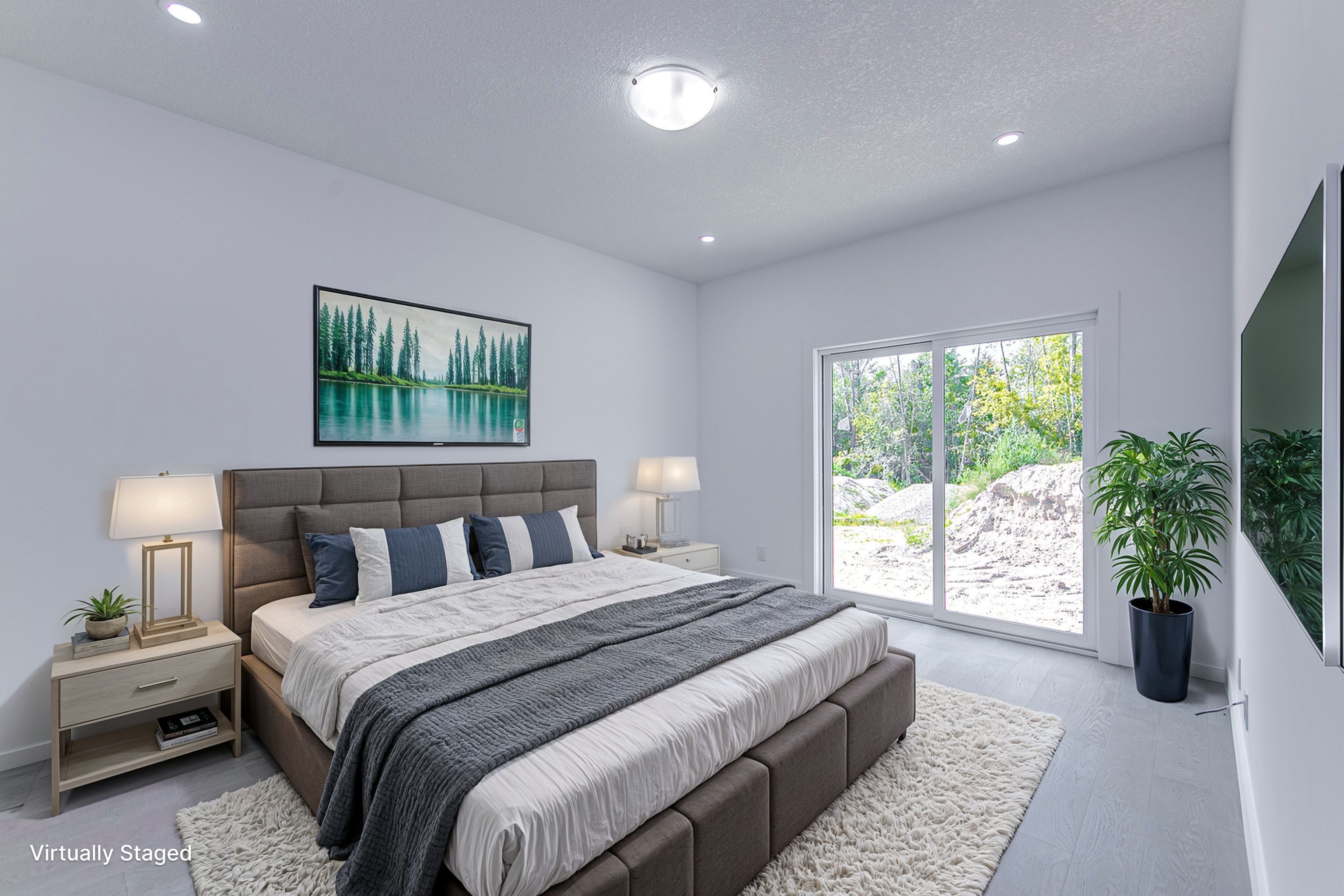 Beautiful *custom raised bungalow* on a treed 60 x 270 ft lot with no neighbours behind, just a short walk to the sandy shores of lake simcoe and an area beach. Located in a sought-after innisfil neighbourhood close to friday harbour and only minutes to shopping, restaurants, and amenities in barrie. This approx. 2600 sq. Ft. Finished raised bungalow offers a bright open concept great room overlooking the kitchen, creating an ideal flow for everyday living and entertaining. The custom kitchen features quartz countertops, a large island, and a walk-in style pantry with a barn door, providing excellent storage and a stylish focal point. White oak engineered hardwood flooring runs throughout both the main and lower levels, adding a warm, upscale feel. The home is designed with 2 bedrooms on the main level and 2 additional bedrooms on the lower level, along with 3 bathrooms to comfortably accommodate family and guests. A large family room in the basement is anchored by a cozy gas fireplace, making it a perfect space for movie nights or relaxation. The finished custom laundry room with quartz counter offers a practical and attractive work area for household tasks. A large covered deck measuring 16 x 10' off the primary bedroom extends the living space outdoors and overlooks the private, treed backyard, making it an inviting spot for morning coffee or relaxing in the evening. The deep 60 x 270 ft lot with no rear neighbours provides excellent privacy and room to garden, play, or create a future outdoor living area. Some photos are virtually staged. Flexible closing is available. Efficient icf foundation.