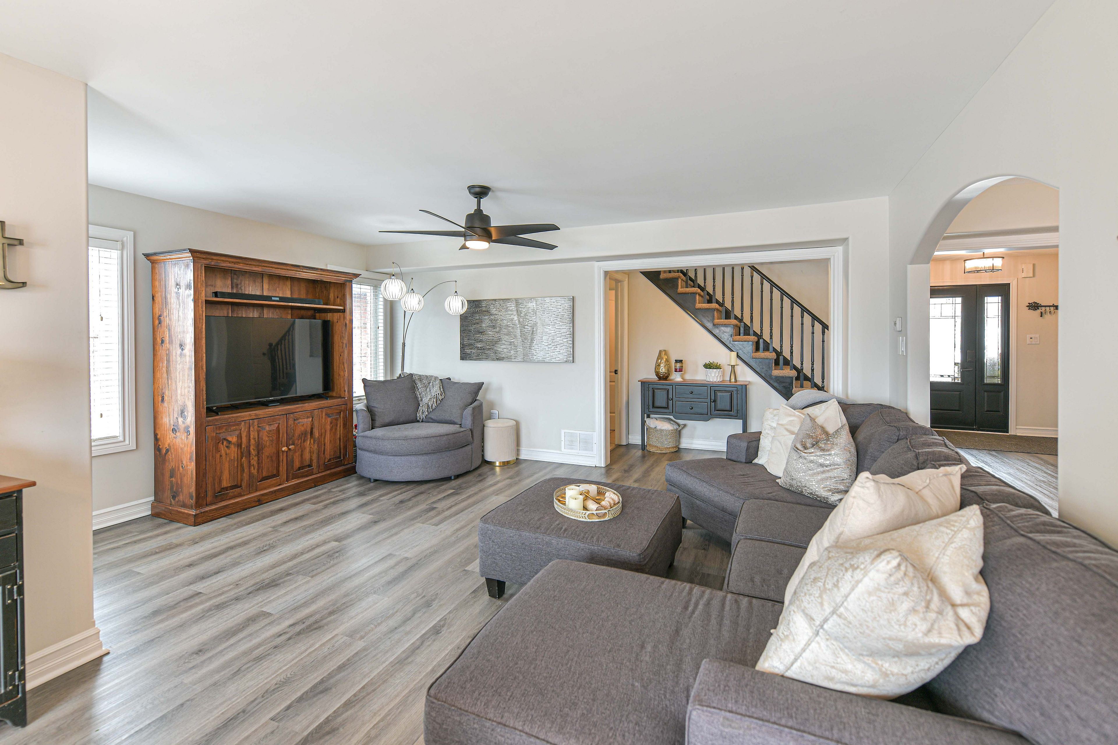 • Bright open-concept main floor with large windows for natural light.