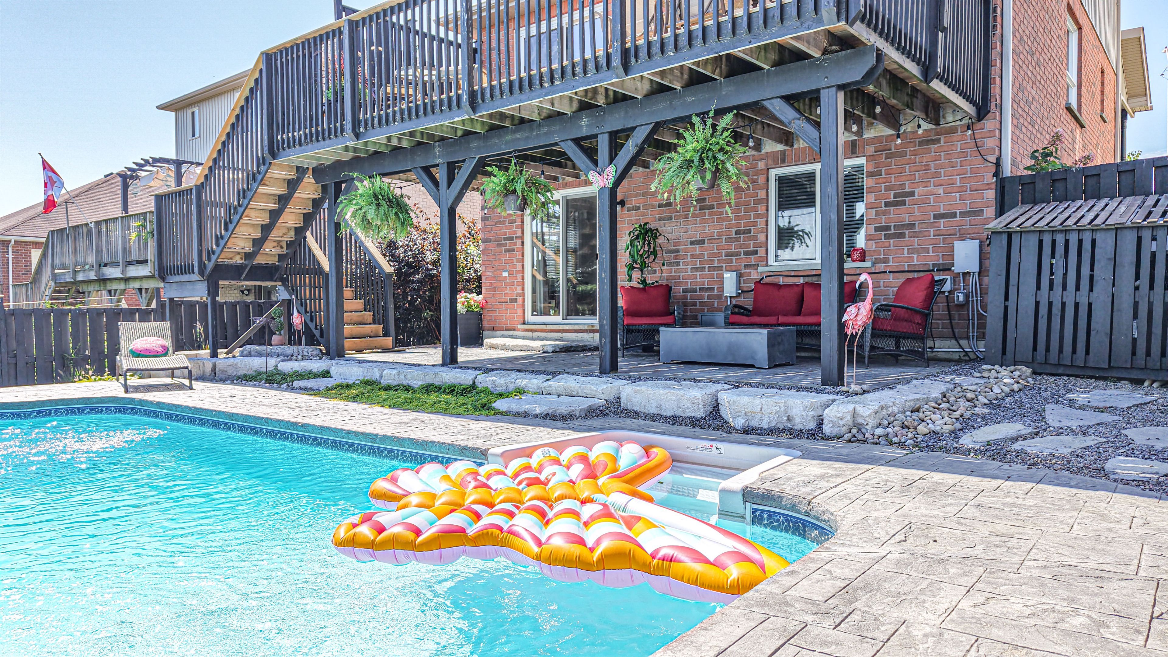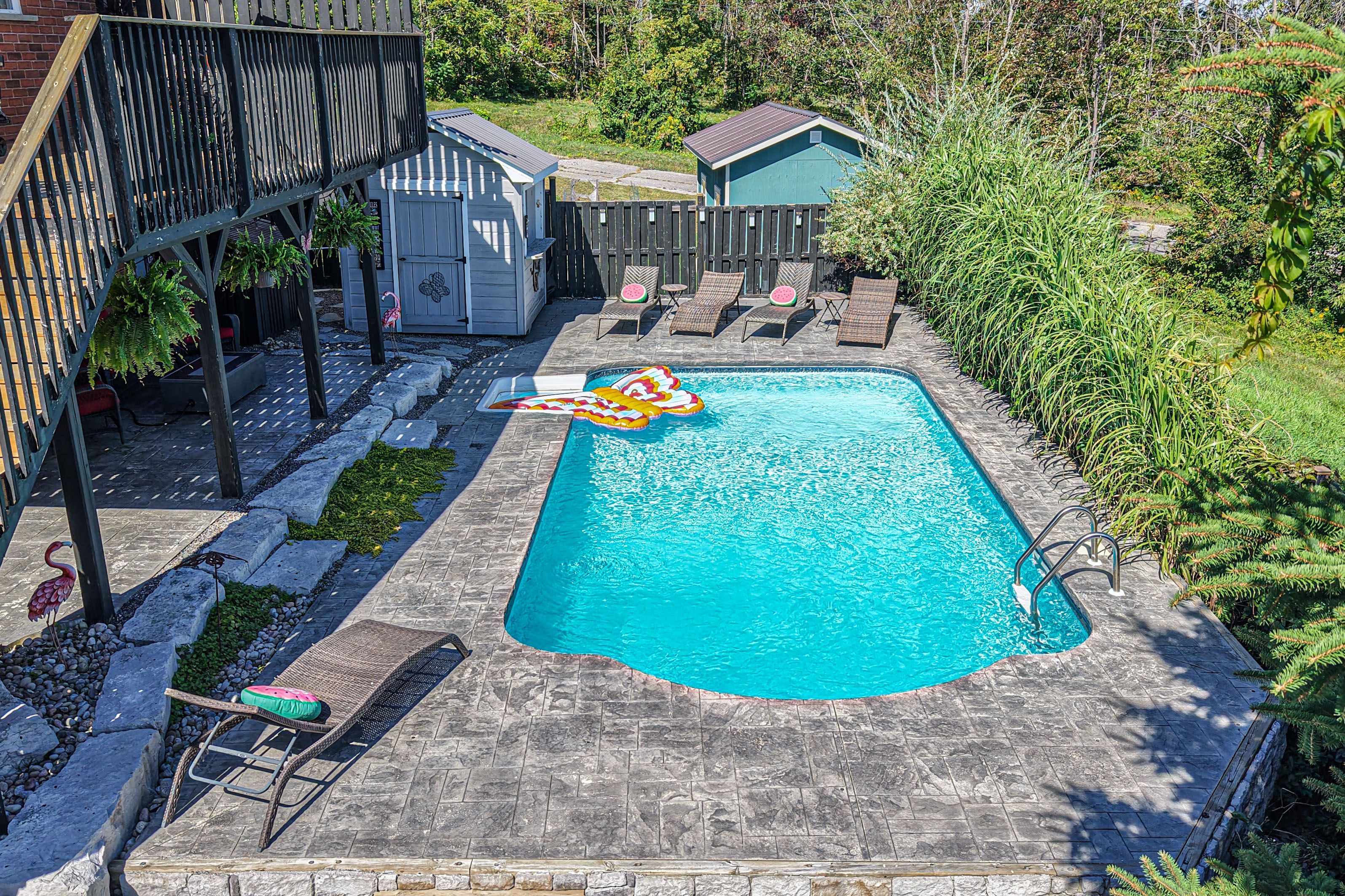 • Private oasis with a heated saltwater pool for summer fun.