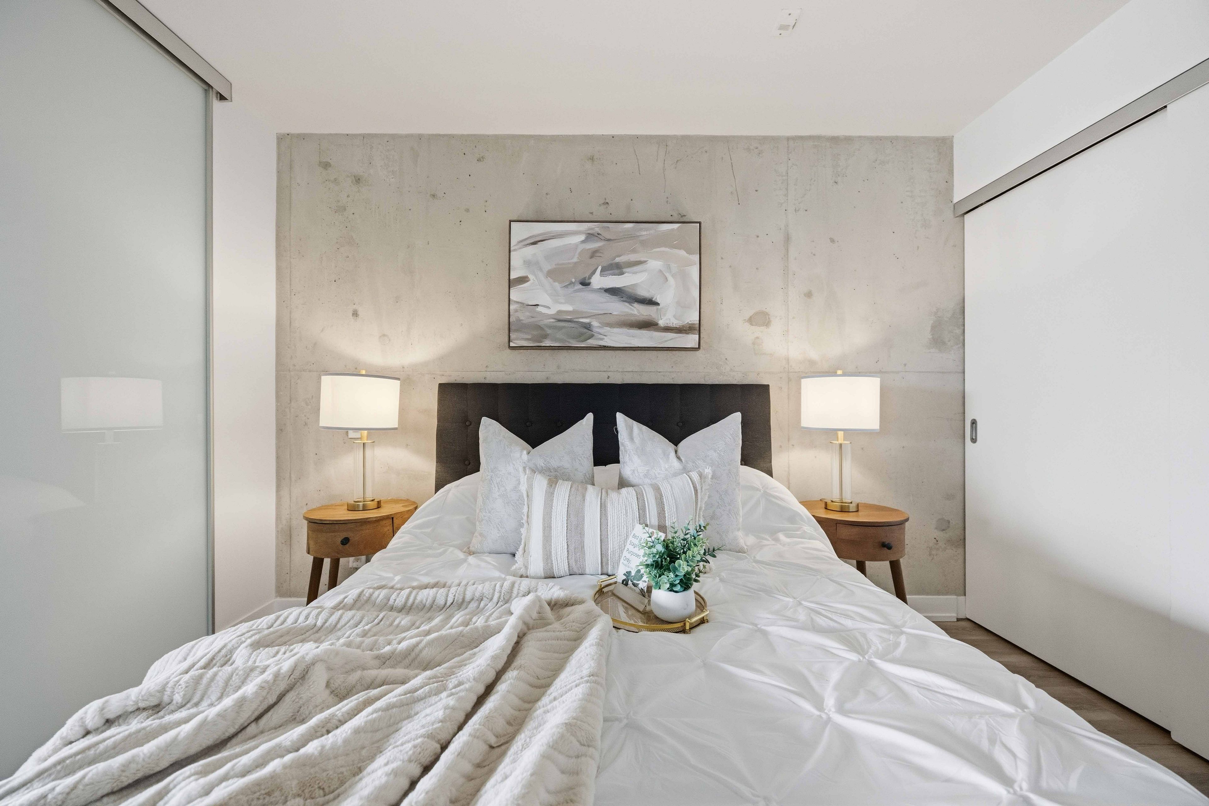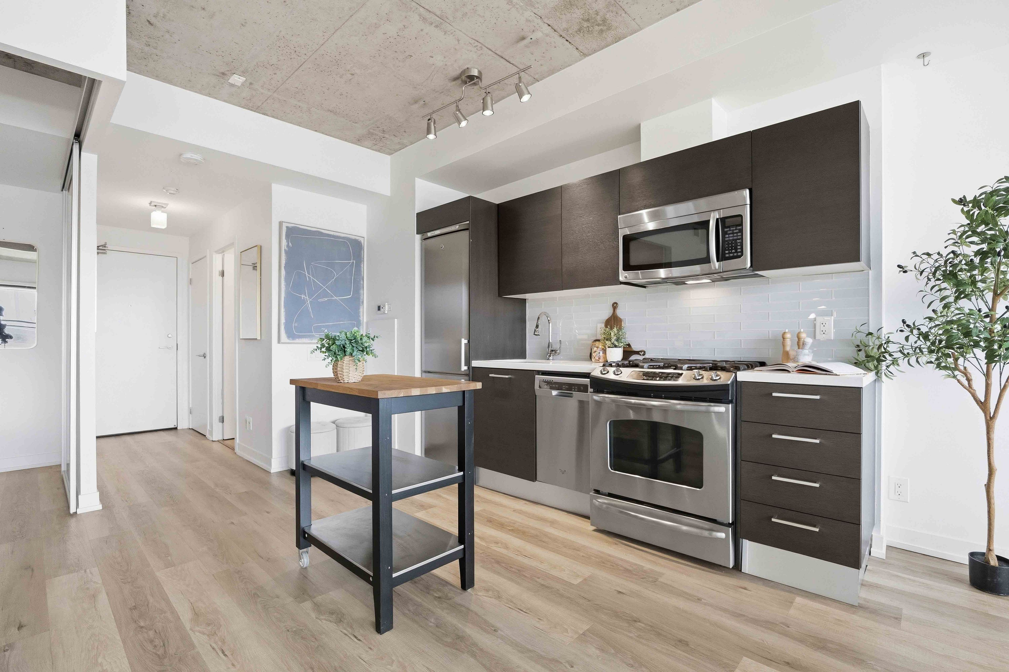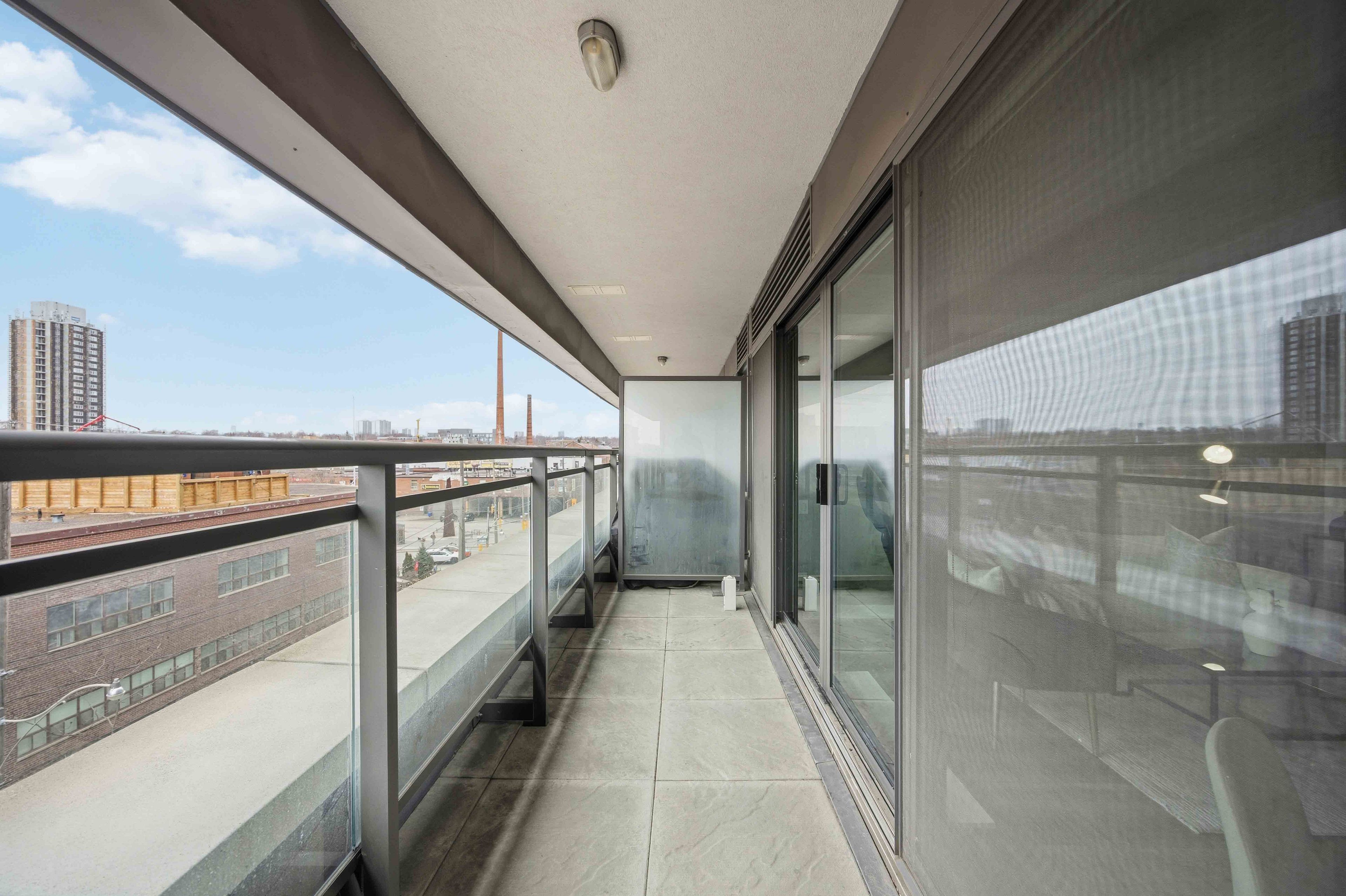 Welcome to a rare opportunity to own a 1 bed, 1 bath loft with parking at the iconic work lofts, built in 2012 by renowned developer lamb development. Live amongst canada's film industry in the heart of leslieville, one of toronto's most sought-after neighbourhoods. This loft delivers authentic urban character with modern comfort. Step inside and experience the airy, open-concept design featuring new flooring throughout and the industrial-chic aesthetic loft lovers crave. The bedroom easily accommodates a queen-size bed, offering both style and functionality. The modern kitchen is equipped with scavelini cabinets, white stone countertops, stainless steel appliances and seamlessly flows into the living and dining area, perfect for entertaining or relaxing at home. Step out onto your private balcony and take in the expressive cn tower views, complete with a gas bbq included & ideal for summer evenings in the city. Residents enjoy boutique-style amenities including security system, meeting room, party room, outdoor patio, rooftop deck, bike storage, and visitor parking. Just steps from leslieville's best cafes, parks, restaurants including the real jerk, gerrard square, and ttc (future ontario line), this loft offers the perfect blend of lifestyle and location.
