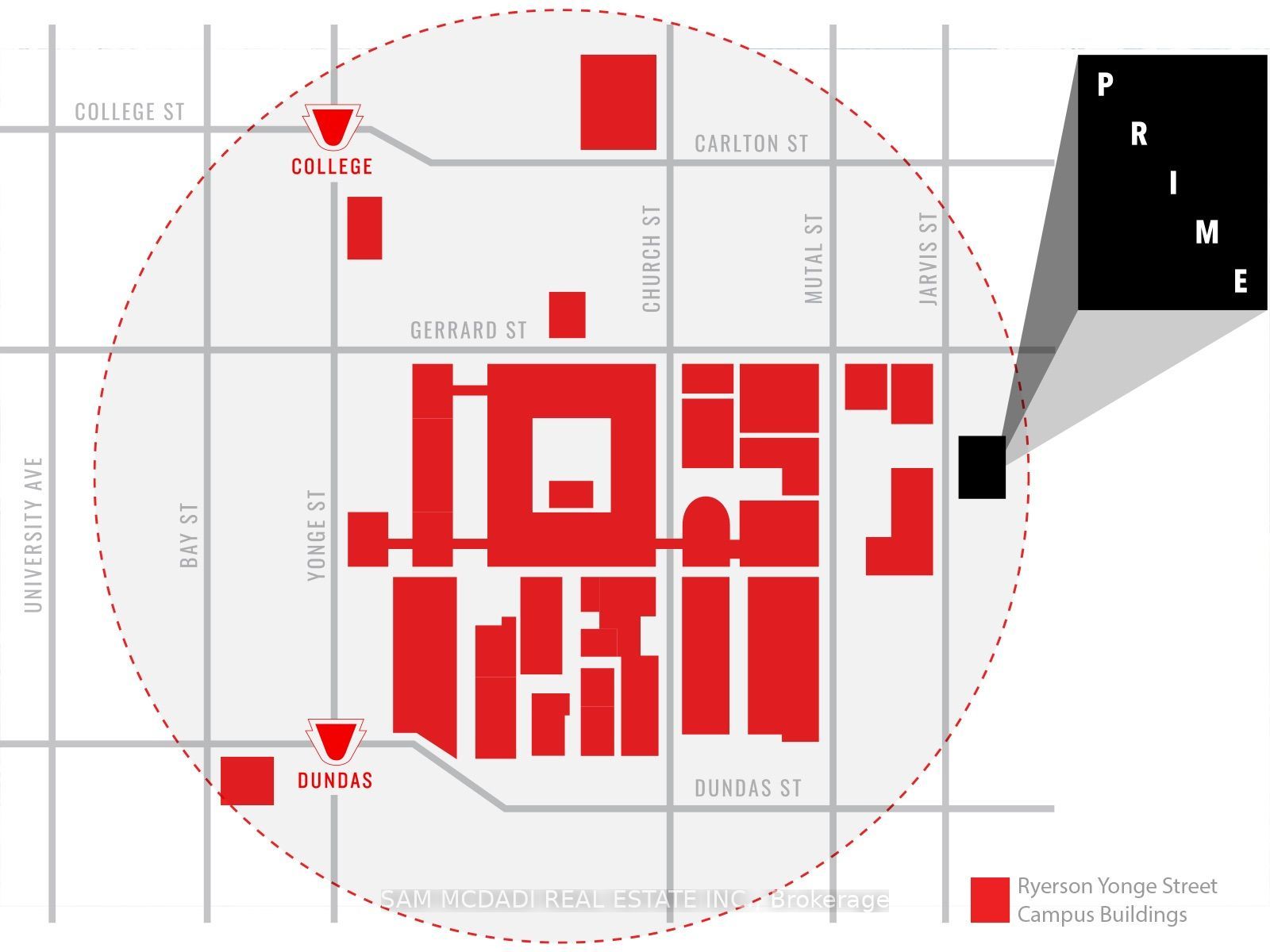 *parking space included*. Welcome to prime condos, where luxury living meets unmatched convenience in downtown toronto. Step into the opulent versace-inspired lobby, a stunning first impression of elegance & sophistication. This beautiful 2 bdrm, 2 bath suite features floor to ceiling windows that flood the space with natural light, plus fantastic views. The primary bdrm offers a 4 pc ensuite, while the modern kitchen is equipped with essential appliances for everyday ease. And the bonus, a dedicated ev parking space, a rare downtown convenience that adds real value. Enjoy incredible amenities including a 6,500 sq ft fitness club, indoor & outdoor yoga areas, co-working space, rooftop bbq area, sun lounge, 24 hr concierge & more. Steps to toronto metropolitan university, an easy walk to cf toronto eaton centre & close to college & dundas subway stations, plus restaurants, shopping, hospitals & transit, truly close to everything you need.