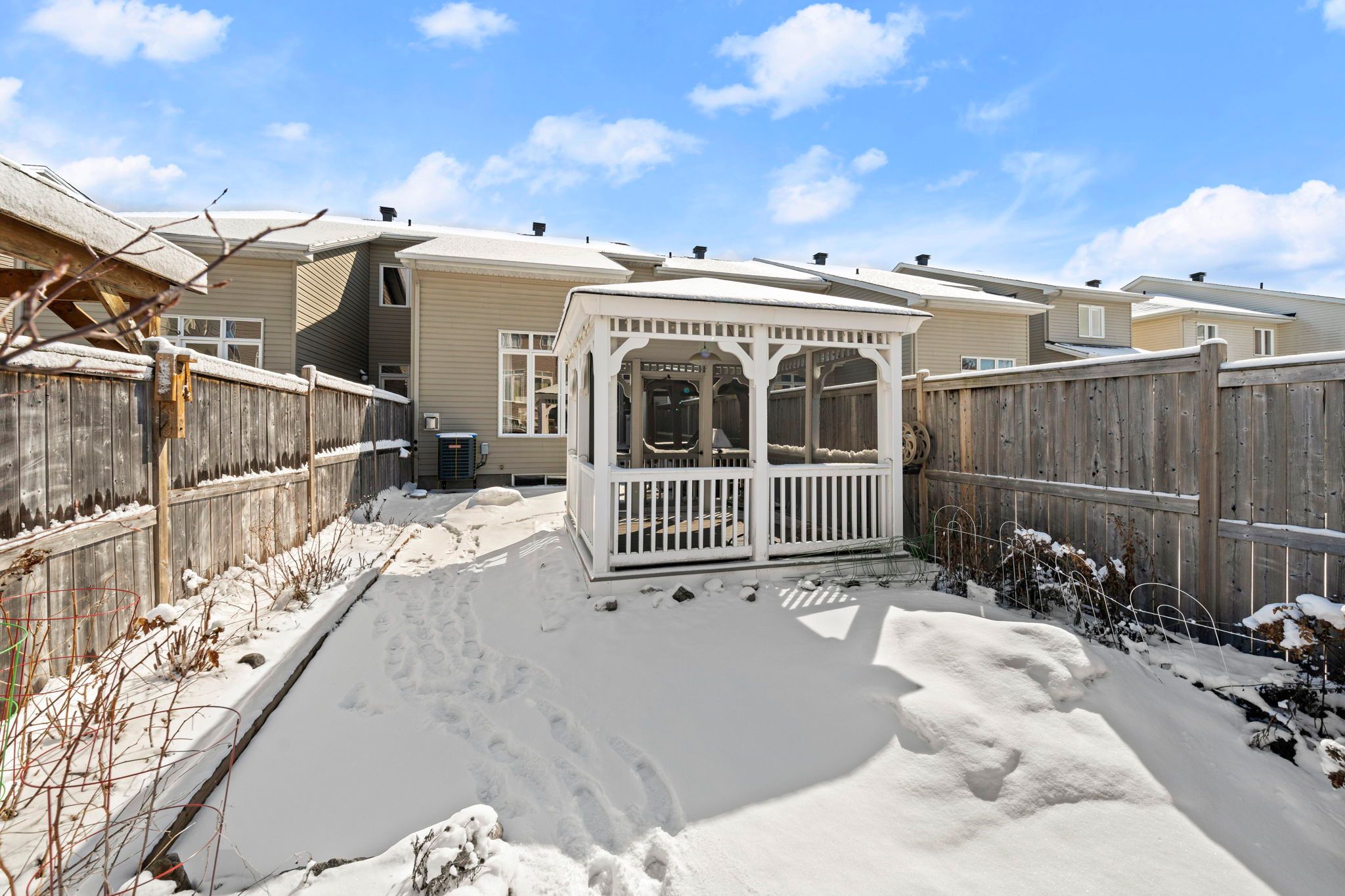 • Private backyard with a patio, gazebo, and covered BBQ area.