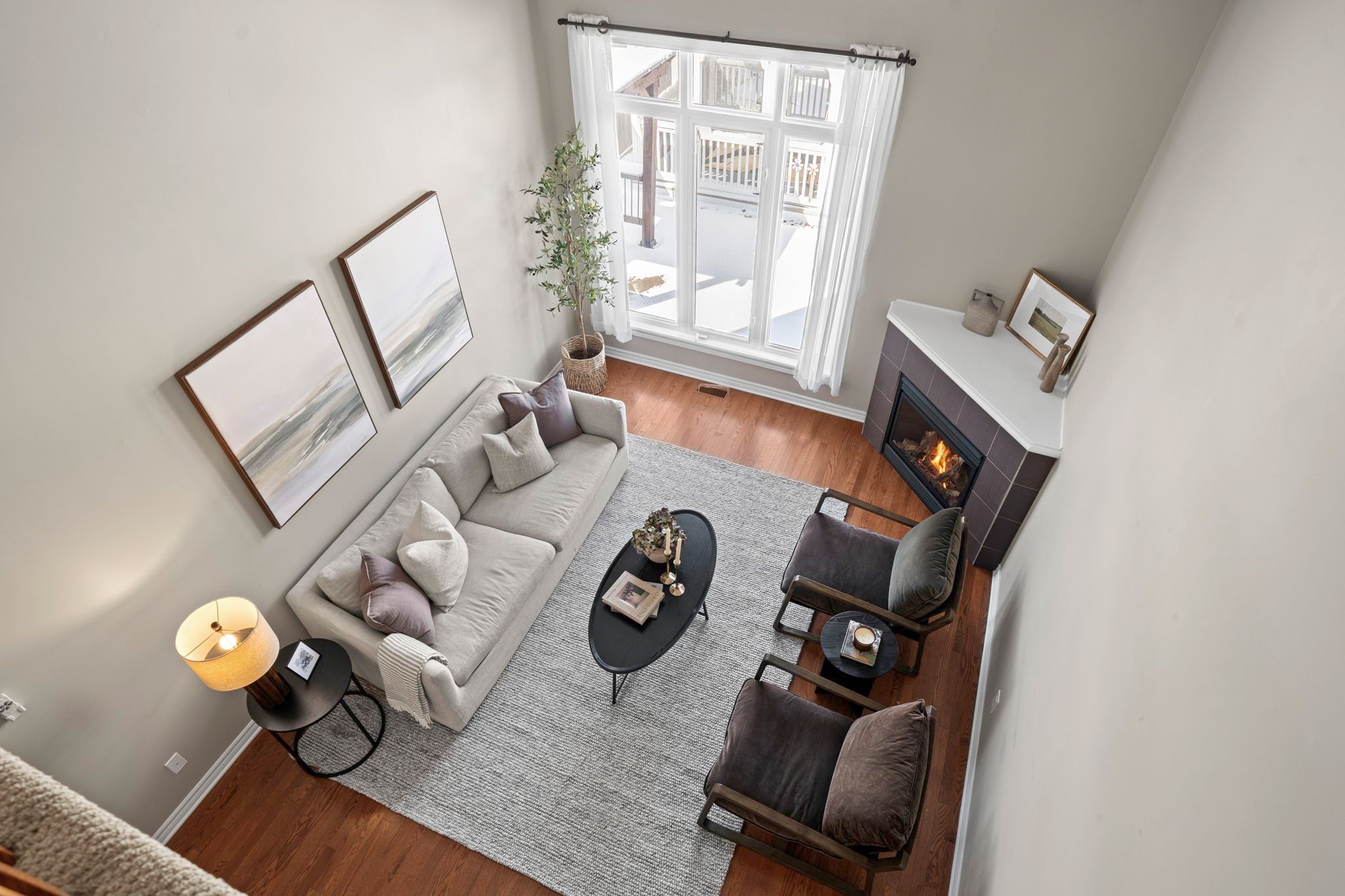 • 16-foot vaulted ceiling in living room creates an open and bright atmosphere.