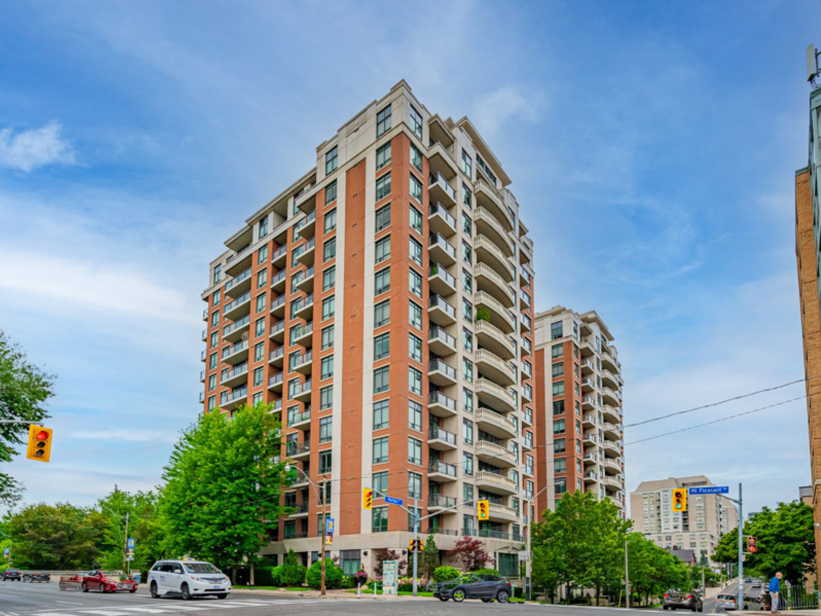 Welcome to midtown's highly regarded "the domain" by monarch group. This bright and spacious 800+ sq. Ft. Corner suite is filled with natural light from expansive windows throughout. It features a large kitchen with granite countertops, a breakfast bar,and ample storage. The functional layout includes two queen-sized bedrooms on opposite sides, offering both comfort and privacy, along with two full bathrooms, ensuite laundry, and a generous balcony. 1 underground parking space and 1 locker. Recently renovated state-of-the art amenities include a full gym, indoor pool, fully stocked party/media room, 2 guest suites, landscaped gardens, and more. This exceptionally well-managed building boasts many long-term residents, a dedicated on-site property manager, and a courteous 24-hour concierge. Direct access to the community's beloved gem: the beltline trail, which is perfect for runners, cyclists, and dog lovers. Enjoy being just steps to great shops, endless restaurant options, and beautiful parks. Convenient ttc access at your door, and davisville station is moments away for an easy downtown commute.**additional information: please note this is a strictly enforced no-smoking building. Pet policy: up to 2 pets per unit (1 dog maximum, under 30 lbs) and no visiting pets are permitted.