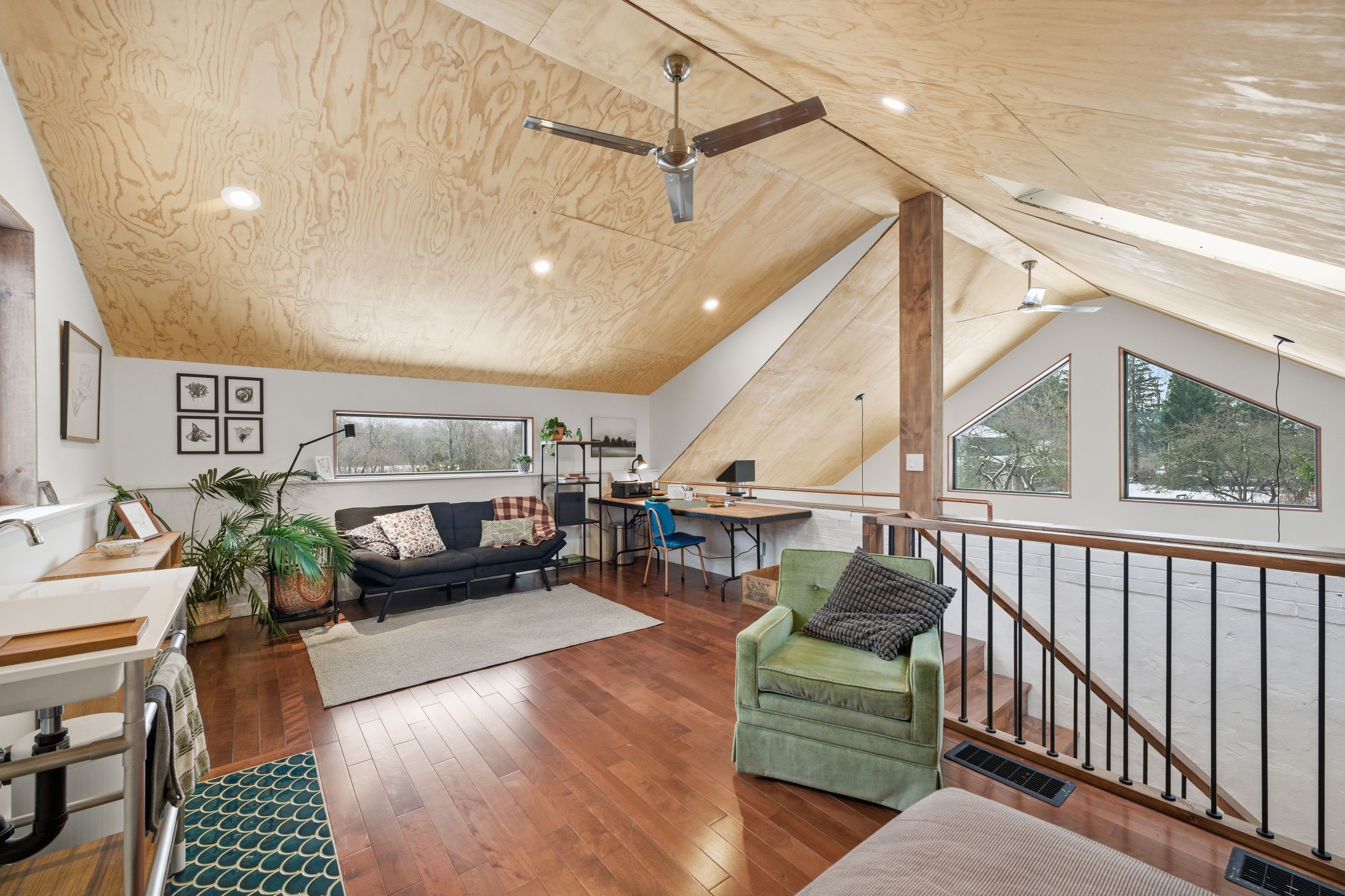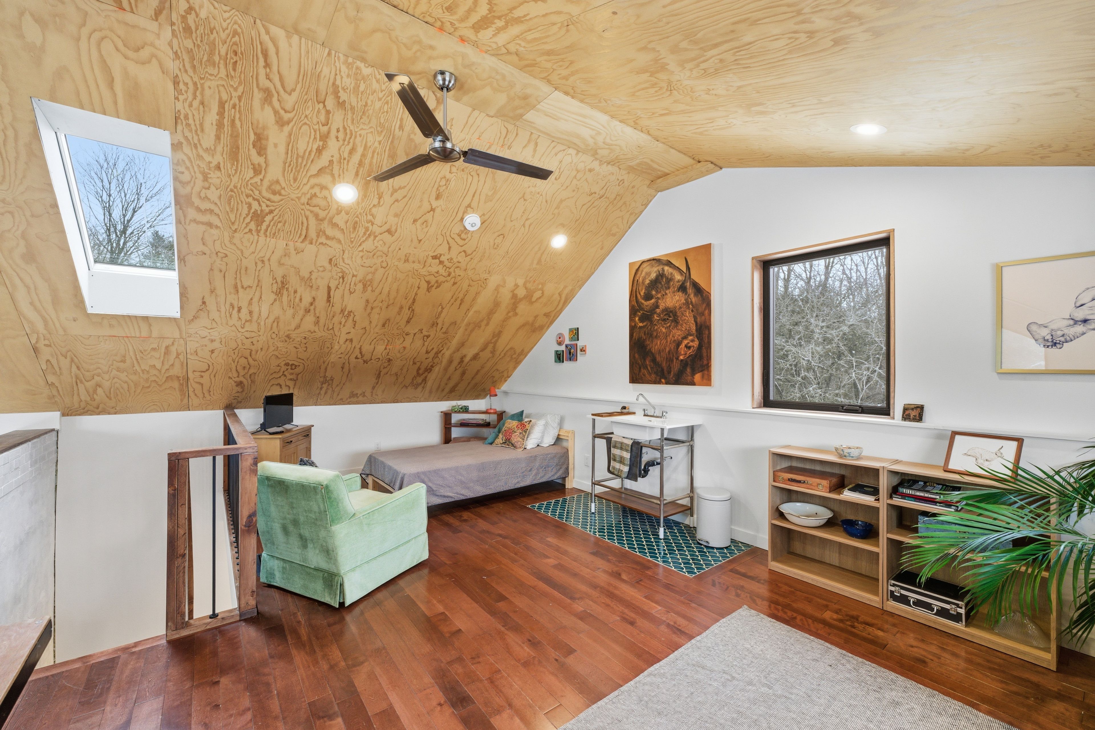 • Loft area offers extra bedroom and versatile art studio space.