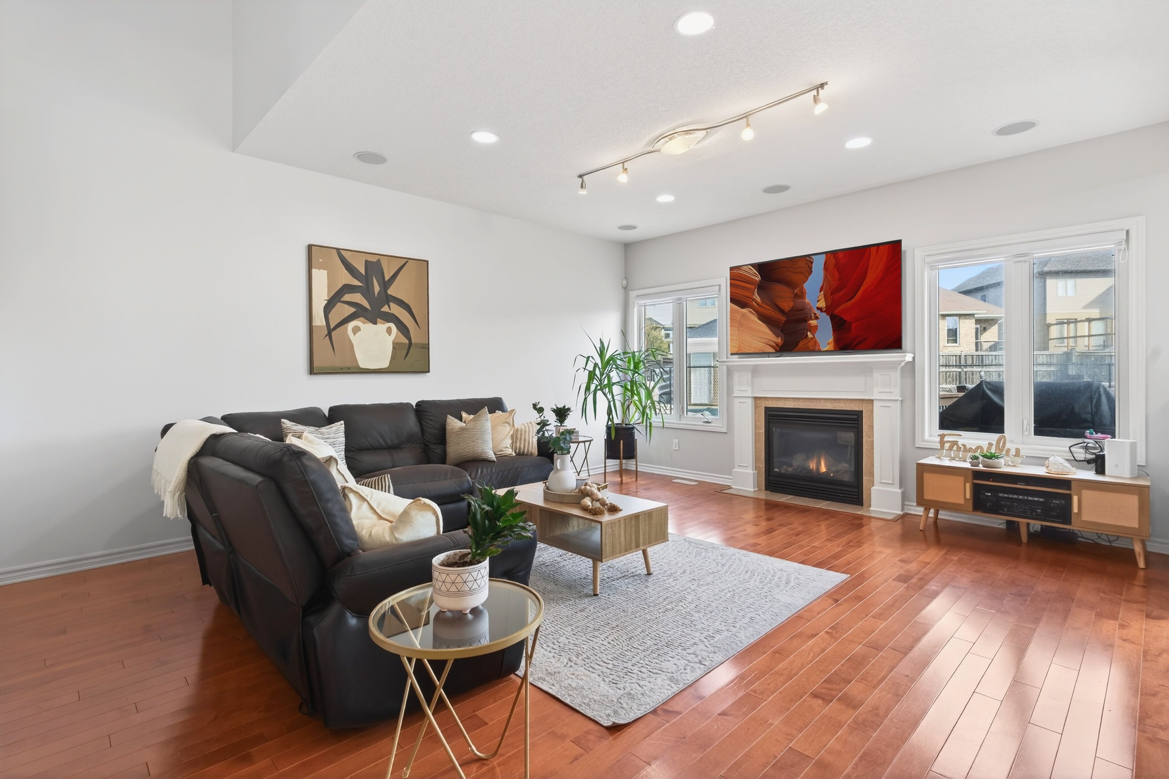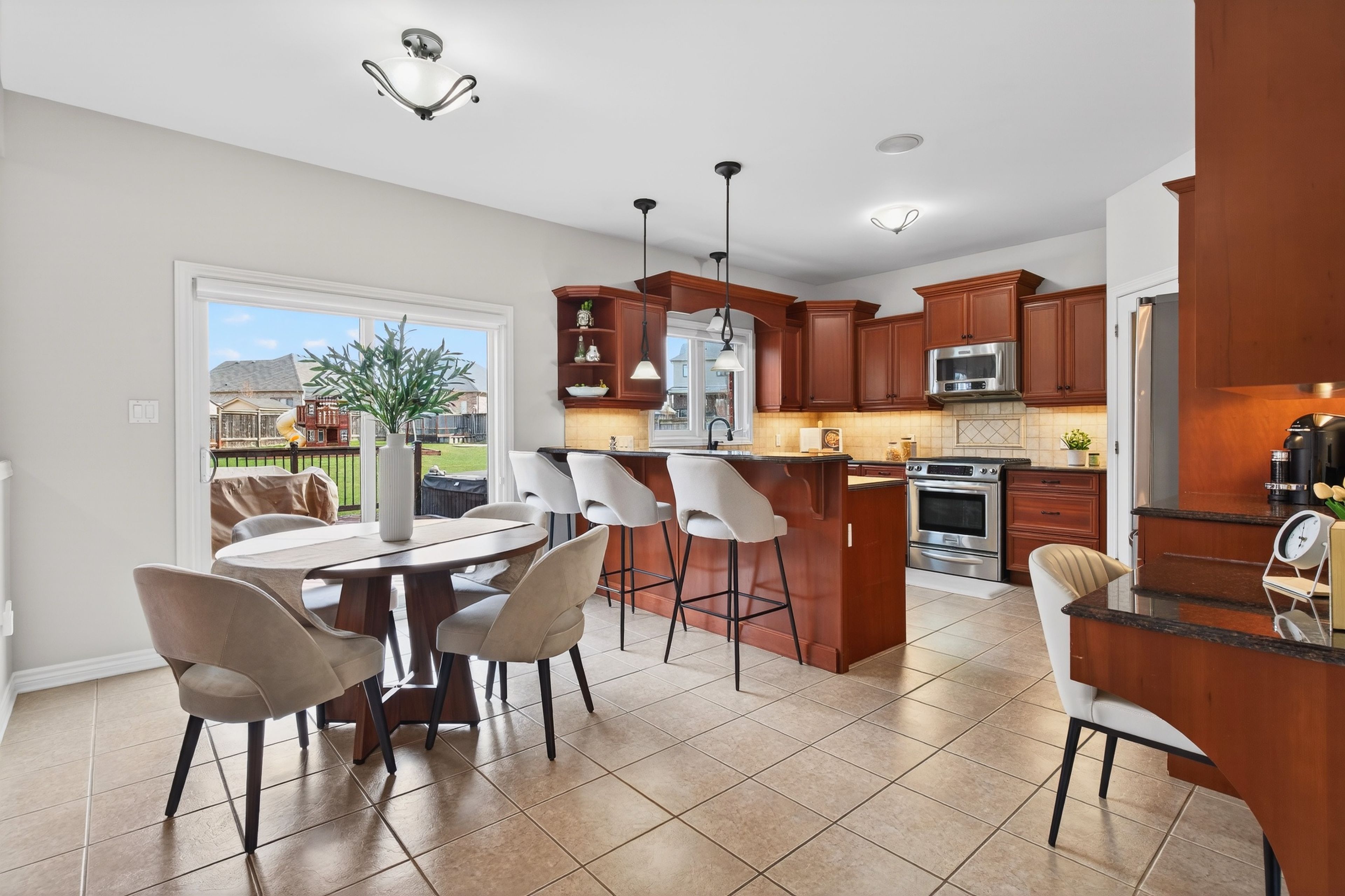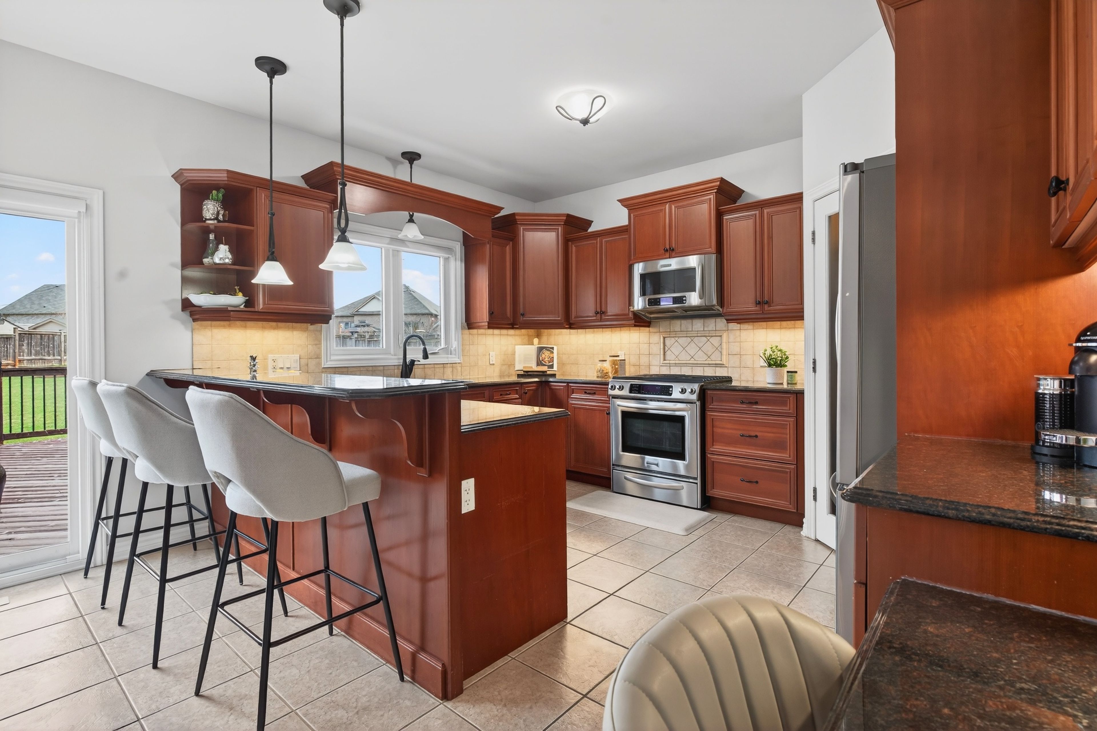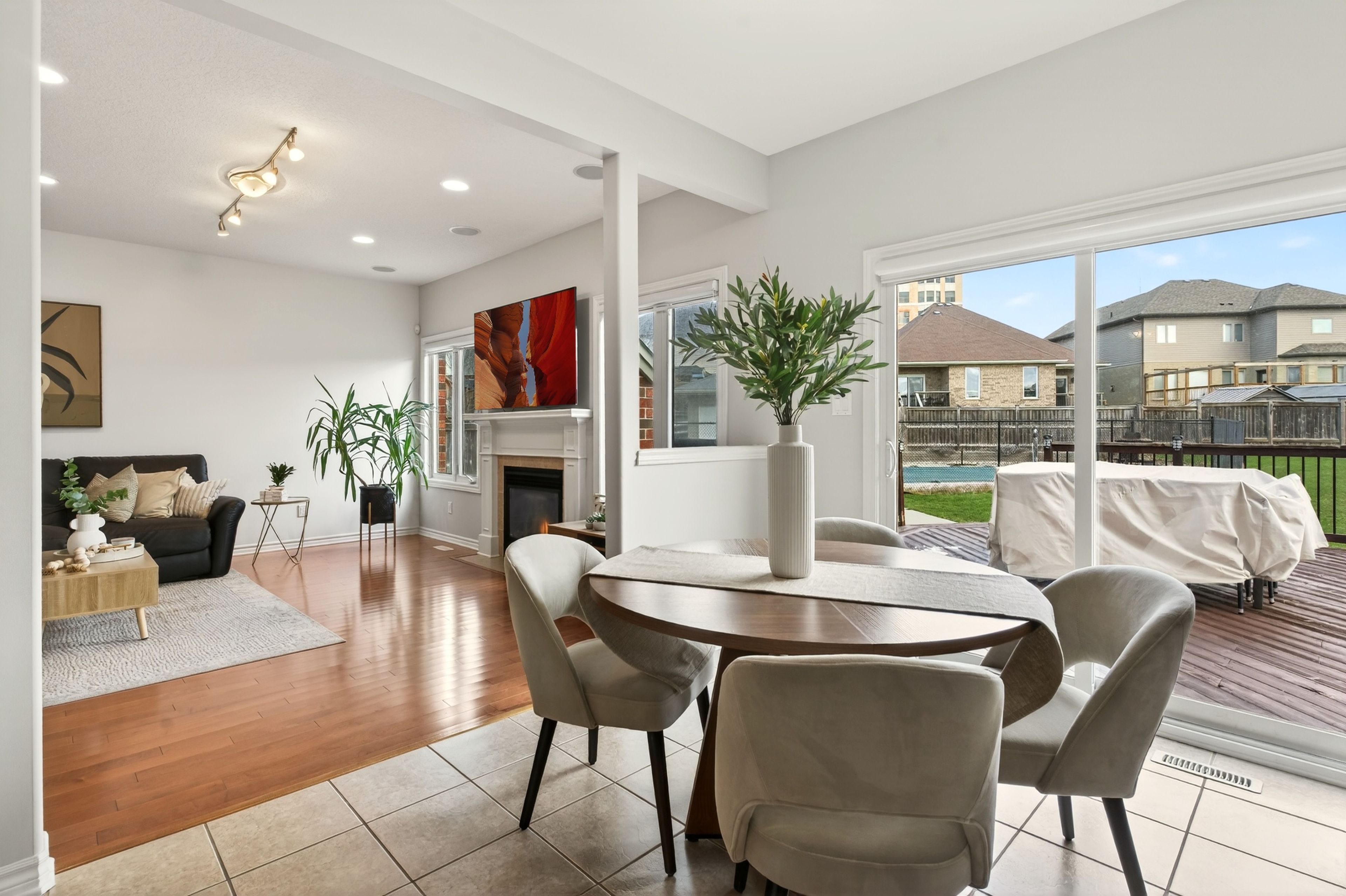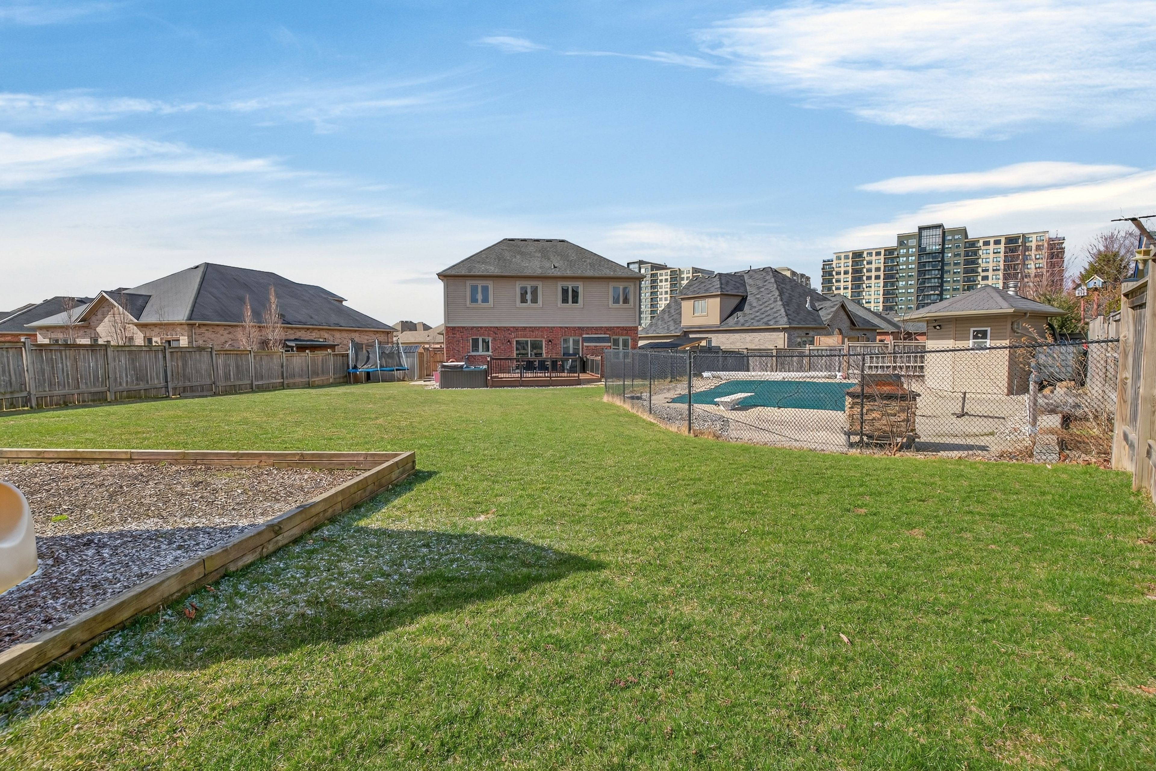 Beautifully maintained and thoughtfully upgraded, this home offers the space, flow, and functionality that make everyday living feel effortless. The open-concept main floor with 9 foot ceilings connects the kitchen, complete with ample storage, a practical pantry, and convenient central vacuum kickplate to the living area, enhanced by built-in ceiling speakers that add to the home's modern comfort and entertainment appeal. When the occasion calls for something more refined, a formal dining room is ready to host. Generously sized bedrooms provide comfort across the board, while the primary suite delivers a true retreat with a spacious walk-in closet and an ensuite featuring both a deep jacuzzi tub and glass shower with constant set temperature and massaging jets. Natural light fills the home, adding to its warm, inviting feel. The fully finished lower level expands your options with a large recreation space, wet bar, and an additional room ideal for a home office or guest bedroom. Outdoors, the fully fenced yard offers exceptional space to unwind, entertain, or simply spread out. Enjoy the deck for al fresco dining, a saltwater pool with remote-controlled heater, and a hot tub designed for year-round enjoyment. A 9-station sprinkler system keeps the grounds looking their best, while a generac generator provides added peace of mind. Set on a quiet street just minutes from schools, amenities, and highway access, this is a home where comfort, convenience, and pride of ownership come together seamlessly.