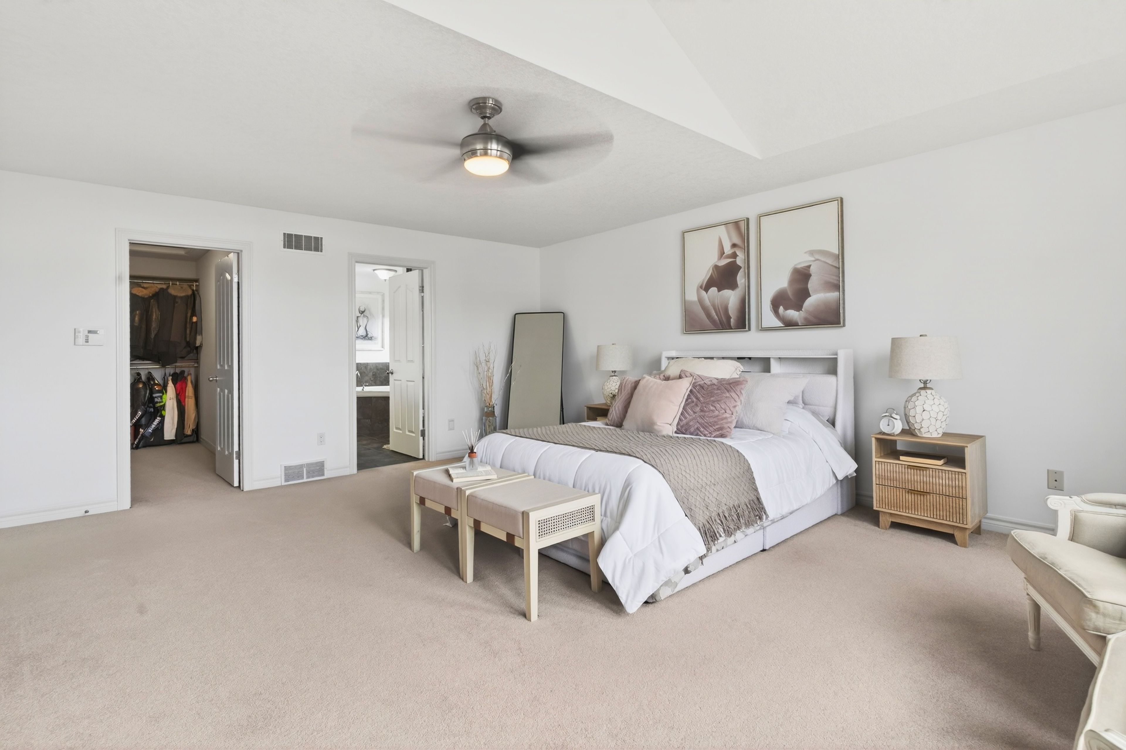 • Spacious primary suite with walk-in closet and luxurious ensuite bathroom.
