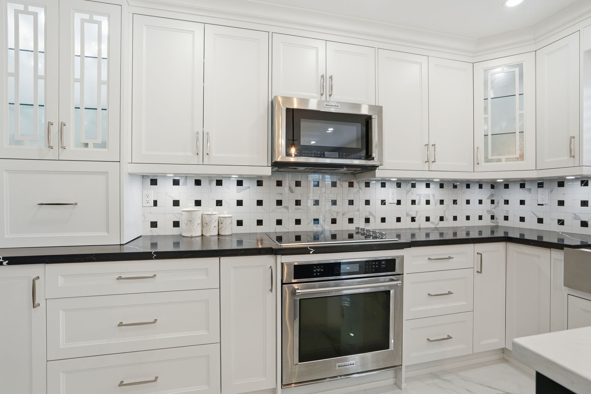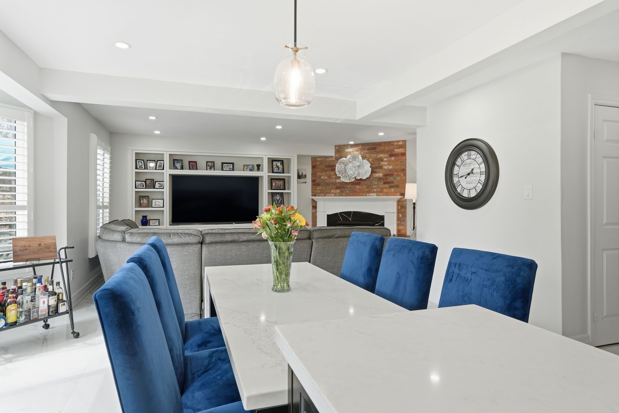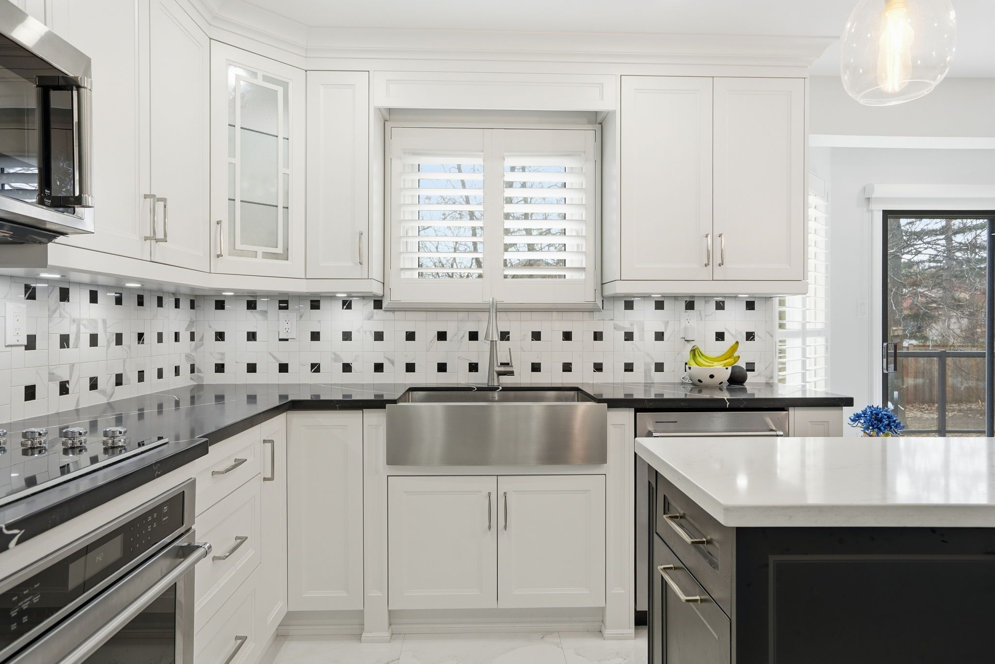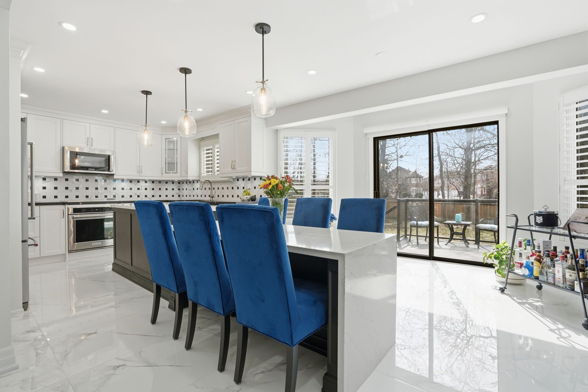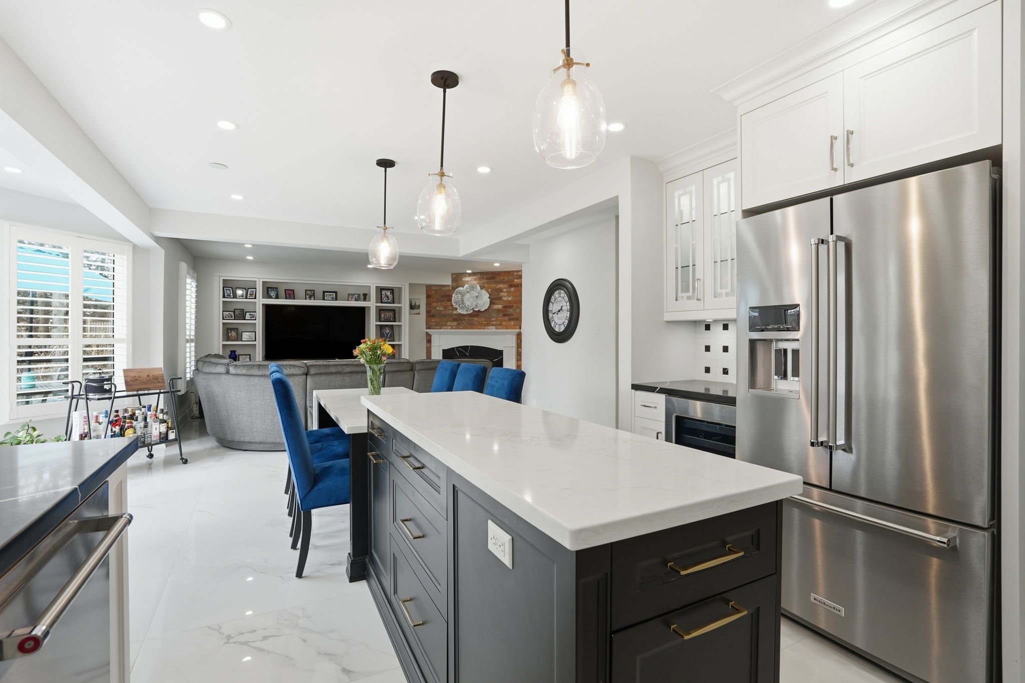 • Spacious kitchen with custom cabinetry and large island for gatherings.