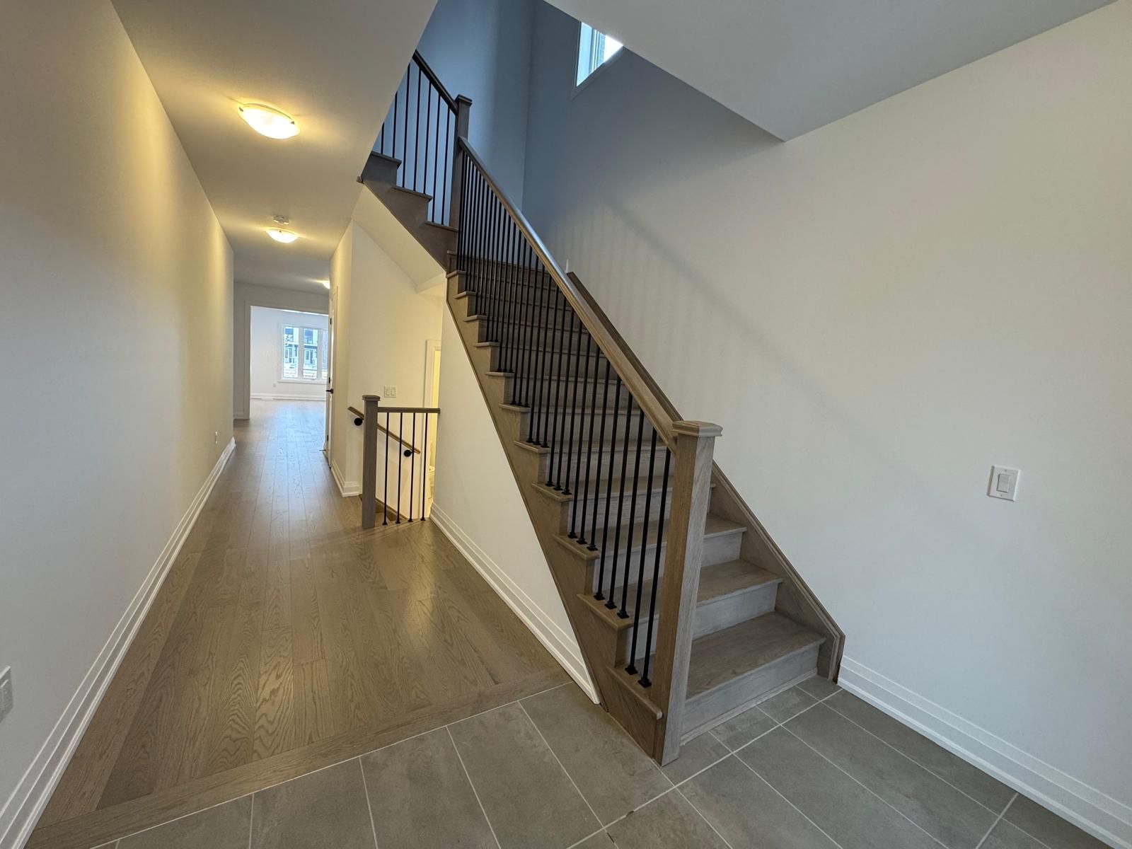 Come see this brand new 4 bedroom, 4 washroom home in oakville - never before lived in! The home has an open concept layout with natural light and 2 windows in the living room. The main floor has a 9 ft ceiling and gas fireplace. There are ceramic floor tiles in the foyer, kitchen, breakfast room, and all bathrooms. There is hardwood flooring in the ground floor hall, living/dining, family/ great room. The kitchen has stone counter tops and a breakfast counter. The primary bedroom has walk-in wardrobes and an ensuite bathroom with double vanity and standing shower. The other bedroom also has ensuite bathroom with free standing tub. The laundry room is conveniently located on the second floor. There is a spacious unfinished basement - an exciting opportunity to add value - design your own space. The location is near shopping centres - walmart/superstores. It is close to reputable schools, 407/ 403 highways, parks, and trails.