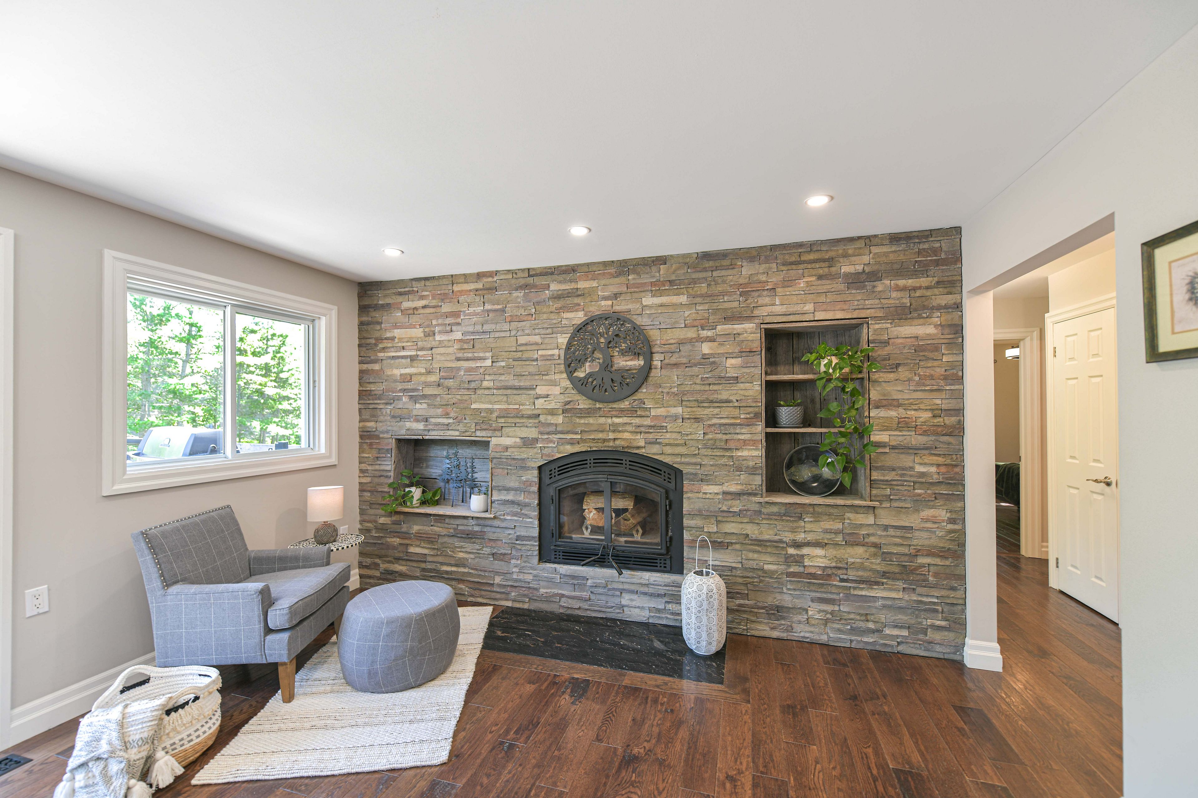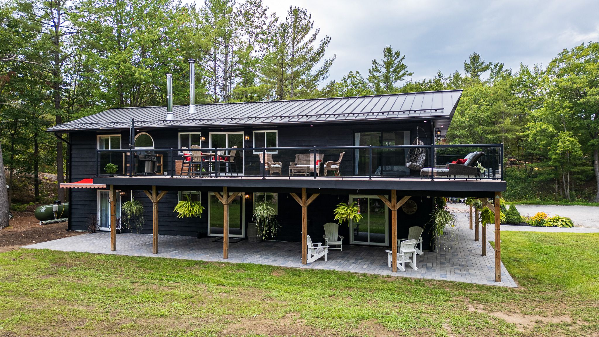 Set along the highly desirable severn (green) river in washago, this exceptional all-season retreat offers a rare blend of natural beauty, privacy, and modern comfort on nearly 10 acres. Surrounded by striking granite outcroppings and mature trees, the property provides direct access to approximately 39 km of boating, kayaking, and paddleboarding-an ideal setting for those who value both recreation and tranquility. Inside, the thoughtfully designed raised bungalow delivers both style and functionality. The upper level features three generous bedrooms, including a stunning primary suite complete with a spa-inspired ensuite and freestanding soaker tub. A second full bathroom serves the additional bedrooms. At the heart of the home, a custom chef's kitchen opens seamlessly into a bright, open-concept living space anchored by a cozy wood-burning fireplace-perfect for entertaining or relaxed evenings at home. The lower level is well-suited for multi-generational living or guest accommodations, offering two additional bedrooms, a full four-piece bathroom, and a custom summer kitchen. A propane fireplace adds warmth and ambiance, while walkouts lead to expansive outdoor living spaces. Step outside and experience approximately 1,800 square feet of patio space, two fire pits, and a charming riverside bunkie complete with a sauna-an ideal place to unwind after a day on the water. A large, heated detached shop with its own propane furnace (installed just four years ago) provides incredible flexibility for storage, hobbies, or a workshop. Additional highlights include a massive deck with glass railings designed to preserve the stunning views, a brand-new standing seam metal roof, updated soffit and fascia, and a 200-amp electrical panel. Whether you're searching for a luxurious cottage, a private family retreat, or a multi-generational home, this one-of-a-kind washago property offers an unmatched lifestyle with endless possibilities.
