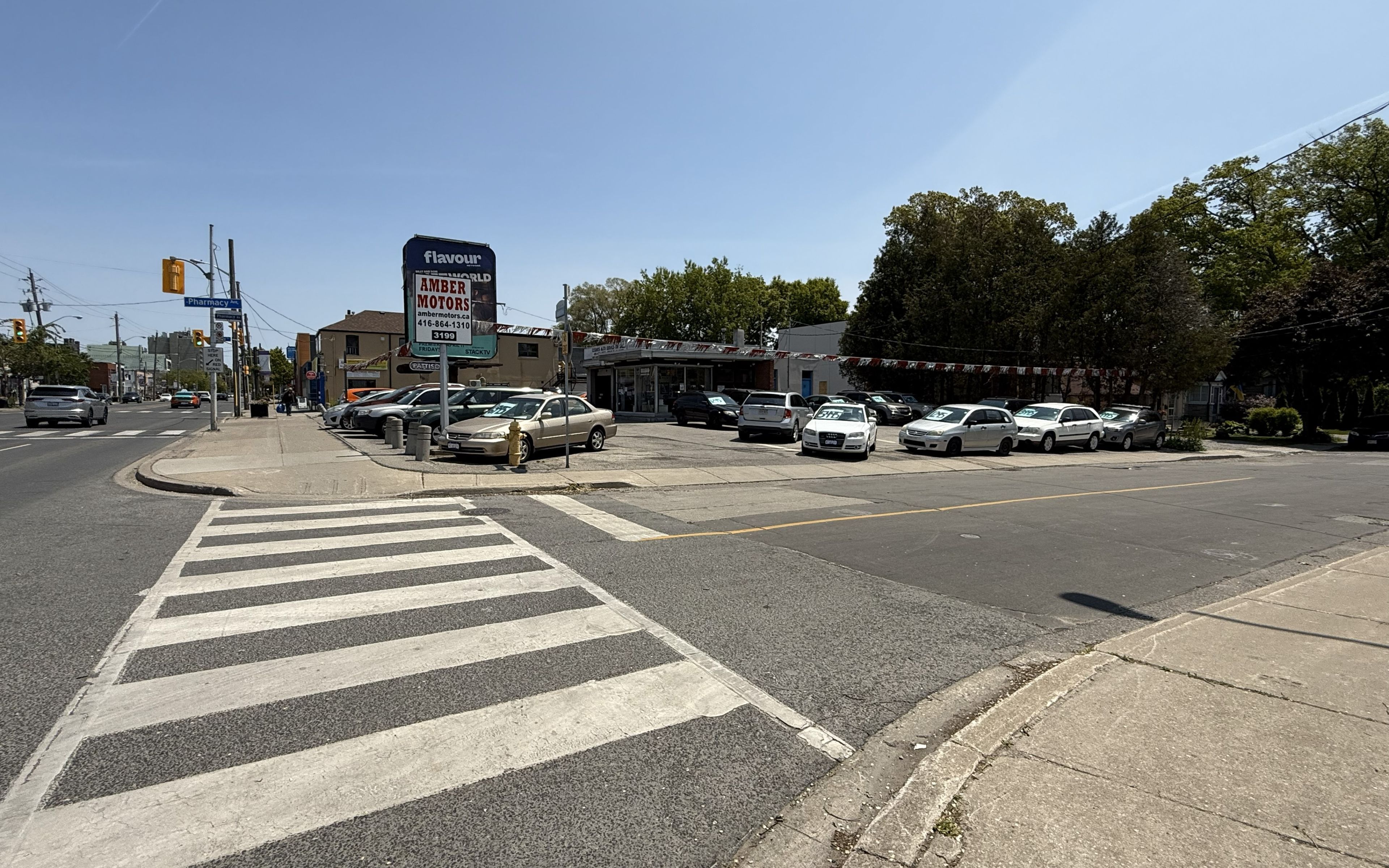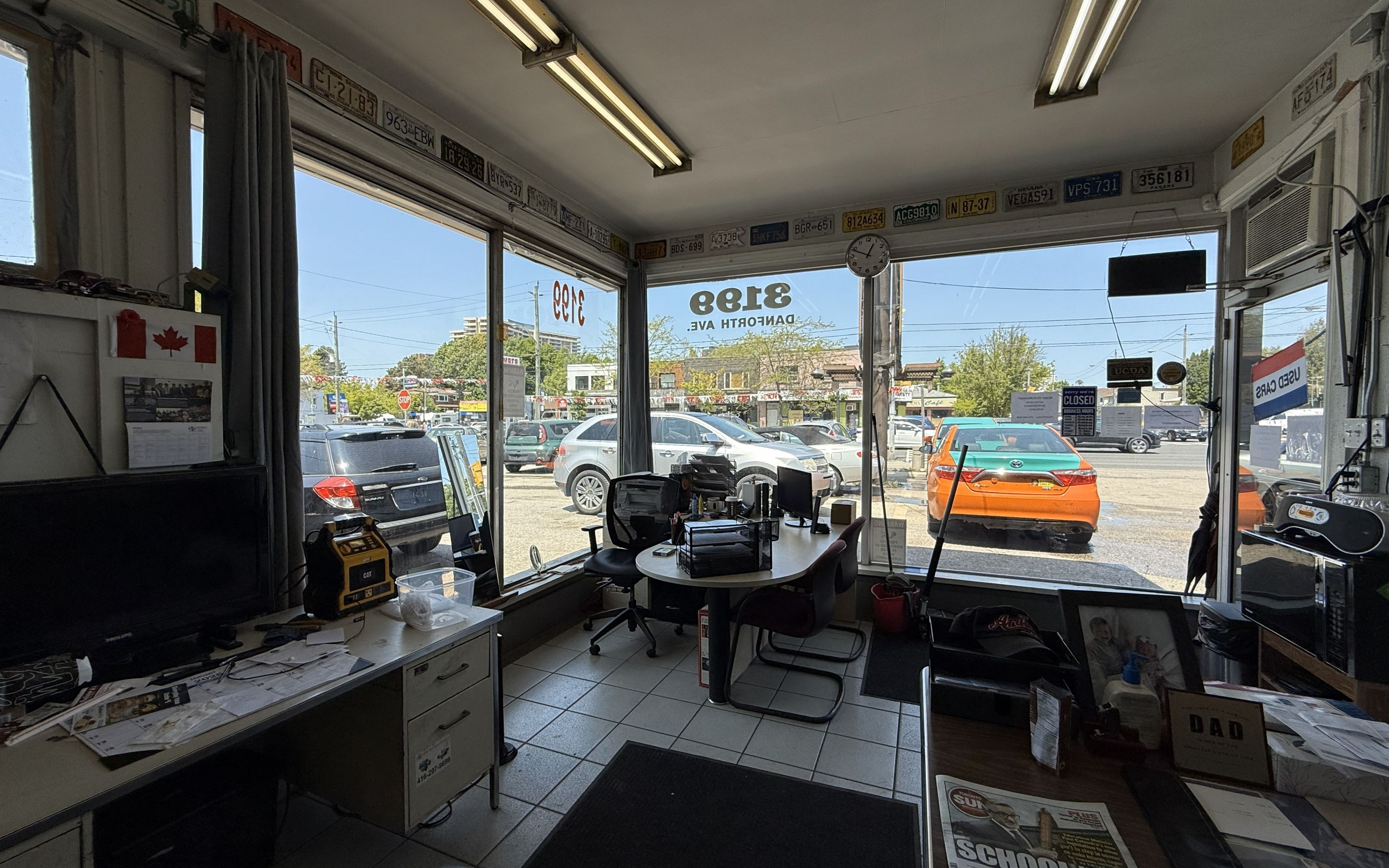 Attention used car dealers - used car lot for lease - spaces for approx. 30 cars + large office + washroom *** great location - excellent exposure - corner lot - on danforth ave *** (2 bay garage & part of property not included) *** (total utilities & total property taxes - shared 50% with existing mechanics garage) *** (2025 property tax $19,161. 47 tenant pays 50%) ***(lease $5,400/mo + (2025) property tax $800/mo + 50% utilities/mo + insurance) + hst