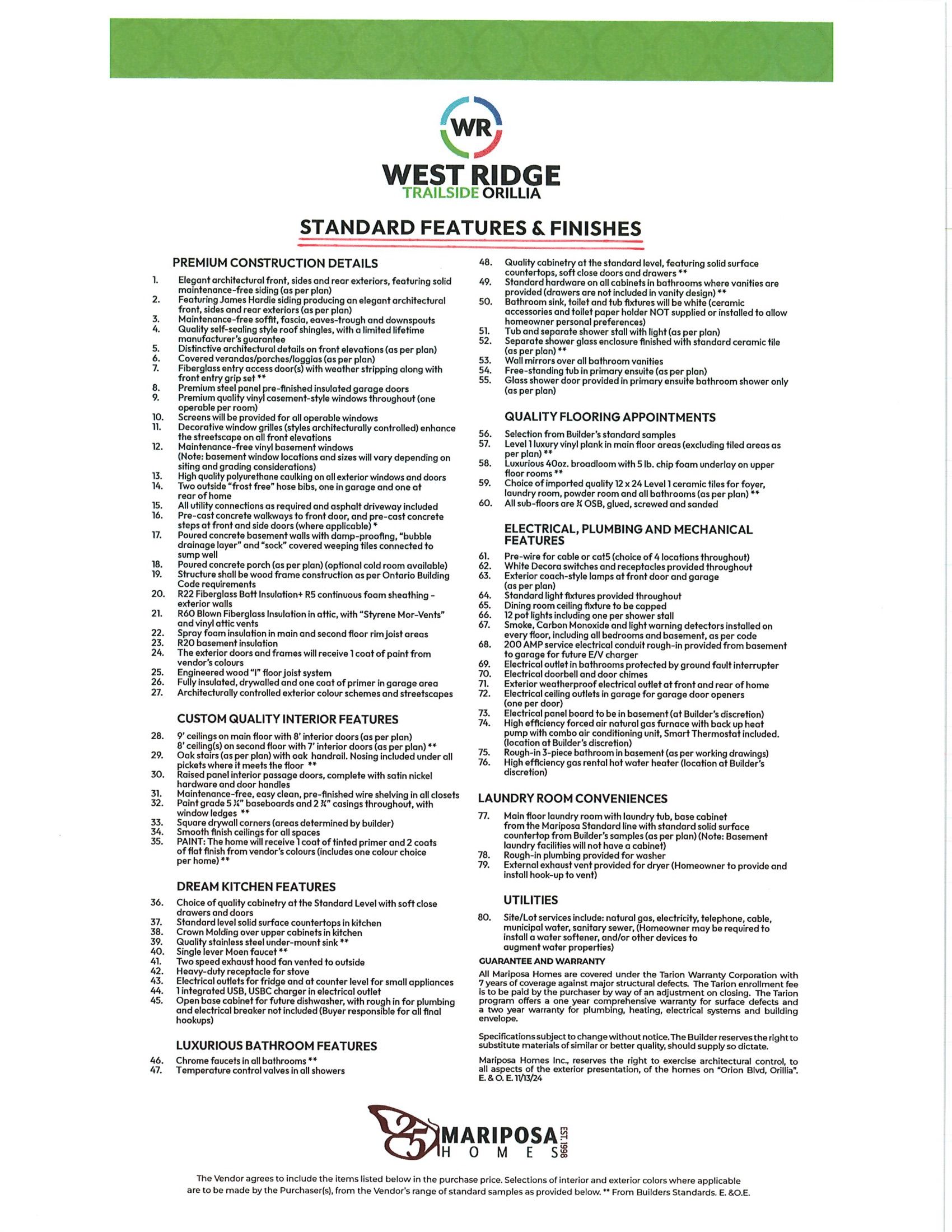 Located in orillia's highly desirable west ridge community, this brand-new home offers an exceptional opportunity to enjoy modern living in a prime location just minutes from a full range of amenities. From the moment you arrive the home's curb appeal stands out. Professionally landscaped grounds are complemented by an in-ground sprinkler system providing convenience for todays busy schedules. The exterior façades stone and hardie board siding set the tone for the high level of finish and attention to detail found inside. The main level features a well-planned layout ideal for both daily living and entertaining. At the heart of the home the kitchen showcases ample cabinetry, quartz countertop and backsplash, and a 9' island perfect for gatherings. High end wide plank engineered hardwood floors seamlessly connect the dining and living area overlooking the 320 square foot covered deck in the backyard. Upstairs, the home offers four spacious bedrooms providing flexibility for families, guests, or home office needs. The primary bedroom serves as a private retreat complete with a beautifully finished ensuite that reflects the home's elevated standard of design. The additional bedrooms are generously sized and share a stylish full bathroom, completing the home's 2. 5-bathroom layout. Complete with tarion warranty, this forever home is best appreciated in person. Schedule your private showing and experience everything this exceptional home has to offer.