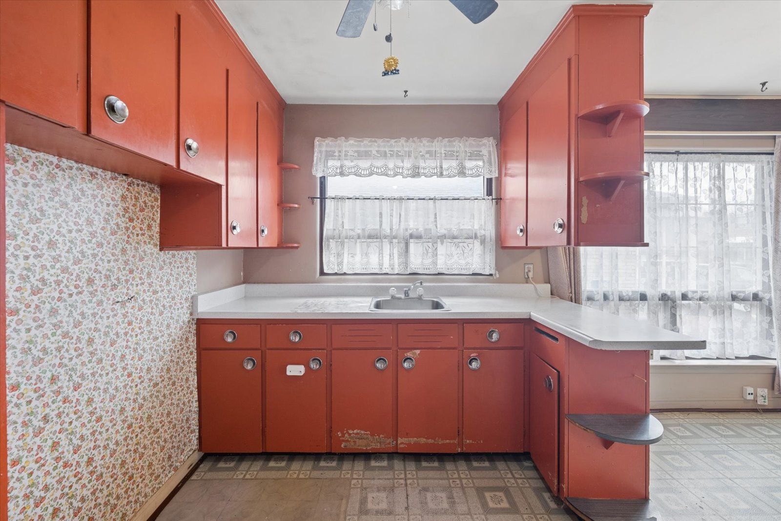 • Solid brick bungalow with a spacious eat-in kitchen and living area.