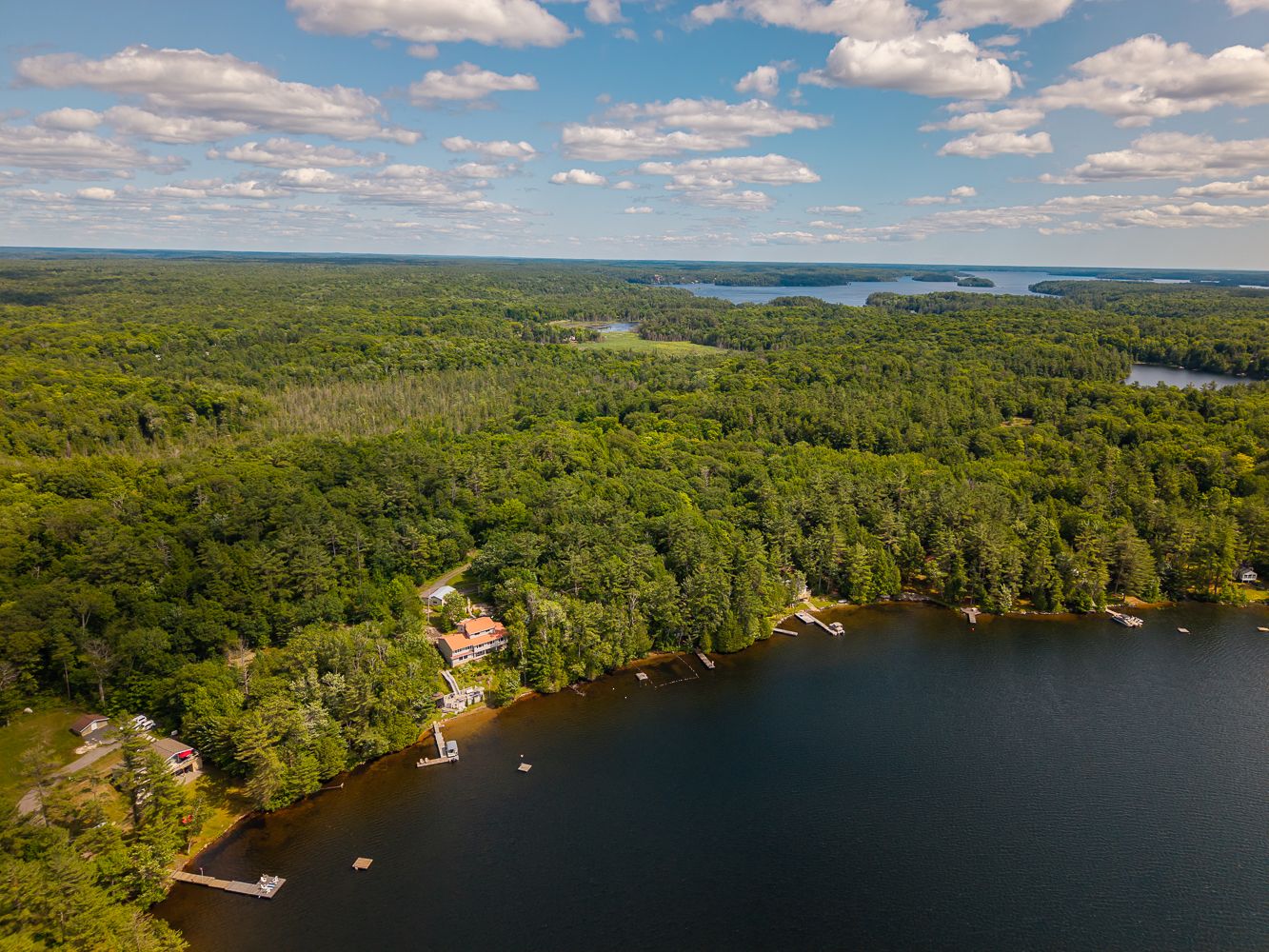 • 200 feet of west-facing shoreline with stunning sunset views.