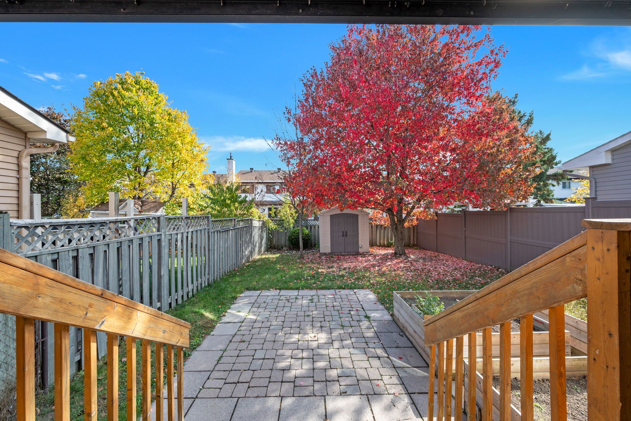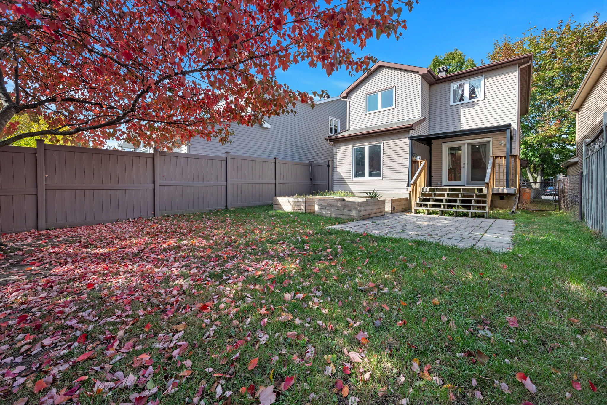 • Large private backyard surrounded by trees, ideal for relaxation or entertaining.