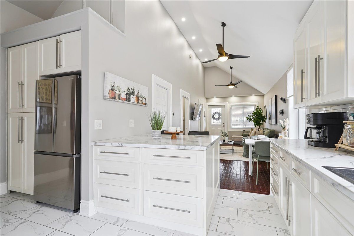 • Impressive bungalow with vaulted ceilings and open concept layout.