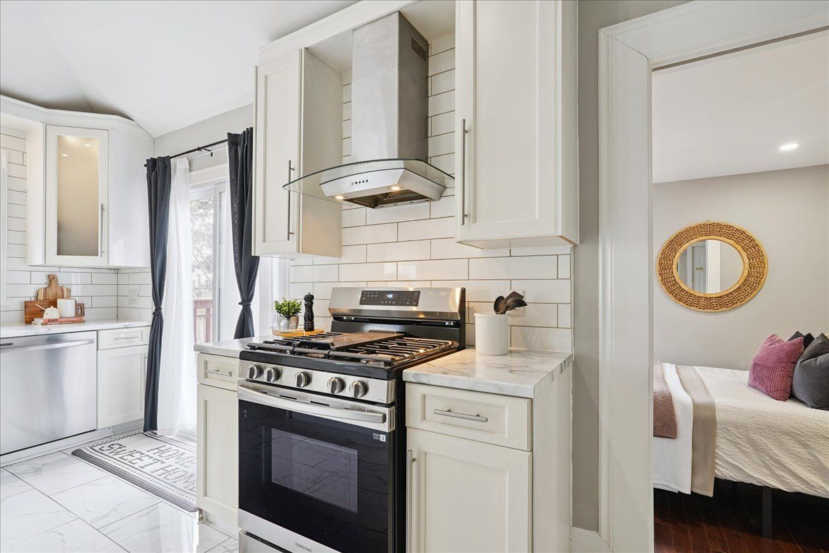 From the moment you open the door, this home impresses with every step you take. Vaulted ceilings and open concept layout make this three bedroom bungalow feel spacious and welcoming. Natural light pours in from every direction as the living room flows seamlessly into the larger-than-expected modern kitchen. Would-be chefs will be right at home with counter space + storage for days, brand new gas stove (2026), refrigerator (2026) + dishwasher (2026). Indoor/outdoor entertaining is seamless with a kitchen walk-out to the backyard deck. Enjoy morning coffee and summer evenings on the large, sunny deck as the kids and fur babies play in the fully fenced backyard. The covered front porch is an underrated bonus - the kind of charming detail that makes a house feel like a home before you even step inside. The primary bedroom is set aside from the other two bedrooms and allows for peaceful enjoyment. Situated in a family-friendly neighbourhood, a short walk from local schools, and basically next door to andy warburton playground with a splash pad + shallow wading pool. Short drive from ottawa st farmers' market and gage park. Washer + dryer (2025).