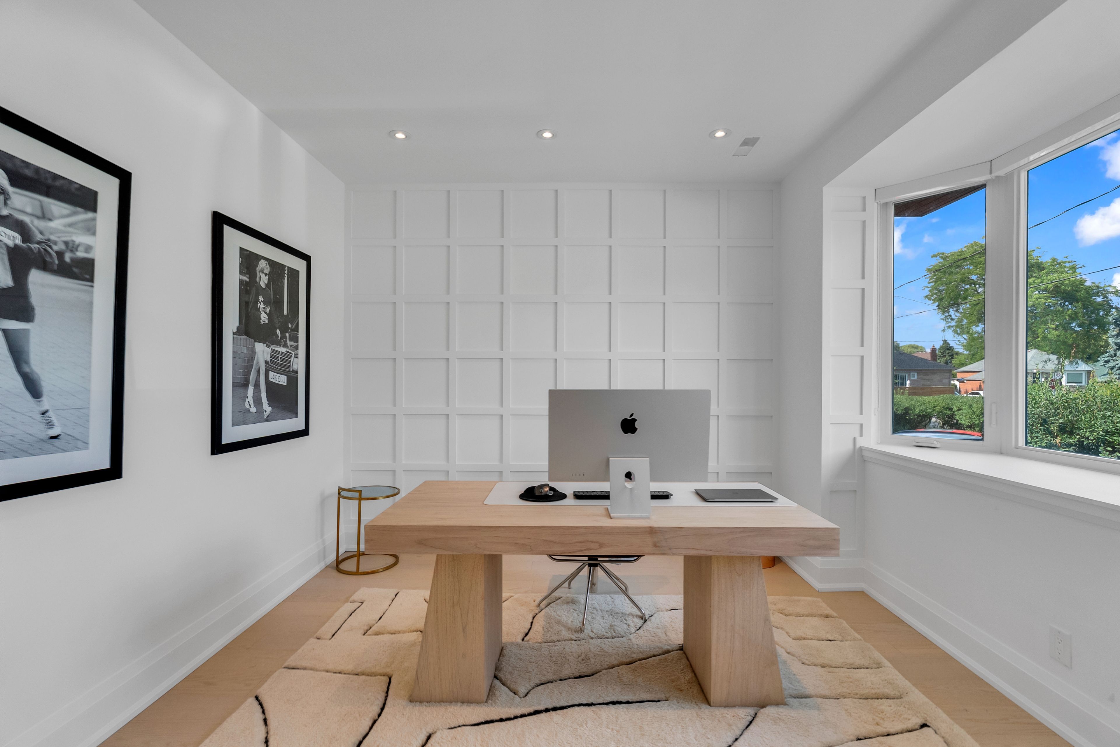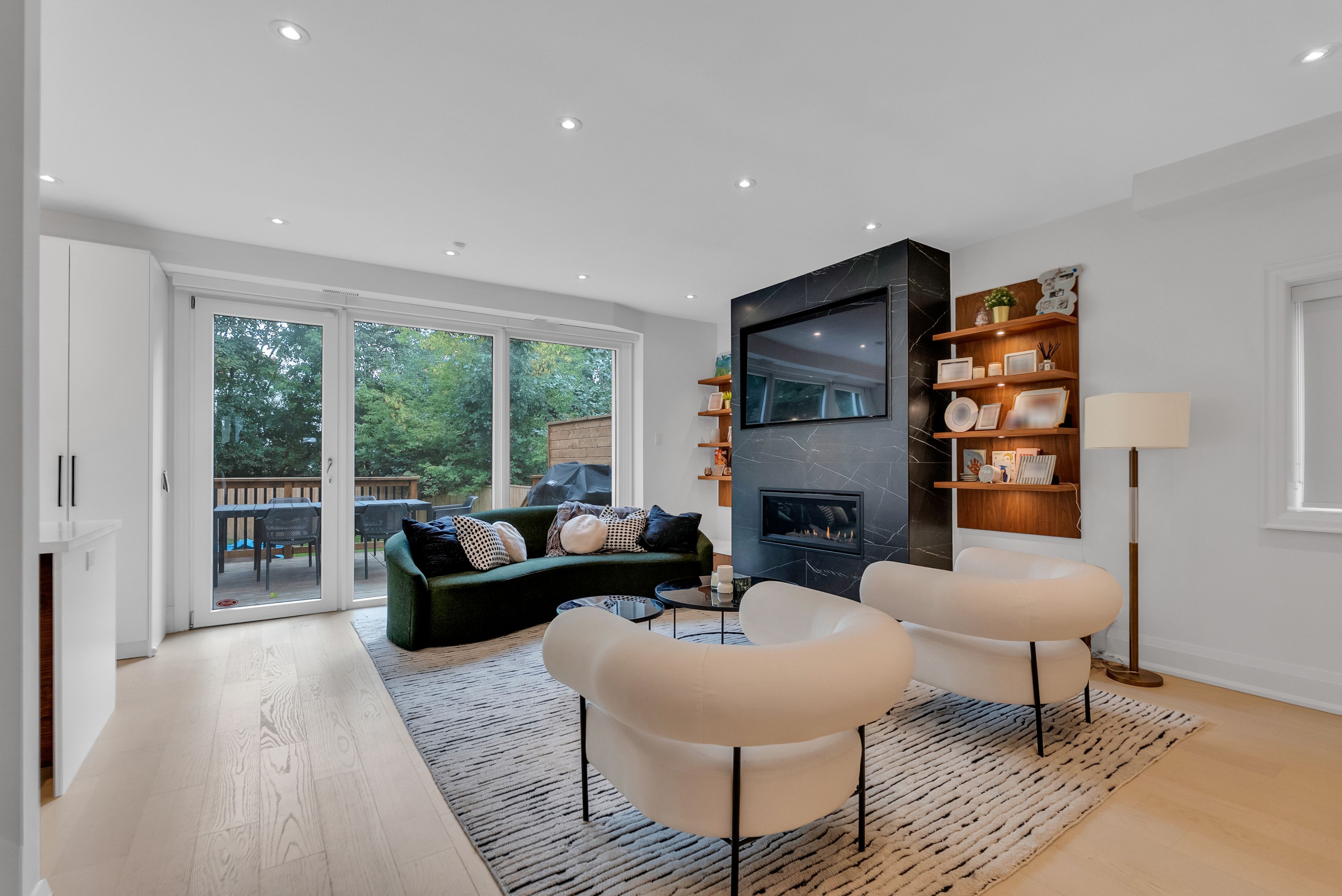 Set on a quiet street in sought-after clanton park, this stunning contemporary home blends comfort and style with bright open spaces, clean lines, and a fresh inviting vibe throughout. The main floor features sun-filled living and dining areas that flow seamlessly into an entertainers kitchen showcasing top-of-the-line appliances and a large eat-in island, with a walkout to a deck and expansive yard, along with a private office/study ideal for working or learning from home. Upstairs, the primary suite offers a peaceful retreat with fireplace, walk-in dressing room, and spa-inspired ensuite, complemented by three additional bedrooms each with their own ensuite. The lower level expands the living space with a generous recreation room and wet bar/second kitchen for effortless hosting, a guest or nanny suite, additional office/bedroom, second laundry, and ample storage, creating a home that is both stylish and practical for modern living. Just minutes to shopping, cafes, groceries, restaurants, parks, schools, and all the neighbourhood amenities that make this home the perfect place for the whole family. Truly a must-see!