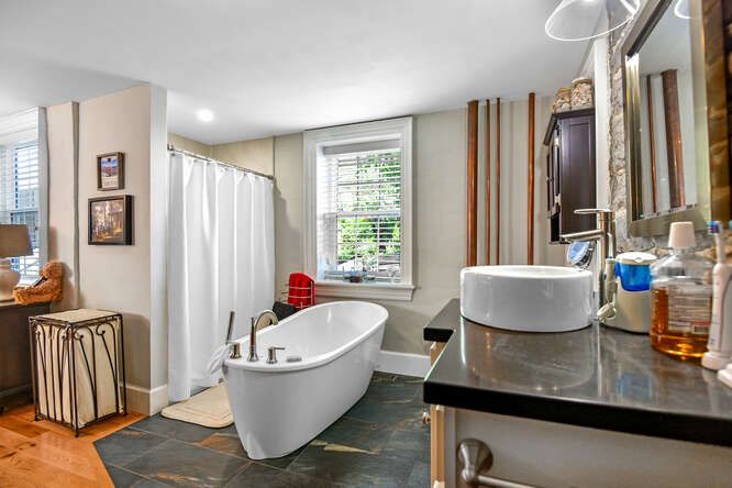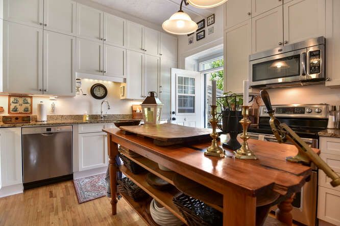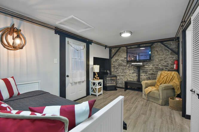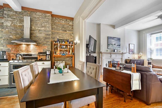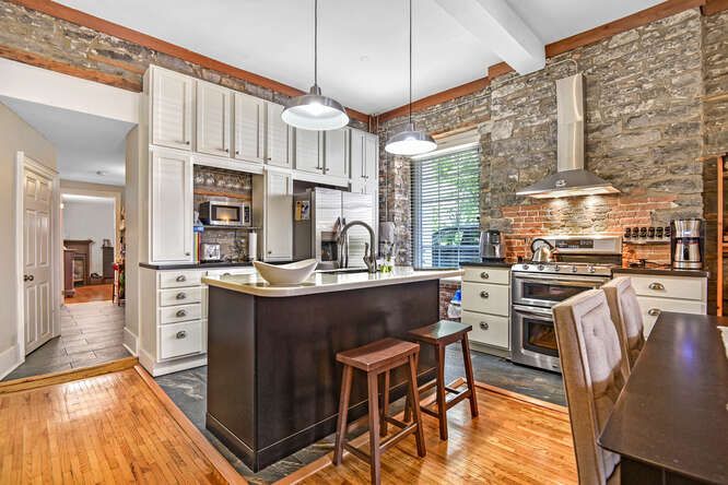 Welcome to 32 apple st, brockville. Duplex potential. This home is truly one of a kind and must be seen to be appreciated. This 1834 stone home, originally the john mcmullen house has been lovingly restored in the past 10 yrs and features 3 distinct living spaces, perfect for generational families. The main level boasts hardwood & porcelain floors throughout. The open concept living room/dining room/kitchen are complete with corian countertops, an abundance of cupboard space and beautifully accented by the exposed stone wall. The main level finishes off with the primary bedroom/4pc ensuite, an office, 2pc bath and m/f laundry. Upstairs you'll find a complete 2nd living space again with hardwood flooring, an open concept 2nd kitchen/living room/dining room, 2 more bedrooms a gorgeous 3pc bath with cultured marble in the shower. The 3rd level offers a perfect space for a kids play area or a craft room. The rear of the home has a beautifully completed studio inlaw suite., flooring: tile, flooring: hardwood