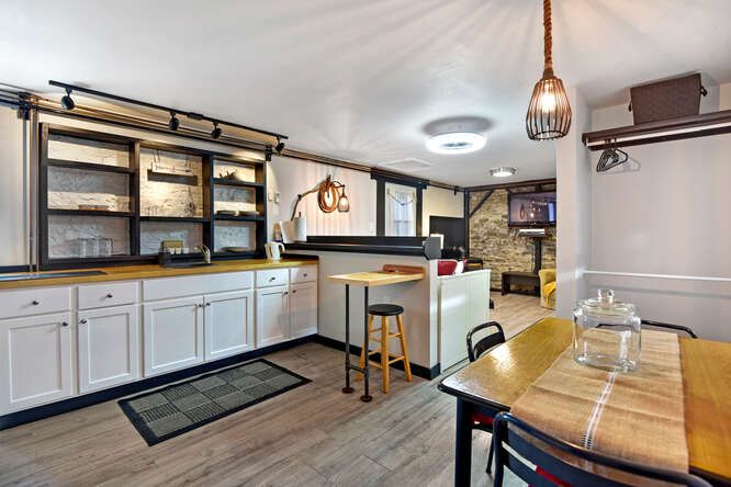 • Second living space upstairs with kitchen, living, and two bedrooms.