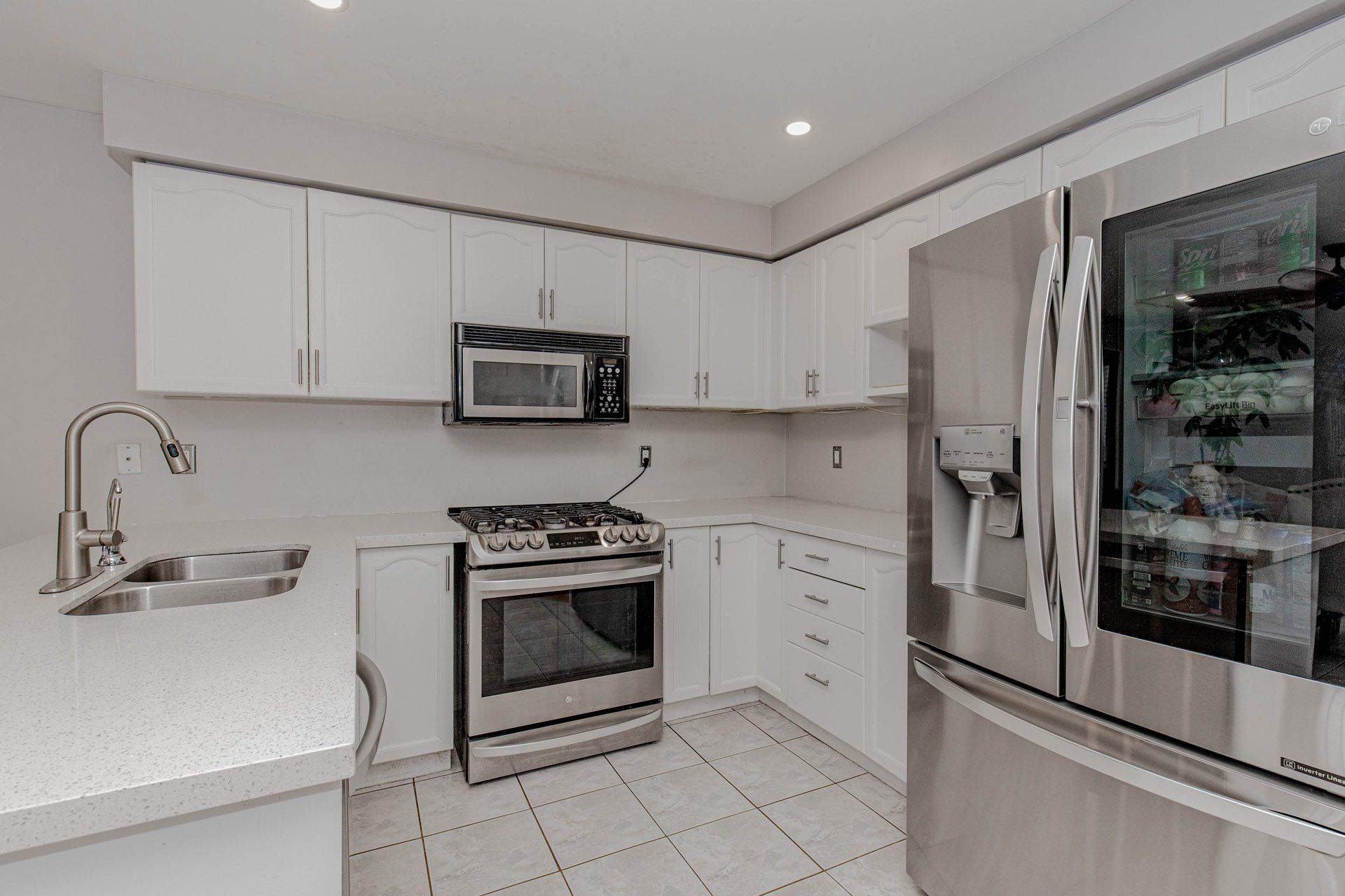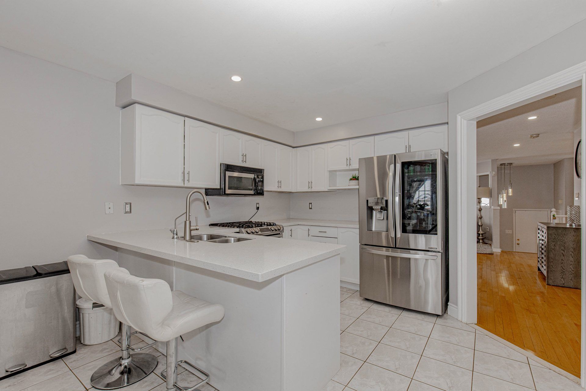 • Spacious eat-in kitchen featuring quartz countertops and sun-filled deck.