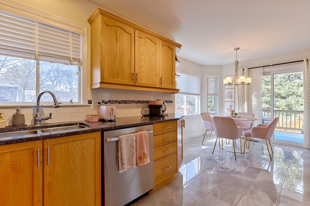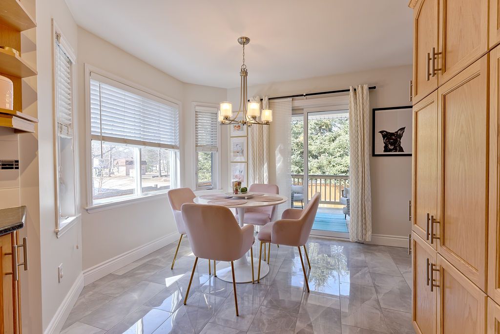 • Bright, open concept kitchen and dining area with direct deck access.