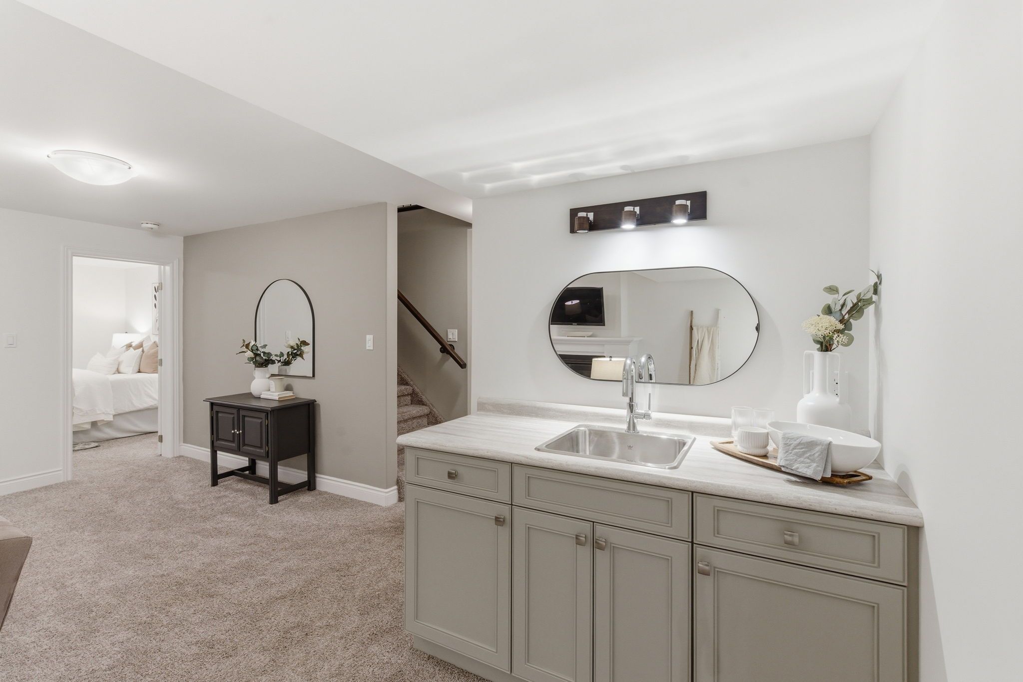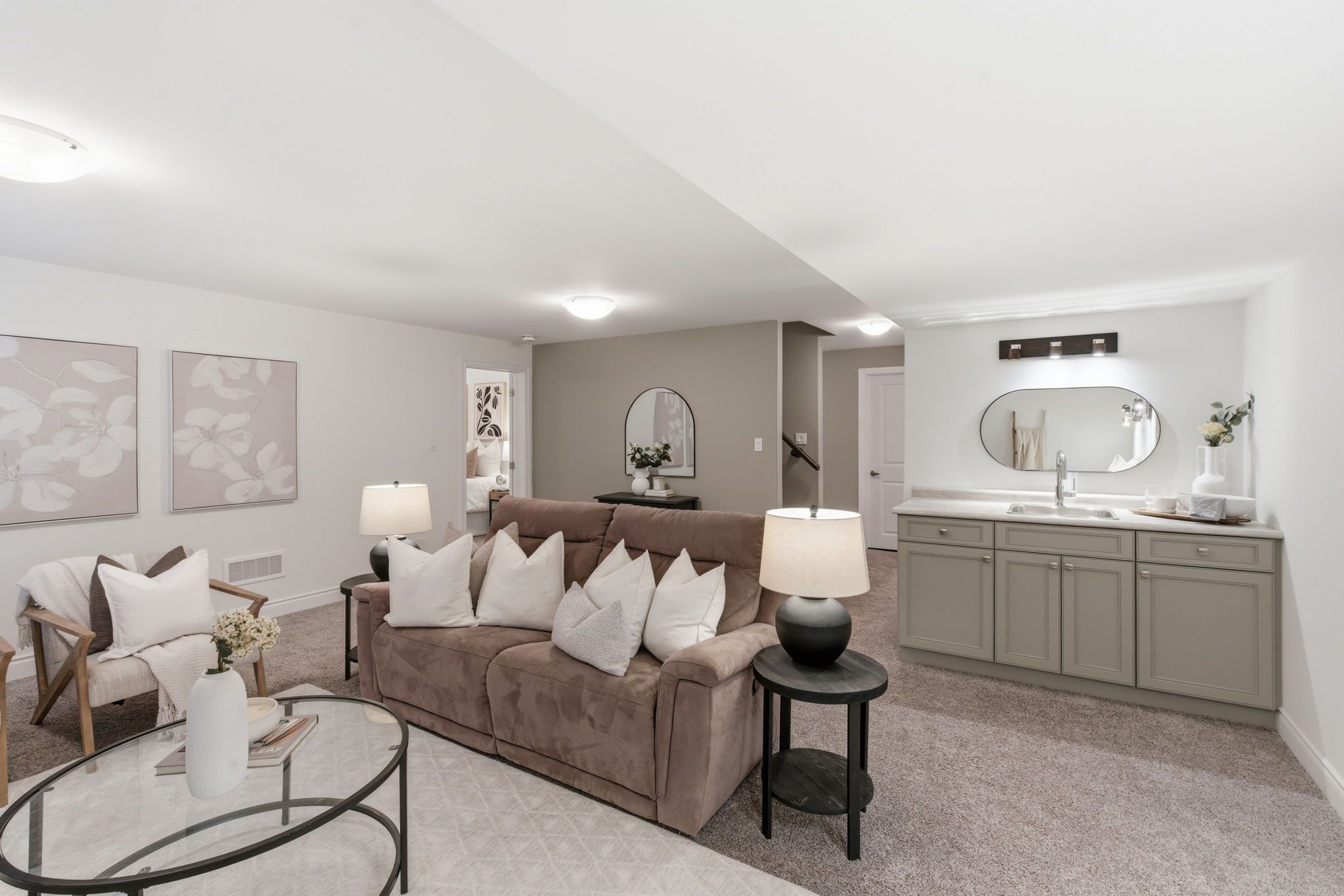 • Finished basement with wet bar, spacious bedrooms, and additional living area.