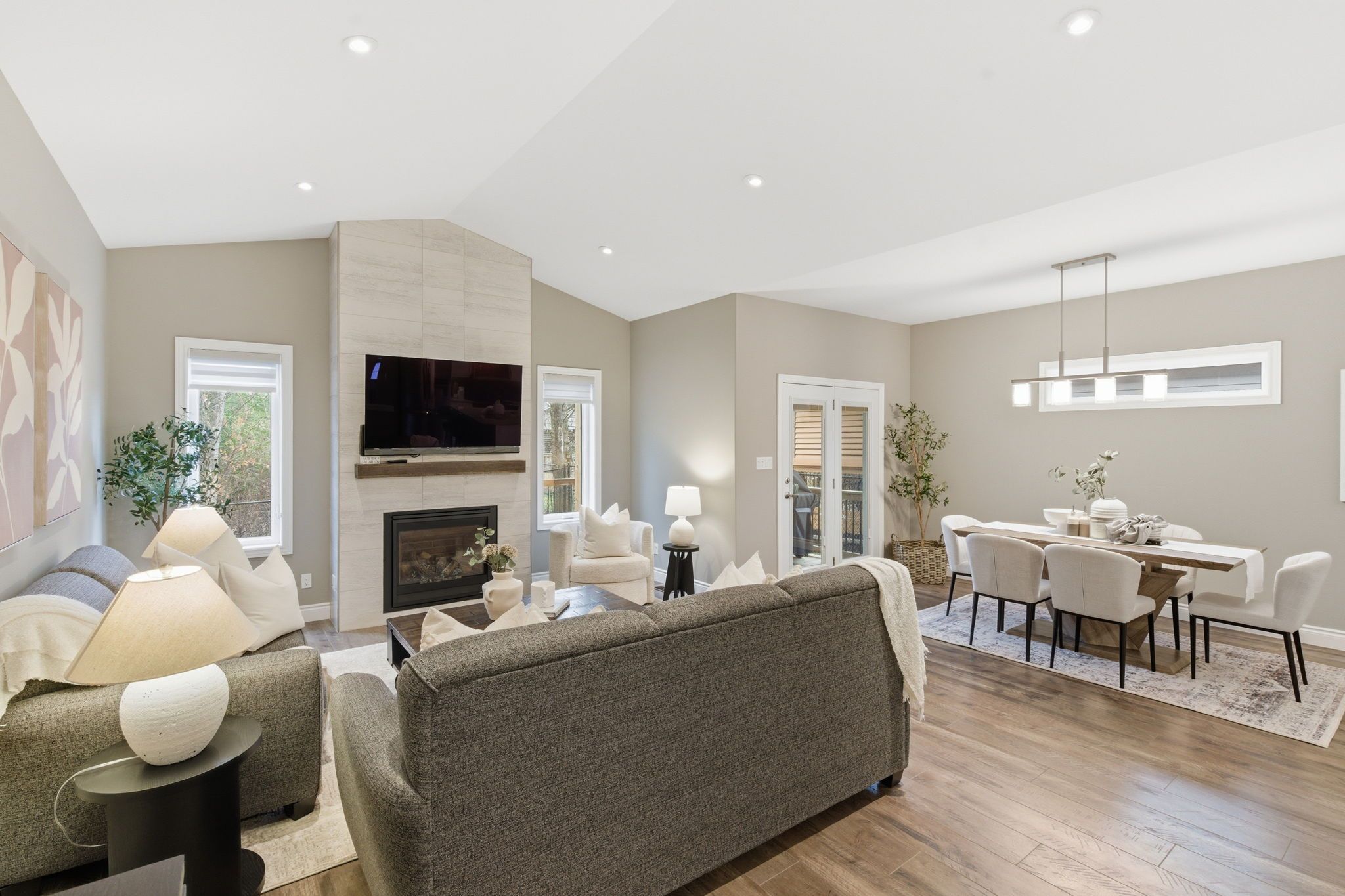 Welcome to this stunning mara model bungalow by mcdonald homes, perfectly located in the heart of trenton. From the moment you walk in, the space feels open, bright, and truly breathtaking. At the front of the home, you're greeted by a spacious den enclosed with french doors-ideal for a home office, reading room, or quiet separate living space. Continue down the hall into the heart of the home to a beautifully designed open concept kitchen featuring a large centre island, quartz countertops, stainless steel appliances, a stylish backsplash, and ample cupboard and counter space for everyday living and entertaining. The living room is filled with natural light and elevated by soaring vaulted ceilings and a built-in upgraded gas fireplace, creating a warm yet airy space to gather. The primary bedroom offers a comfortable retreat with a walk-in closet and a private 3-piece ensuite. A generously sized second bedroom with double closets and a modern 4-piece main bathroom complete the main level, along with modern laminate flooring throughout. You'll also love the thoughtfully designed laundry room-complete with a laundry sink, folding counter, plenty of storage, and convenient access to the two-car garage. Downstairs you have a fully finished basement that continues to impress with a large open concept living space, wet bar, second gas fireplace, two additional spacious bedrooms with walk-in closets and above-grade windows, a 4-piece bathroom, workshop, additional laundry sink and plenty of storage. With direct stair access to the insulated garage from the basement, the functionality here is hard to beat. Outside, the home delivers just as much. From its charming curb appeal to the private backyard oasis, you can unwind on the deck surrounded by mature trees and peaceful surroundings. With schools, shopping, and everyday amenities just minutes away, this home offers the perfect balance of comfort and convenience in a prime location. 200amp panel. Central vacuum rough-in.