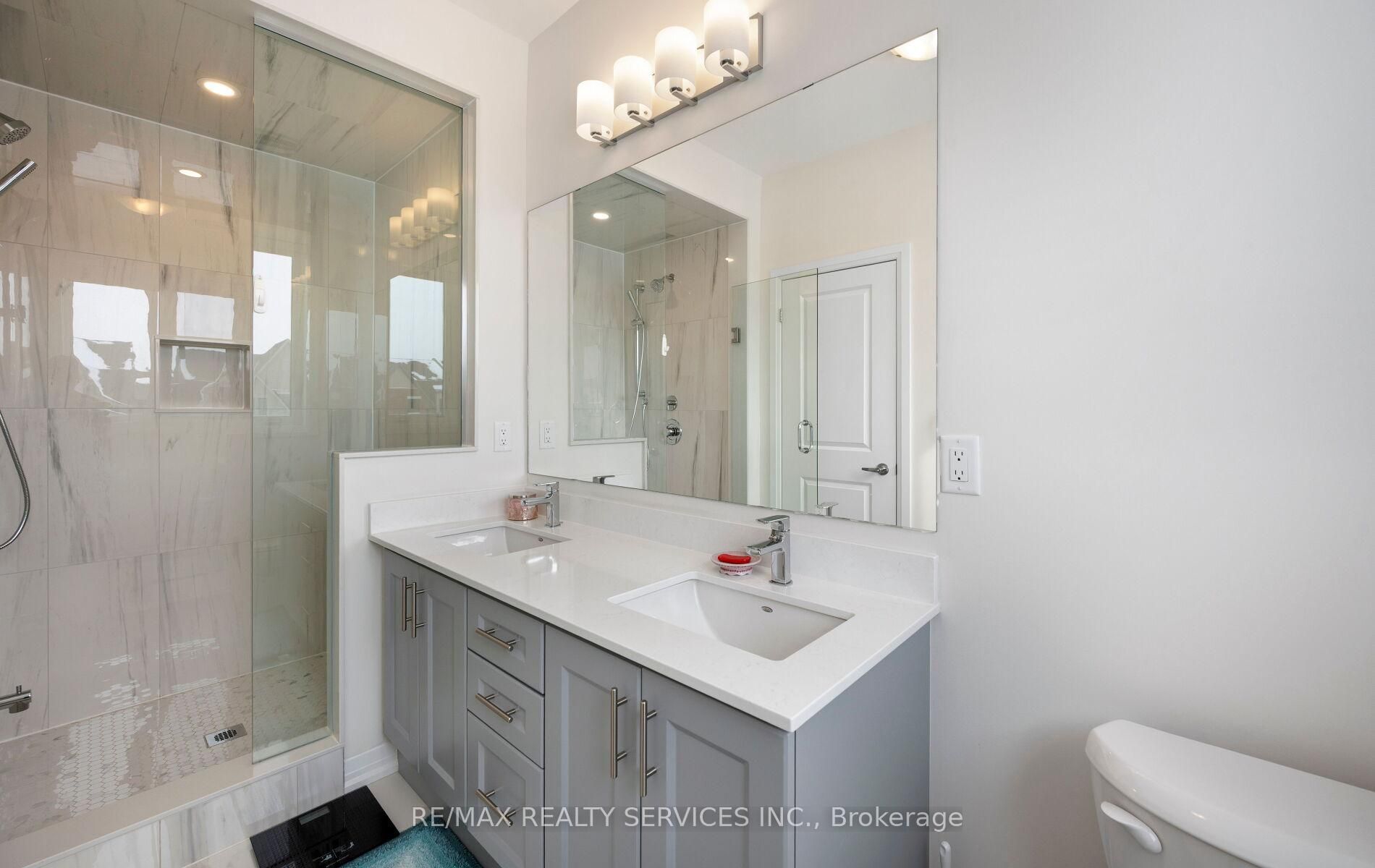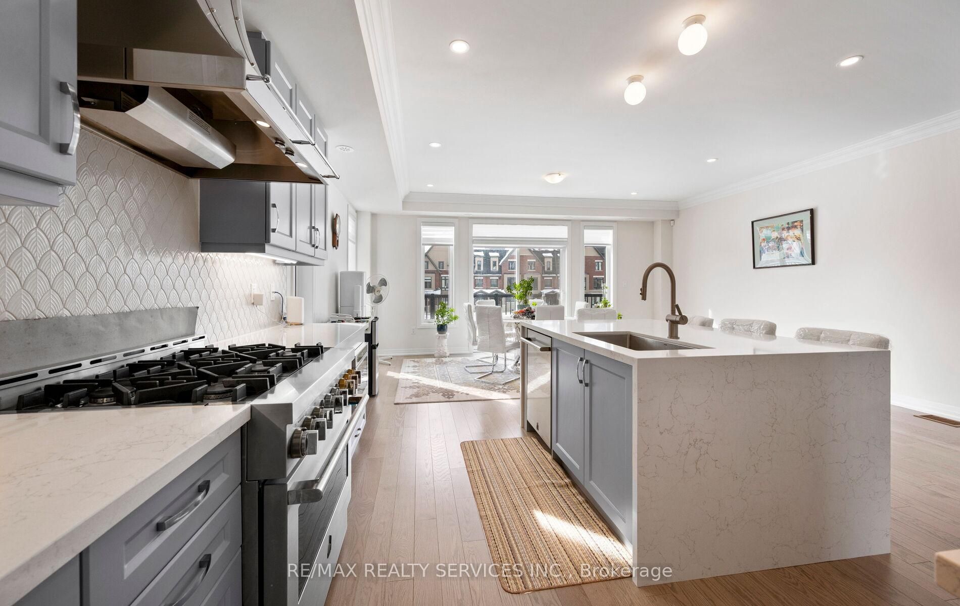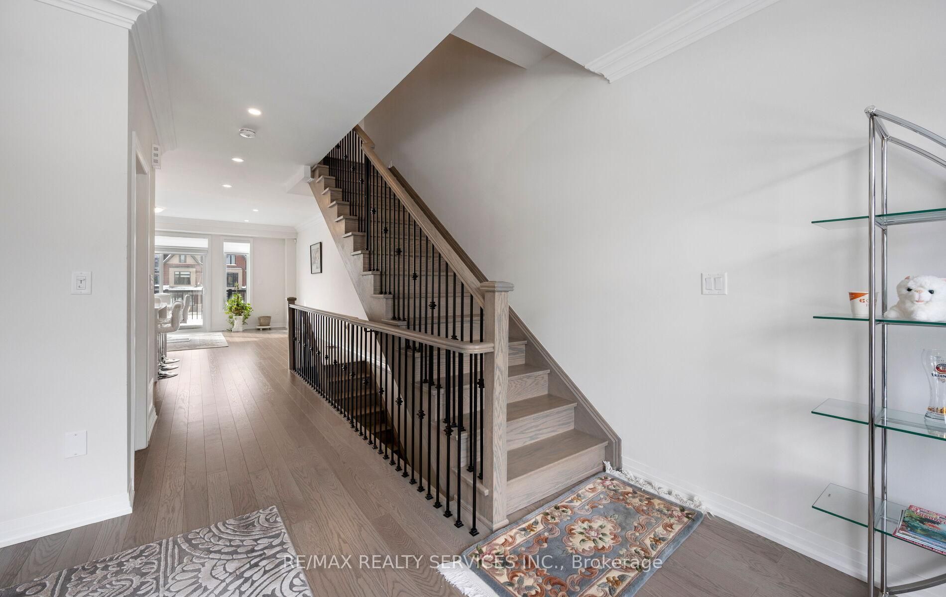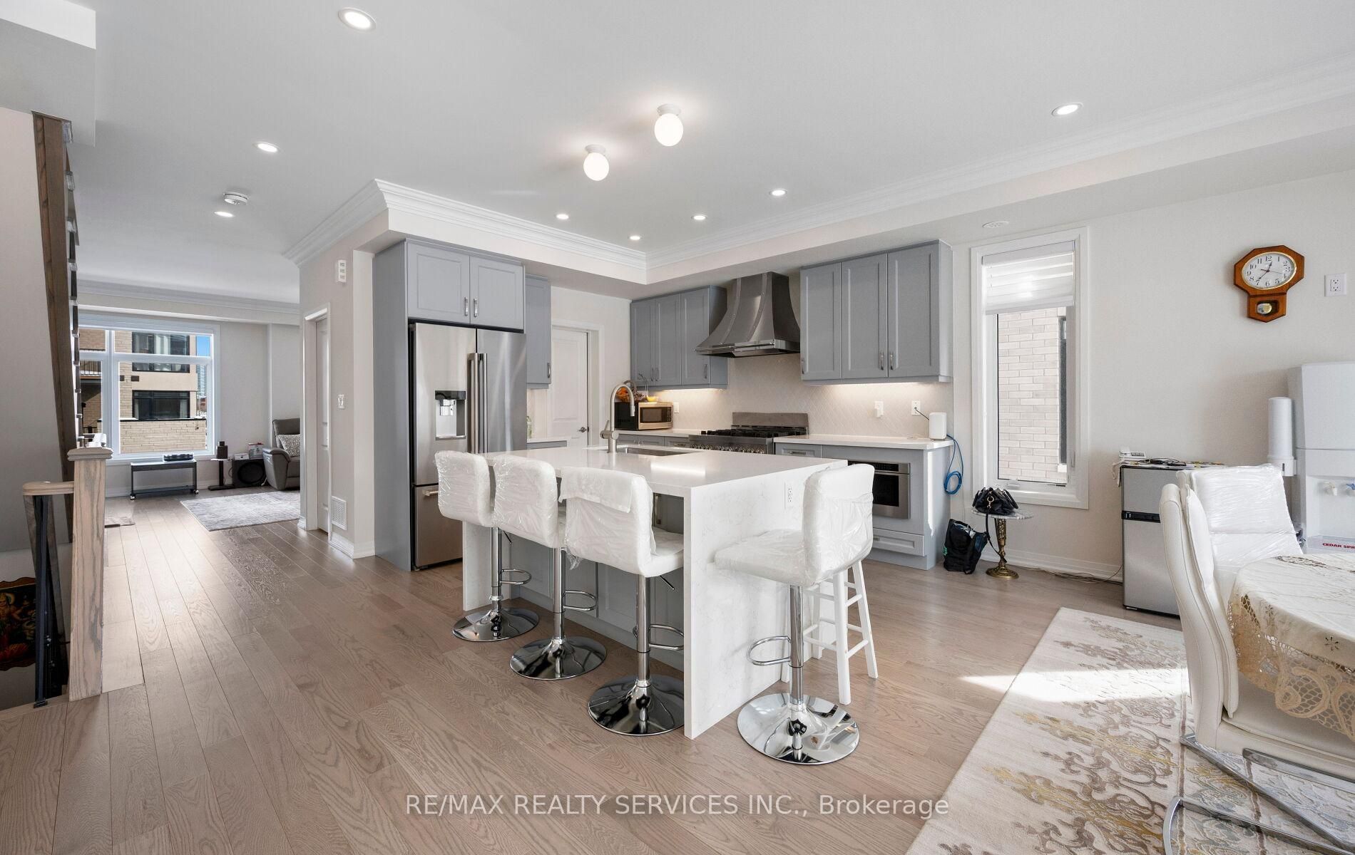 Brand new less than a year old bright and spacious upgraded end unit townhome with a double car garage offering approximately 2300 sq. Ft. Of modern living space in the sought-after area of northwest brampton located just a few mins away from the mt pleasant go station. Loaded with premium builder upgrades, this home features smooth ceilings, crown molding throughout, and custom window coverings. The open-concept main floor showcases a chefs kitchen with a large center island, high-end jenn air appliances with a gas stove, and a built-in microwave, flowing seamlessly into the living and dining areas with walk-out to a private balcony. Upgraded oak staircases with iron pickets enhance each level. Upstairs, the primary bedroom includes a large walk-in closet, 4pc spa like en-suite and access to a second private balcony. Two additional bedrooms share a full bath, and the convenient upper-level laundry completes the home. Located in a desirable, well-connected neighbourhood-move-in ready and not to be missed!!!!