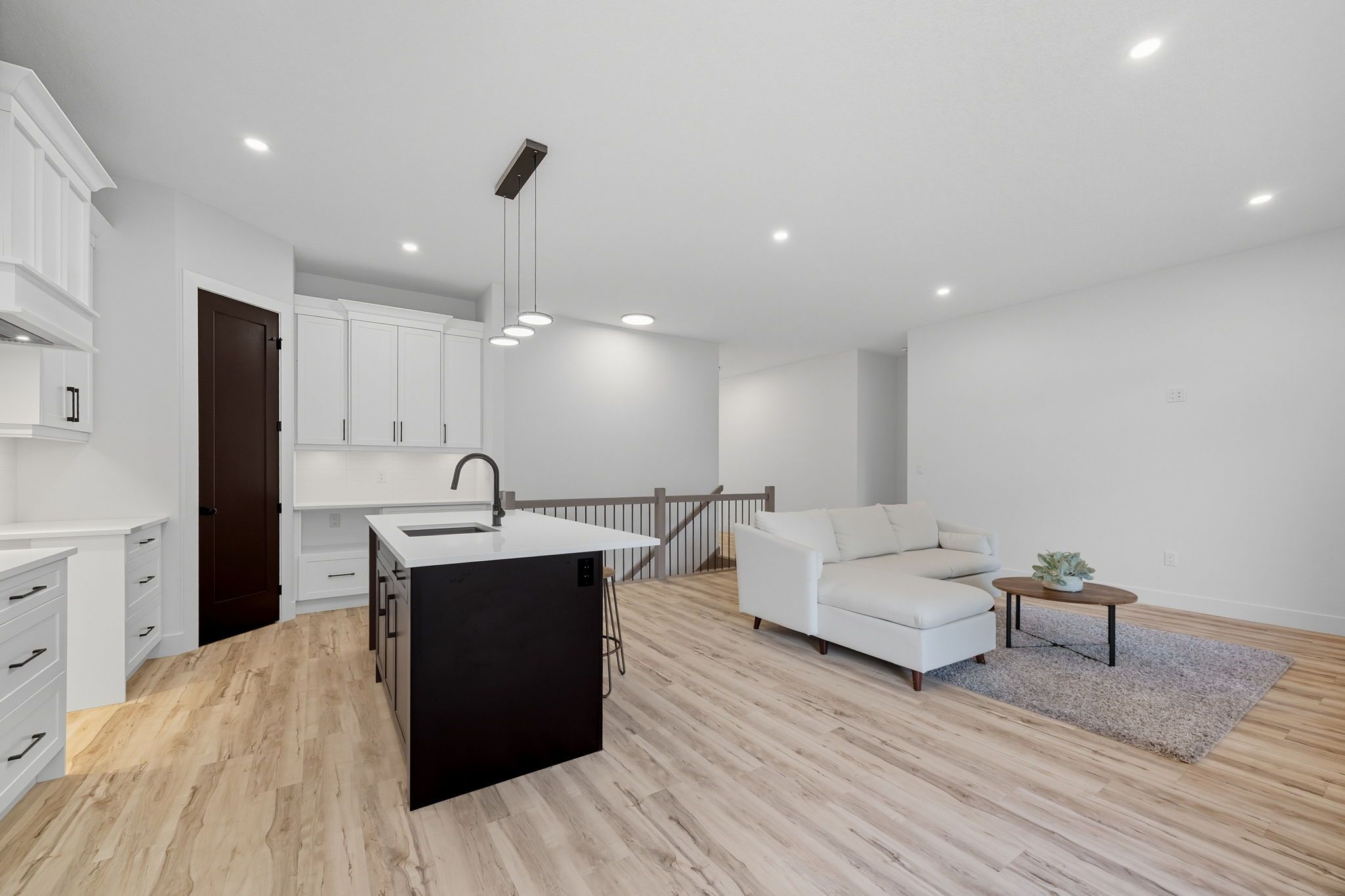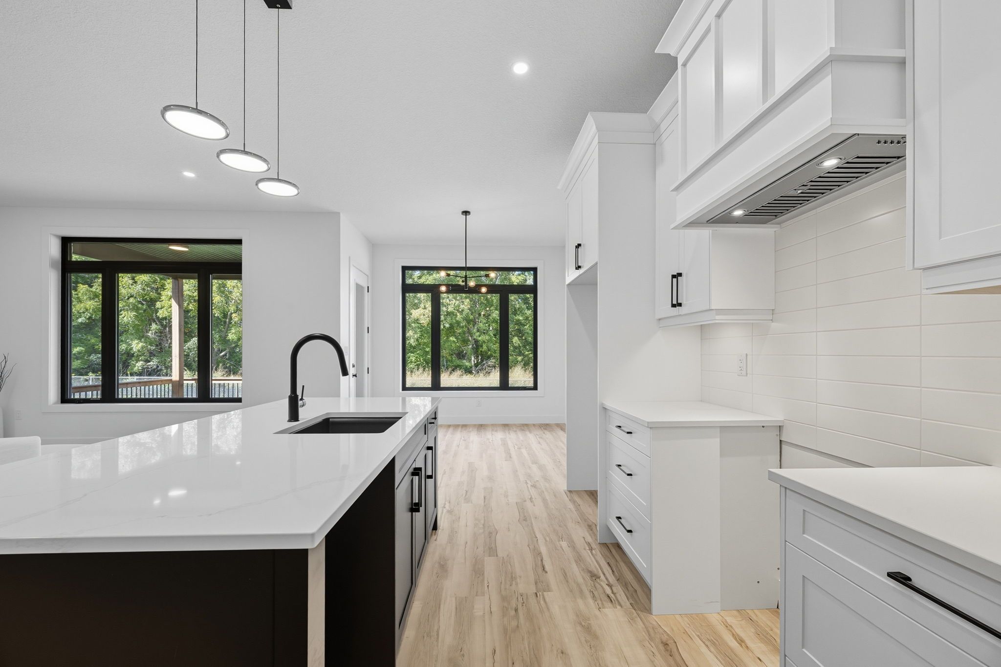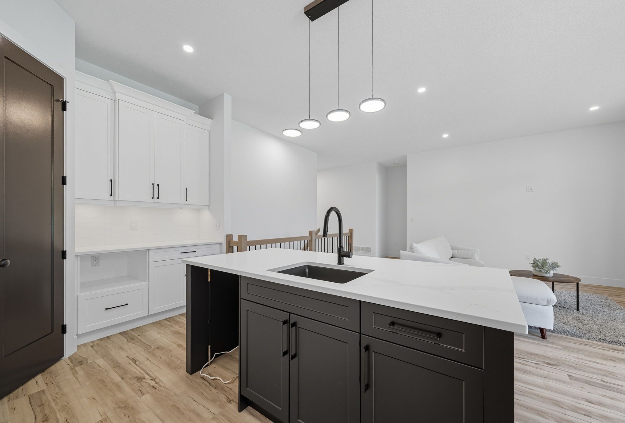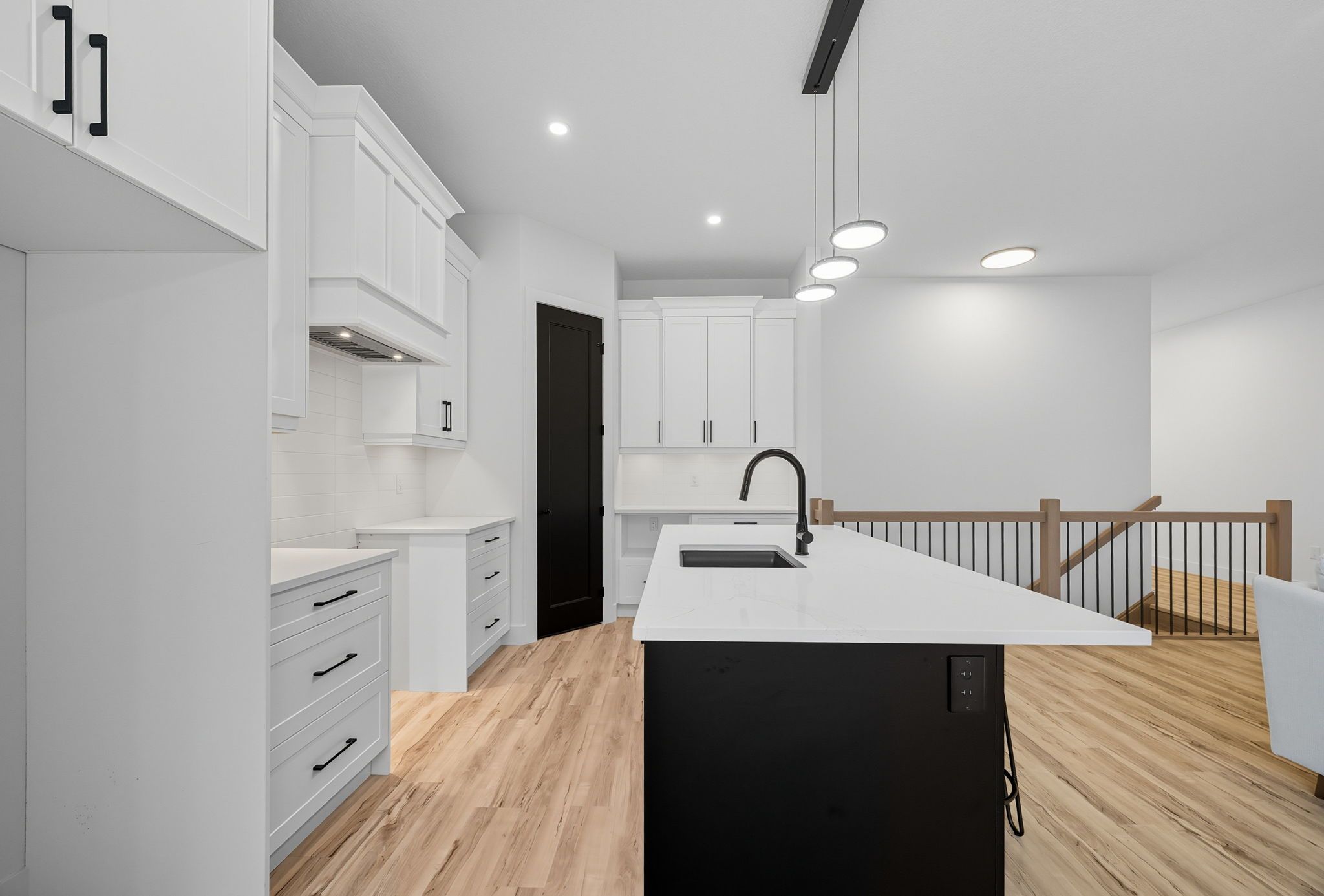 • Kitchen includes a large island and pantry, great for cooking and entertaining.