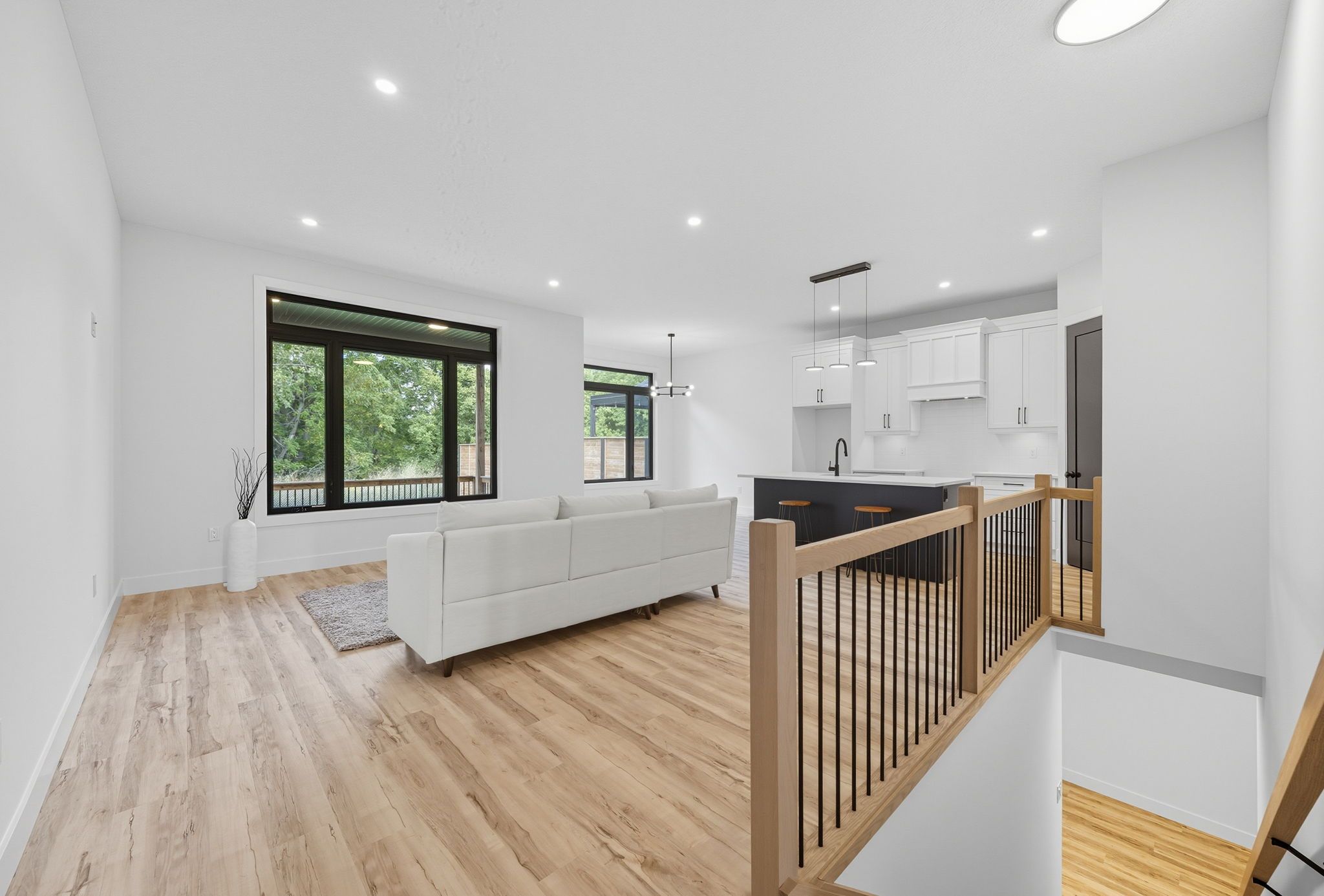 A stunning new build bungalow with finished basement by dwyer homes. This 2+2 bedroom, 3 bathroom home is located on a quiet crescent in strathroy and backing onto a ravine, surrounded by mature trees. Inside, soaring 10-foot ceilings and an open-concept design set the tone for modern living. The kitchen includes a large centre island with eating bar and a spacious pantry, opening directly to the great room and dining area with walkout to a covered deck and private yard. The front bedroom shines with natural light, while the primary suite is a true retreat with walk-in closet and luxurious five-piece en-suite. An additional four-piece bath and a convenient laundry/mudroom off the garage complete the main floor. Downstairs, the finished lower level impresses with a massive family/games room, two more bedrooms, and another full bath. This impressive home blends style and function and is just minutes to schools, parks, shopping, the hospital, and quick access to highway 402.