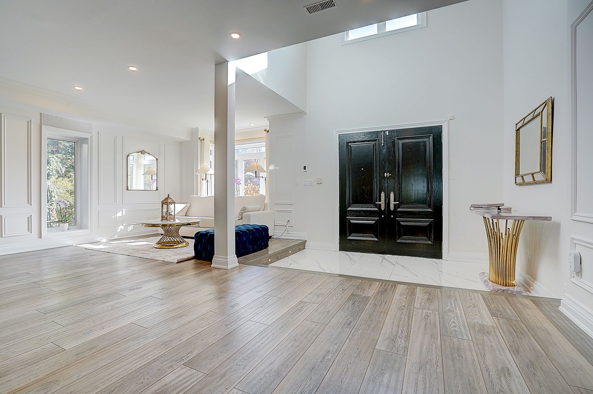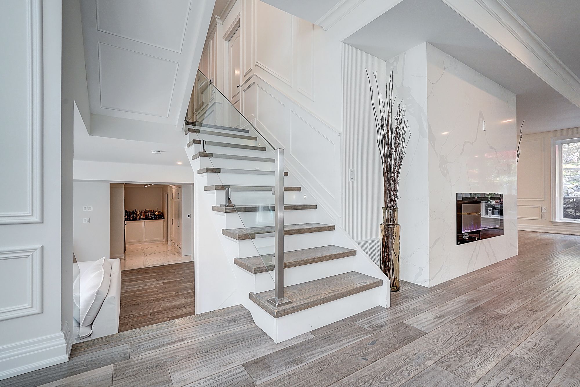 Welcome to prestigious hoggs hollow! Gracefully nestled among lush ravines and steps from the iconic rosedale golf club, this elegant residence blends timeless charm with modern sophistication. A stately steel gate and grand entry doors create a striking first impression. The sun-filled open-concept main floor showcases wall-to-wall bay windows overlooking one of the area's deepest private lots-your serene, tree-lined backyard oasis with endless potential. The living room's marble-surround fireplace adds warmth, while a mezzanine overlooking the grand foyer enhances the sense of space and luxury. The sleek chef's kitchen features top-tier appliances, a waterfall island, and an inviting breakfast area. Upstairs, the primary suite offers a private sitting room and juliet balcony retreat. All bedrooms boast spa-like ensuite baths with in-floor heating. Attached garage and generous storage complete this exceptional home.