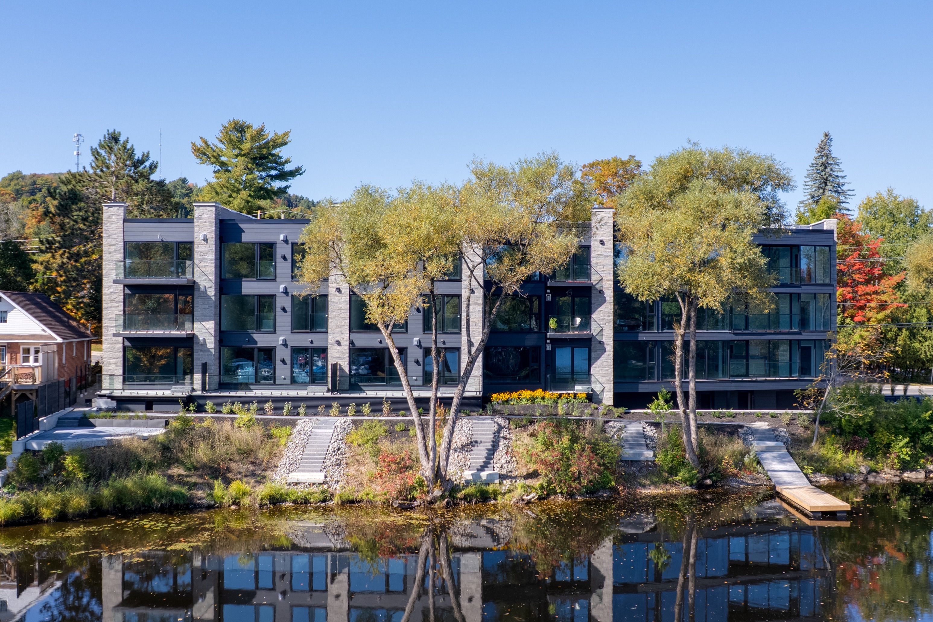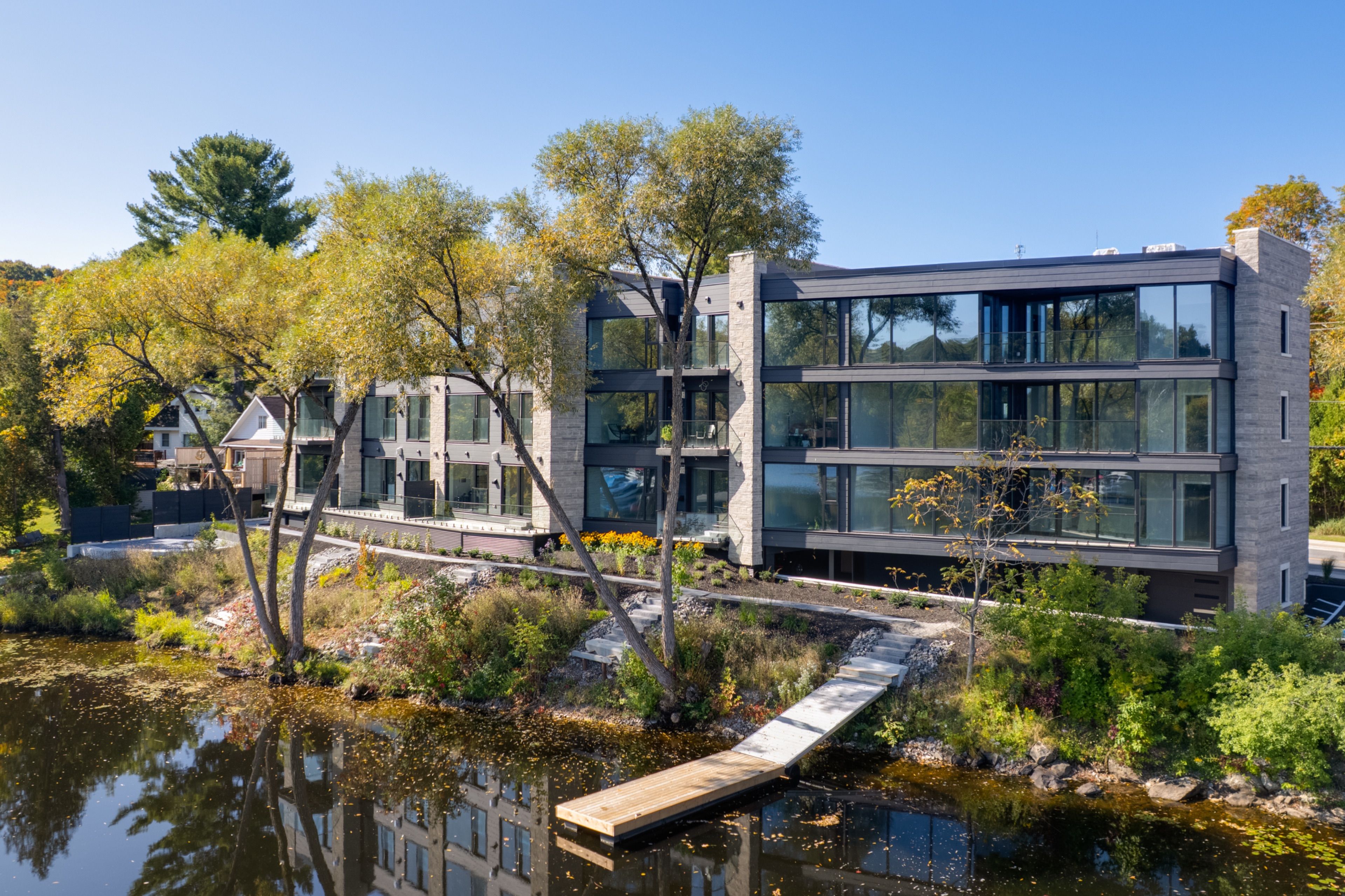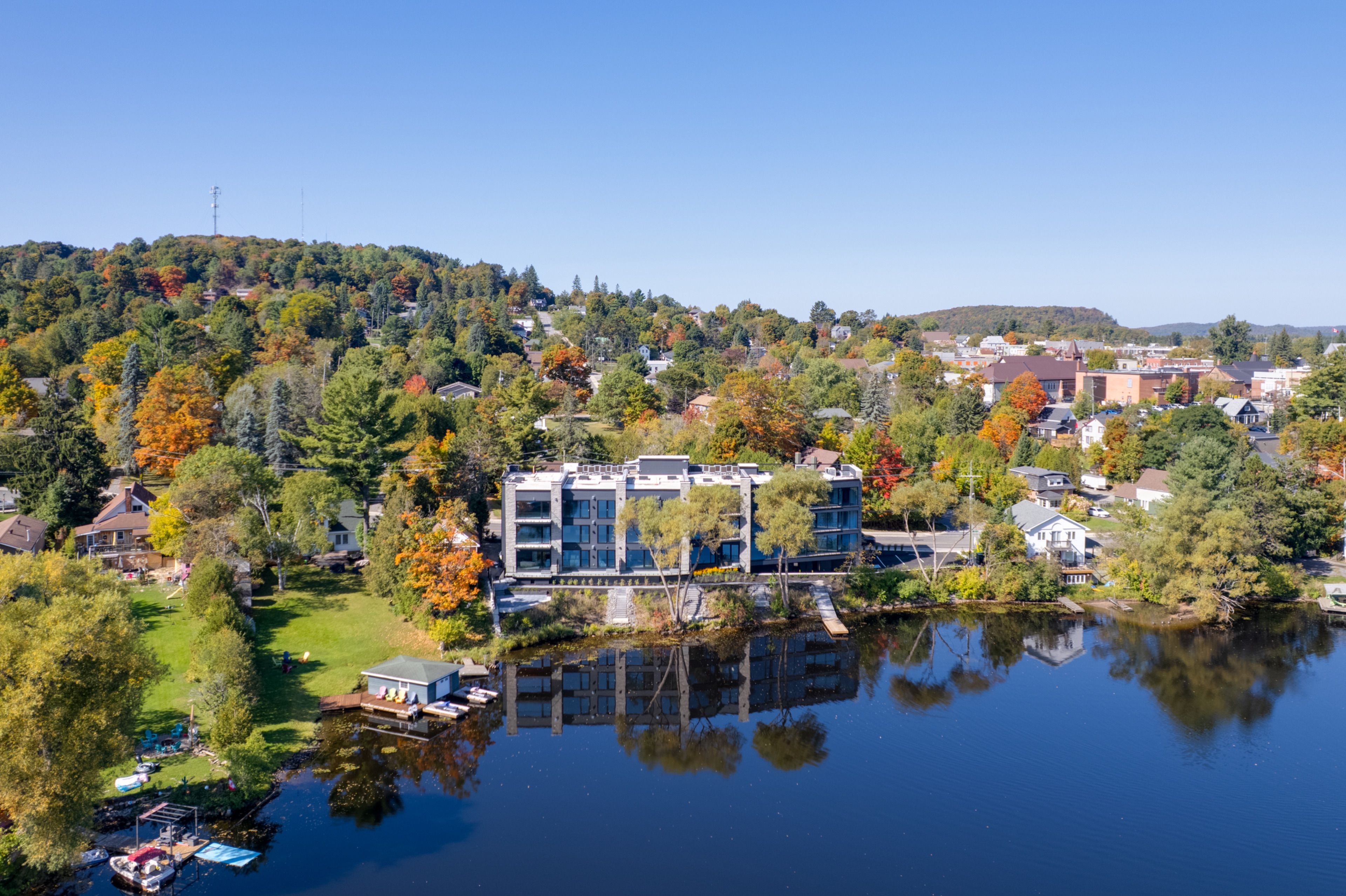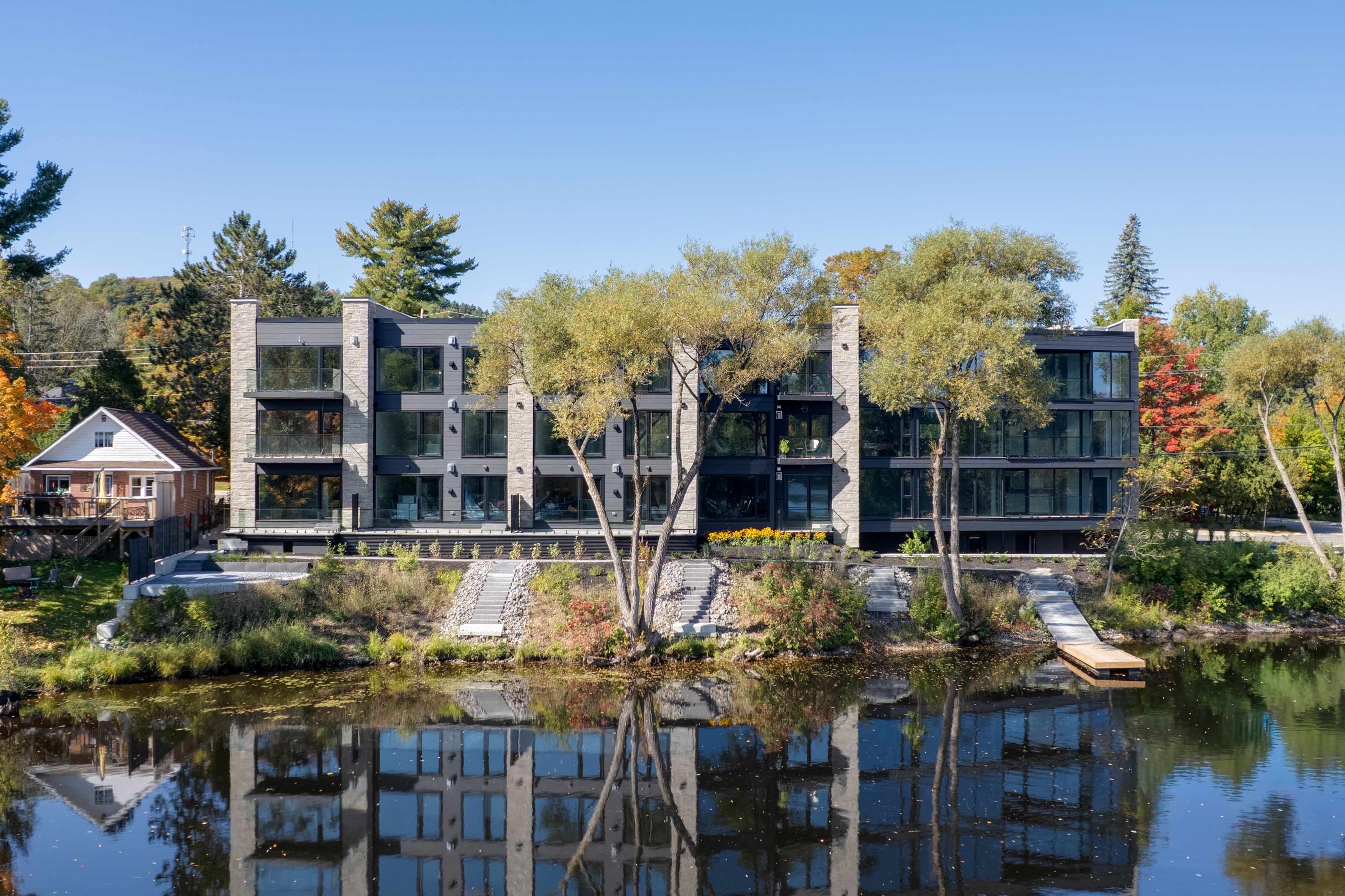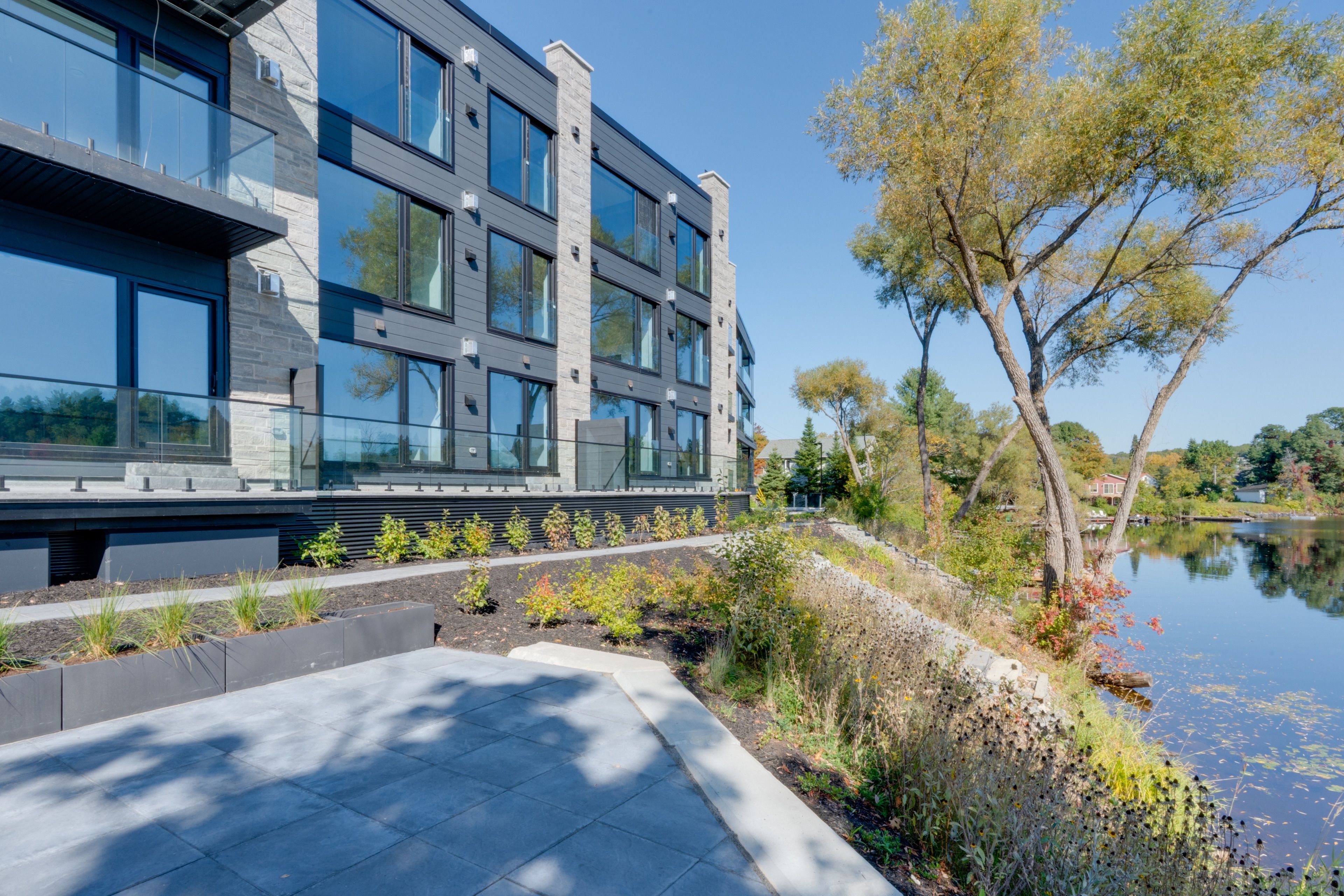 • Private large balcony with scenic views of the Muskoka River.
