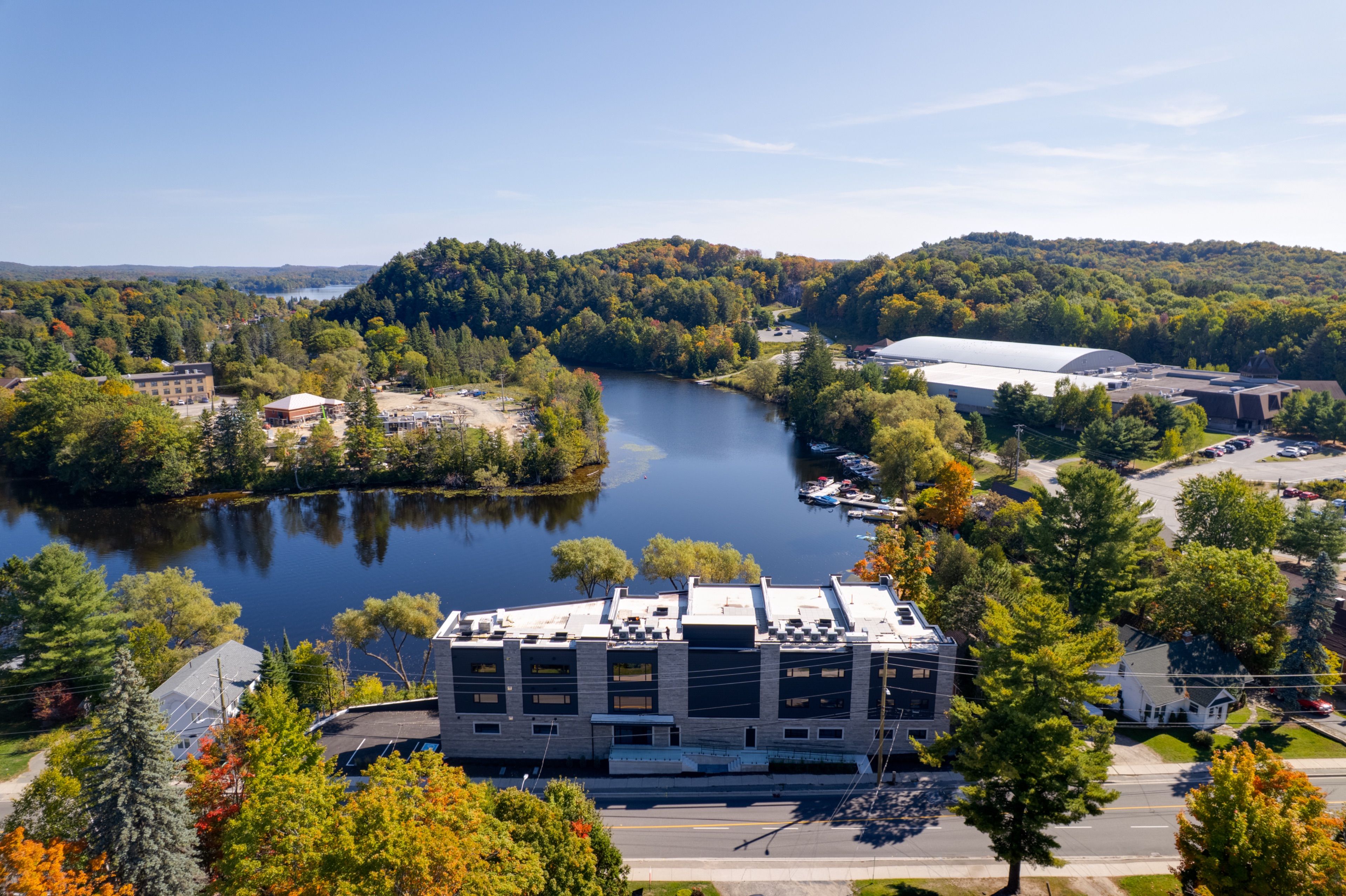 Welcome to muskoka riverbend condominiums at 32 brunel road in huntsville. This beautifully appointed 1-bedroom plus den suite offers first floor convenience with an exceptional blend of comfort, style, and waterfront tranquility in an exclusive boutique building of just 15 residences. Suite 104 features a spacious open-concept layout with a modern kitchen, generous living and dining areas, and a private large balcony overlooking the muskoka river-perfect for relaxing or entertaining. The versatile den provides an ideal space for a home office or guest area. Enjoy upscale finishes throughout, including custom cabinetry, engineered wide plank hardwood flooring, large format tile in the bathroom, and premium plumbing fixtures. Located just a short walk to vibrant main street huntsville, you'll have convenient access to shops, dining, and everyday amenities while enjoying the serenity of riverside living. The unit includes one underground parking space and is available soon for a minimum one-year lease. Experience refined muskoka living in one of huntsville's most desirable condominium communities.
