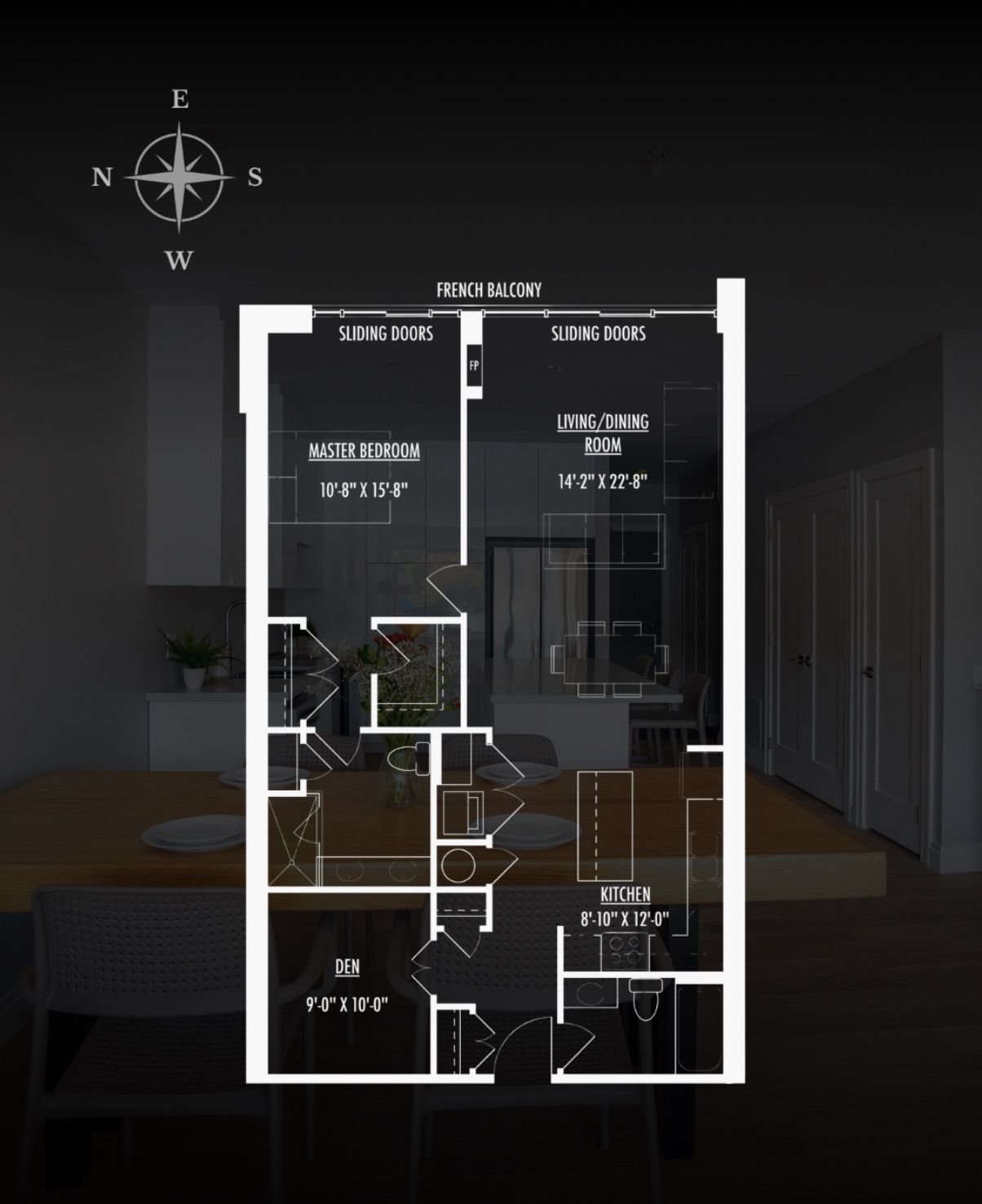 • First-floor suite with open-concept layout and modern kitchen.