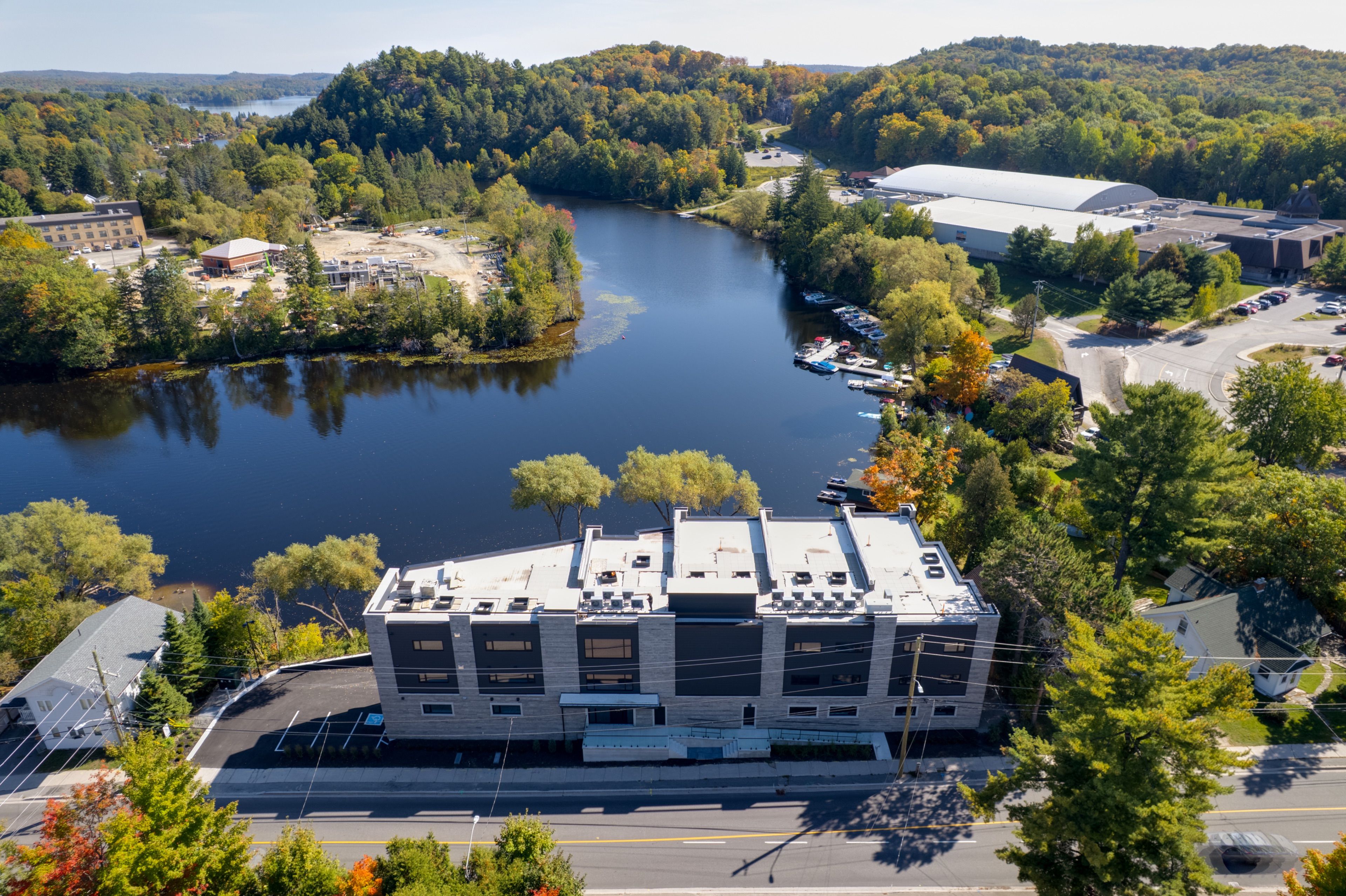 Welcome to the riverbend! Luxury waterfront living on the muskoka river. Unit 105 offers a year round rental experience with refined muskoka living. In this luxury 3 bedroom condominium suite at the riverbend, an exclusive waterfront community is nestled along the shores of the muskoka river in huntsville. This exceptional unit is available to purchase or lease, and is offered on a minimum 6-month lease. The riverbend is an intimate, boutique residence with just 15 suites, blending modern design with timeless muskoka charm. This spacious 3 bedroom suite features an open-concept living area, designed to maximize natural light and showcase stunning riverfront views through large, energy-efficient triple-paned windows. Enjoy peace and privacy while remaining just minutes from huntsville's vibrant downtown, local shops, dining, and amenities. With direct access to 40 miles of boating on the muskoka river, waterfront living doesn't get better than this. A large communal dock, along with a patio and bbq area, provides the perfect setting for relaxing or entertaining throughout the season. The unit includes one underground parking space, with guest parking available. Boat slips may be available separately. This is unit is offered for sale or rental and is ideal for those seeking a premium muskoka retreat for the summer months, or a year round home!