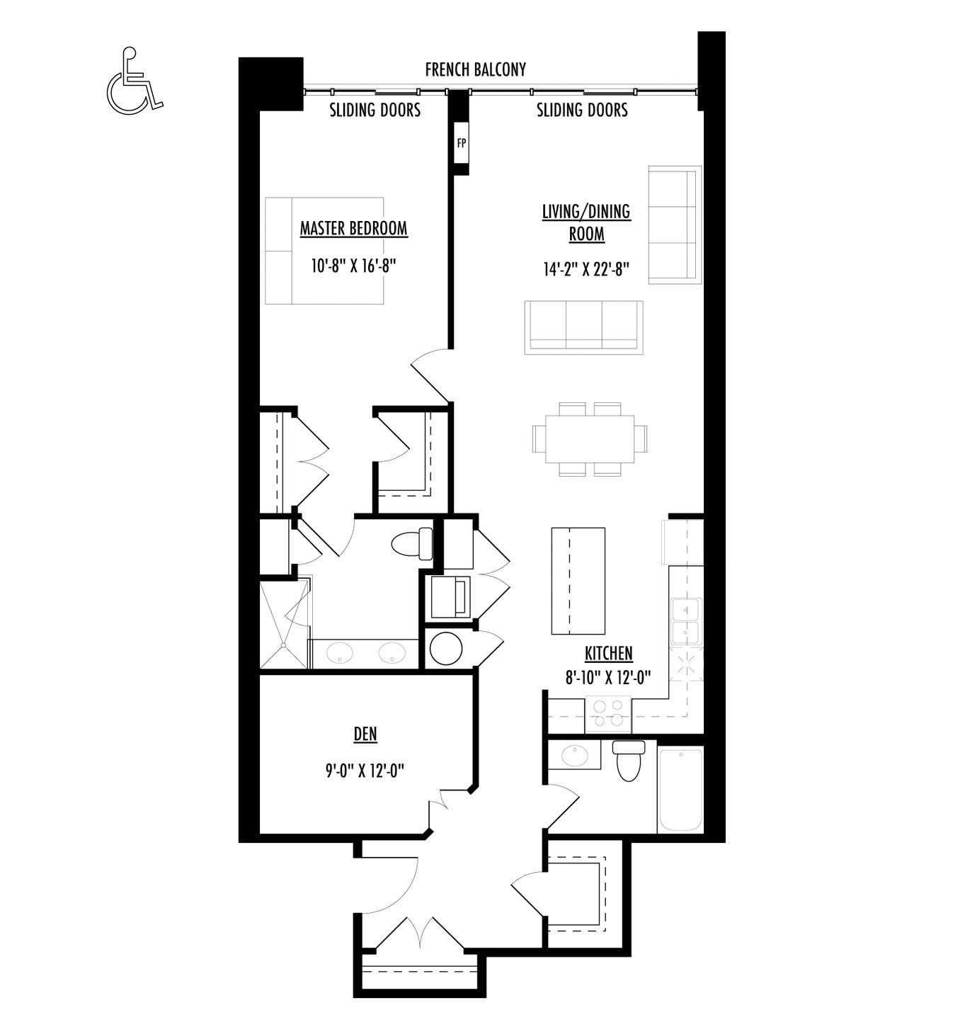 • Spacious 1 bedroom suite with den and open-concept layout.