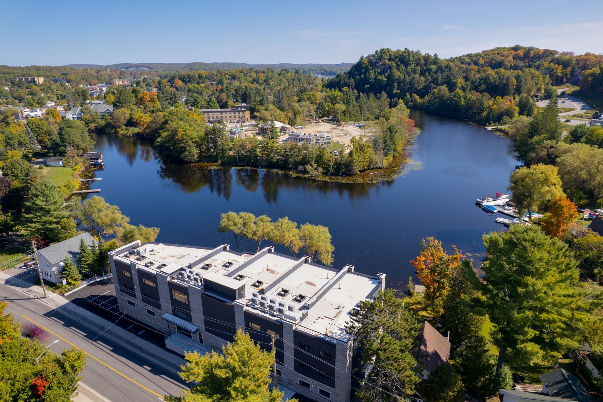 Welcome to muskoka riverbend condominiums at 32 brunel road in huntsville. This beautifully appointed 1-bedroom plus den suite offers a top floor view with an exceptional blend of comfort, style, and waterfront tranquility in an exclusive boutique building of just 15 residences. Suite 302 features a spacious open-concept layout with a modern kitchen, generous living and dining areas, and a private balcony overlooking the muskoka river-perfect for relaxing or entertaining. The versatile den provides an ideal space for a home office or guest area. Enjoy upscale finishes throughout, including custom cabinetry, engineered wide plank hardwood flooring, large format tile in the bathroom, and premium plumbing fixtures. Located just a short walk to vibrant main street huntsville, you'll have convenient access to shops, dining, and everyday amenities while enjoying the serenity of riverside living. The unit includes one underground parking space and is available soon for a minimum one-year lease. Experience refined muskoka living in one of huntsville's most desirable condominium communities.