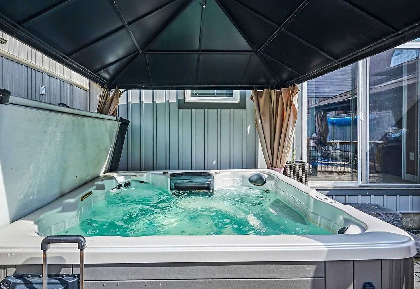 **open house sunday march 8th from 2-4pm** elegant & modern living in with inground heated pool & finished basement and across from a park! Completely finished from top to bottom, this stunning 4+1 bedroom home in the highly sought-after aspen springs neighbourhood offers the perfect blend of style, comfort, and functionality. Step inside to a beautifully designed open-concept layout featuring pot lights throughout (inside and out), rich vinyl flooring, granite countertops, wainscoting, a coffered ceiling, updated fixtures and hardware, and a cozy fireplace that anchors the main living space. The updated kitchen shines with stainless steel appliances and modern finishes - ideal for both everyday living and entertaining. Upstairs, unwind in the brand-new, fully renovated 4-piece ensuite complete with double sinks. The fully finished basement expands your living space with a spacious rec room, wet bar, private office, and additional bathroom - perfect for entertaining, working from home, or hosting guests. Step outside to your backyard oasis featuring an inground pool with waterfall, hot tub, and professional landscaping - designed for relaxation and summer enjoyment. Additional highlights include : primary ensuite reno 2024, pool pump 2022, pool filter 2023, & a double car garage with ev outlet, insulated doors with gas heat for year-round comfort. Ideally located close to highway 401, 407 and the future go train station, making commuting simple and convenient. Close to the south bowmanville rec centre & situated within an excellent school catchment including dr. Ross tilley public school, holy family catholic school, clarington central secondary school, and st. Stephen catholic secondary school - an ideal setting for growing families. This home truly checks every box.