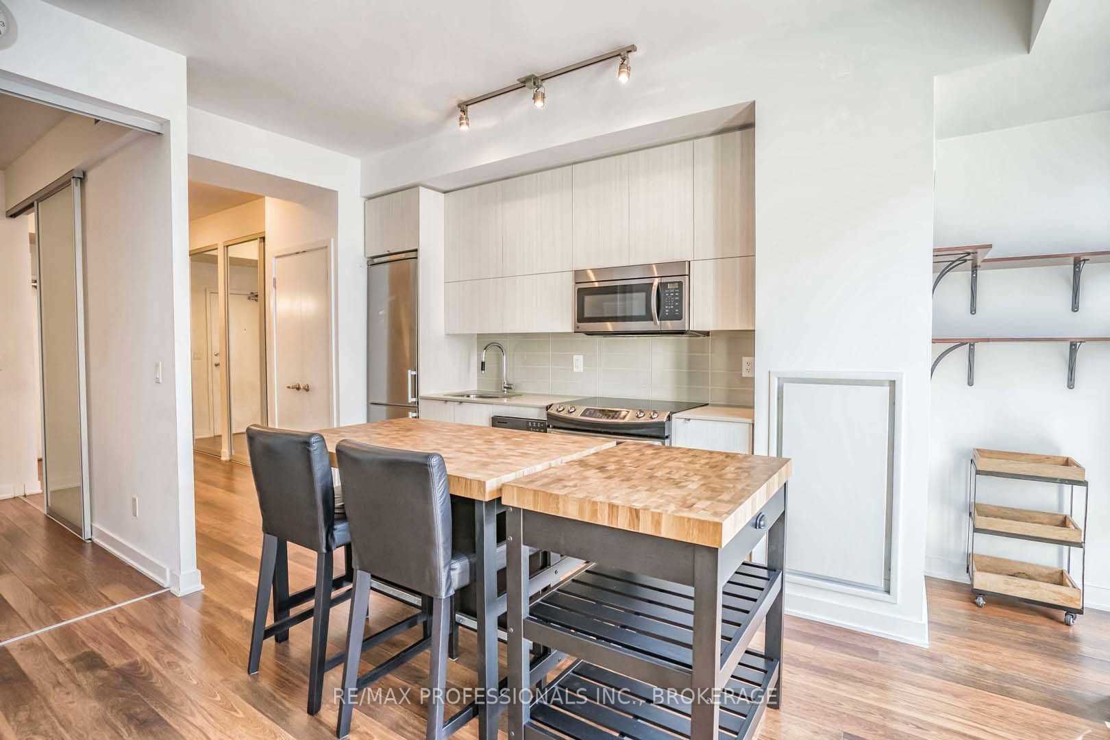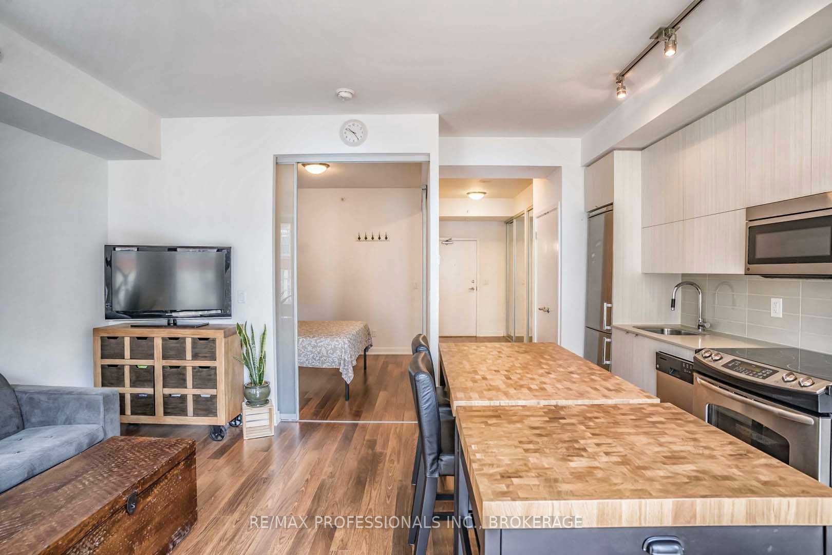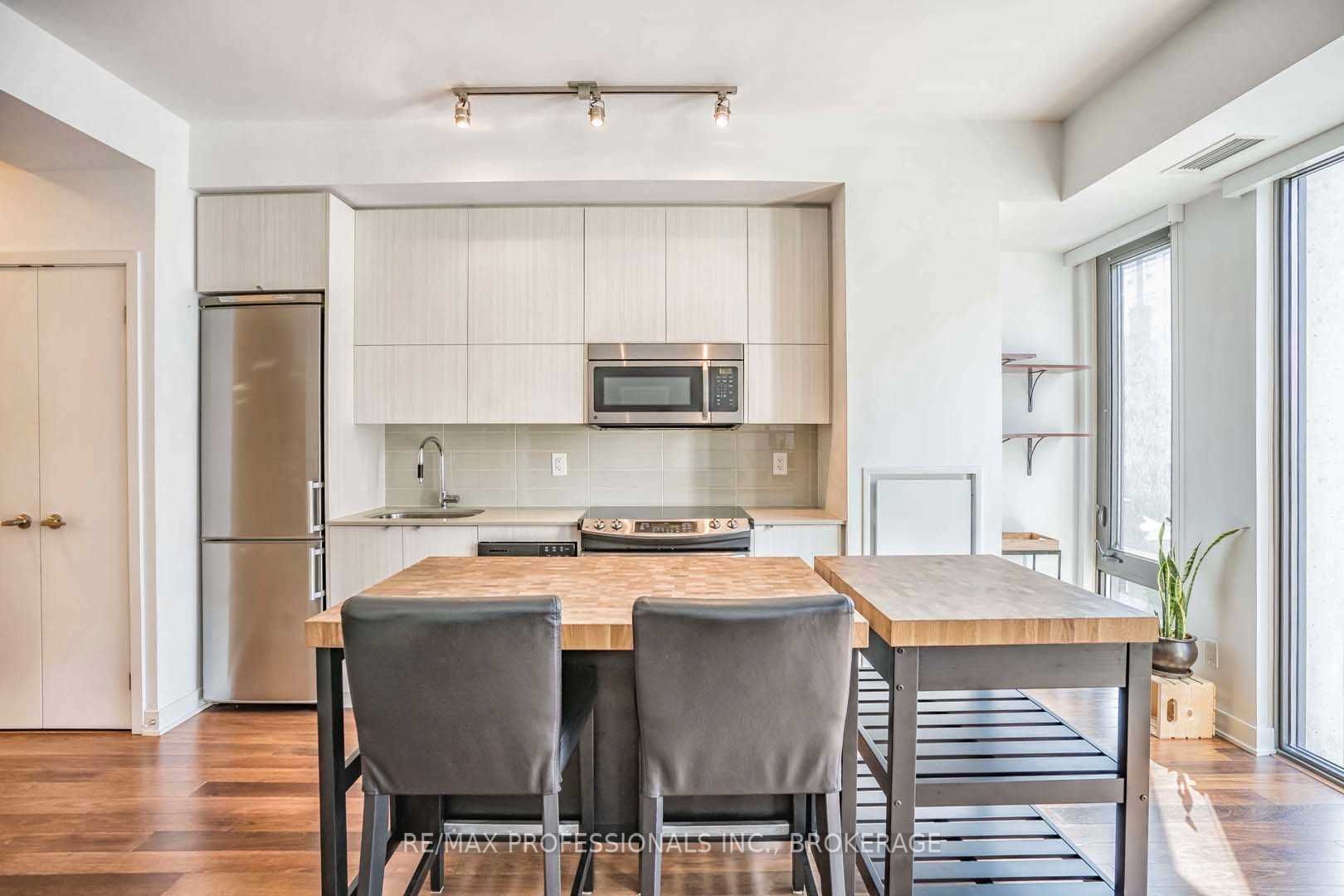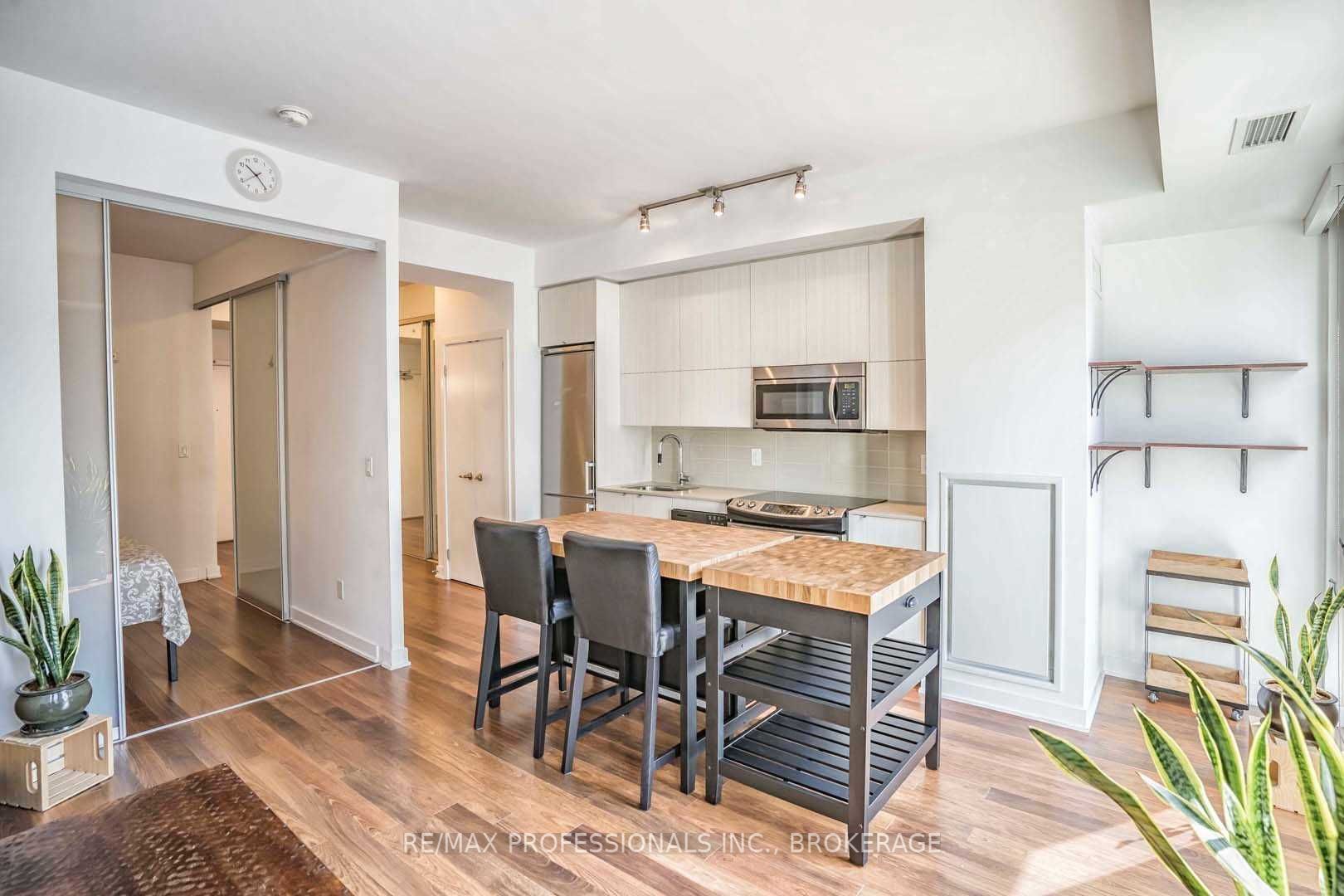Welcome to thirty two camden lofts in the heart of toronto's fashion district, just steps to king st west, queen west, the entertainment district, and some of the city's best restaurants, cafés, shops, parks, and nightlife. Transit at your doorstep with multiple streetcar lines and easy access to the financial district. This bright south-facing 1 bedroom, 1 bathroom suite offers an efficient, functional layout designed to maximize every square foot. Featuring 9 ft ceilings, floor to ceiling windows, and a modern open concept design with excellent flow for both living and working from home. Spacious living area. Boutique, well-managed building known for its quiet atmosphere and upscale feel. Amenities include a gym, party / meeting room, outdoor terrace with bbq, and secure entry. Perfect for individuals seeking a stylish urban lifestyle in downtown toronto.