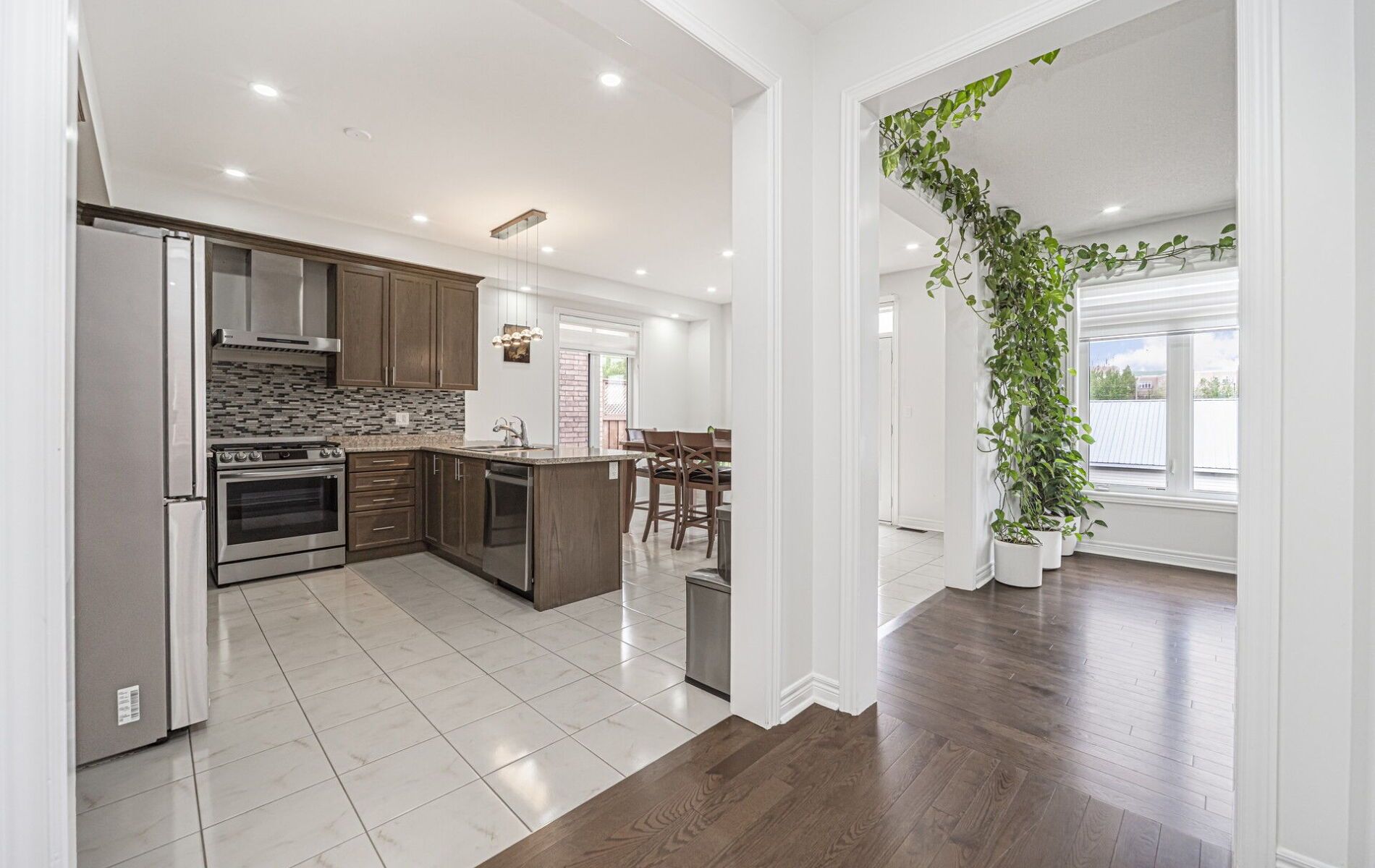 • Open-concept layout with a gourmet kitchen and high-end stainless steel appliances.