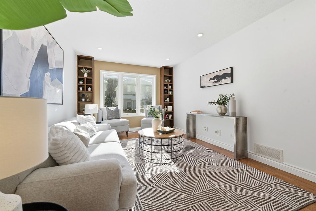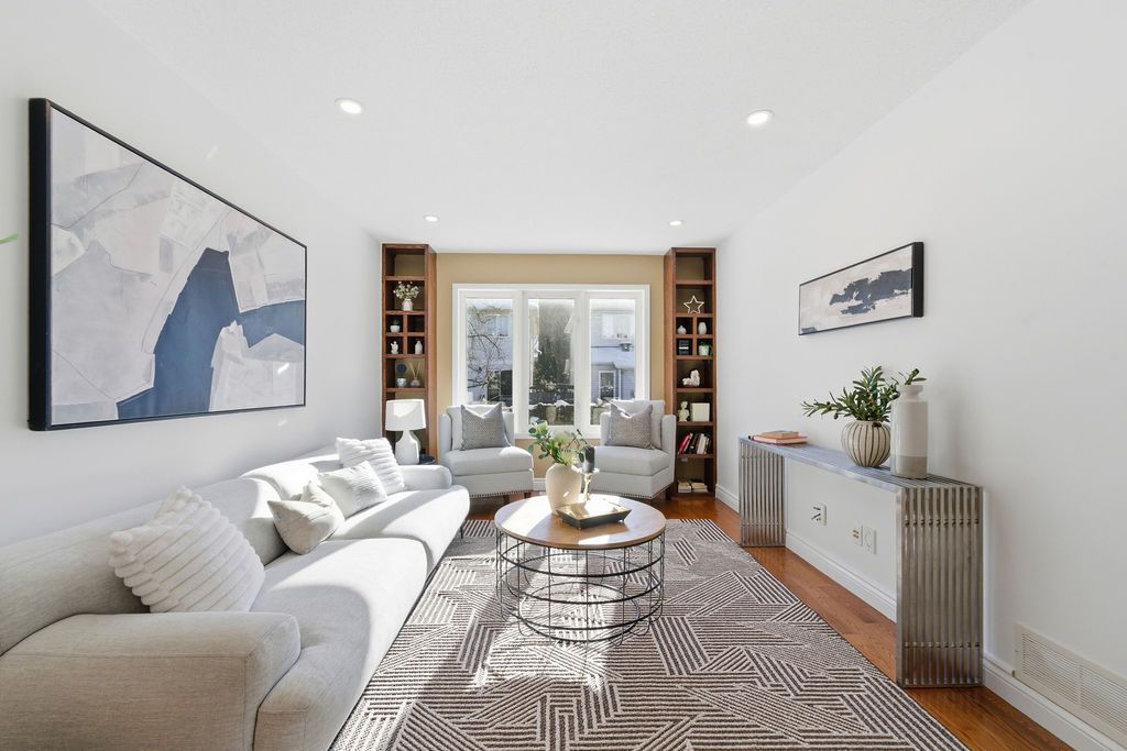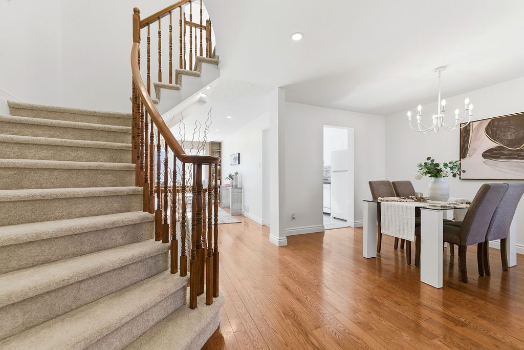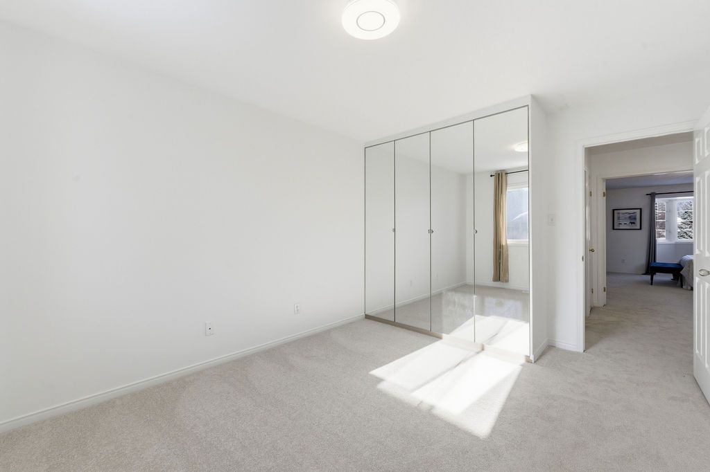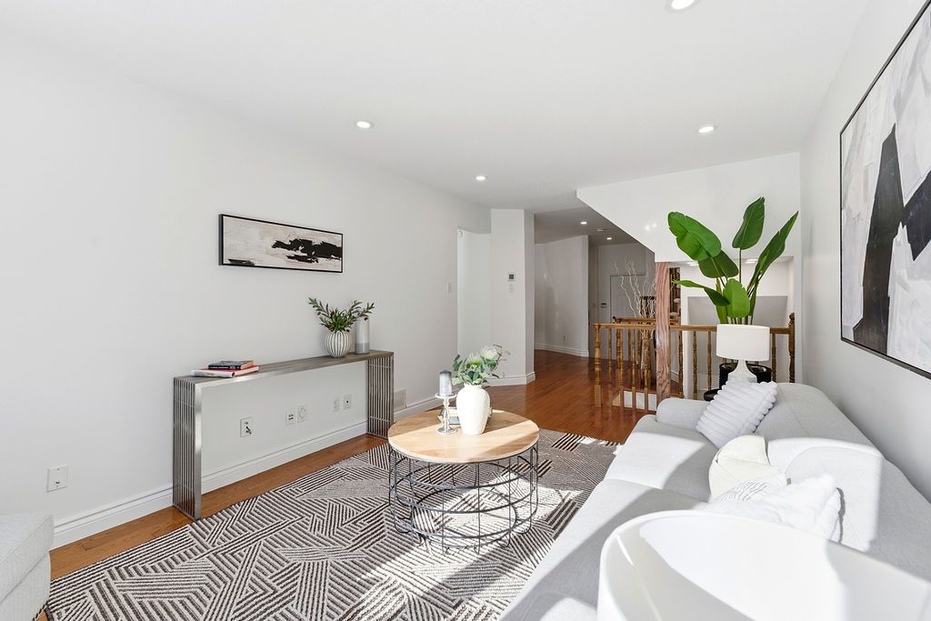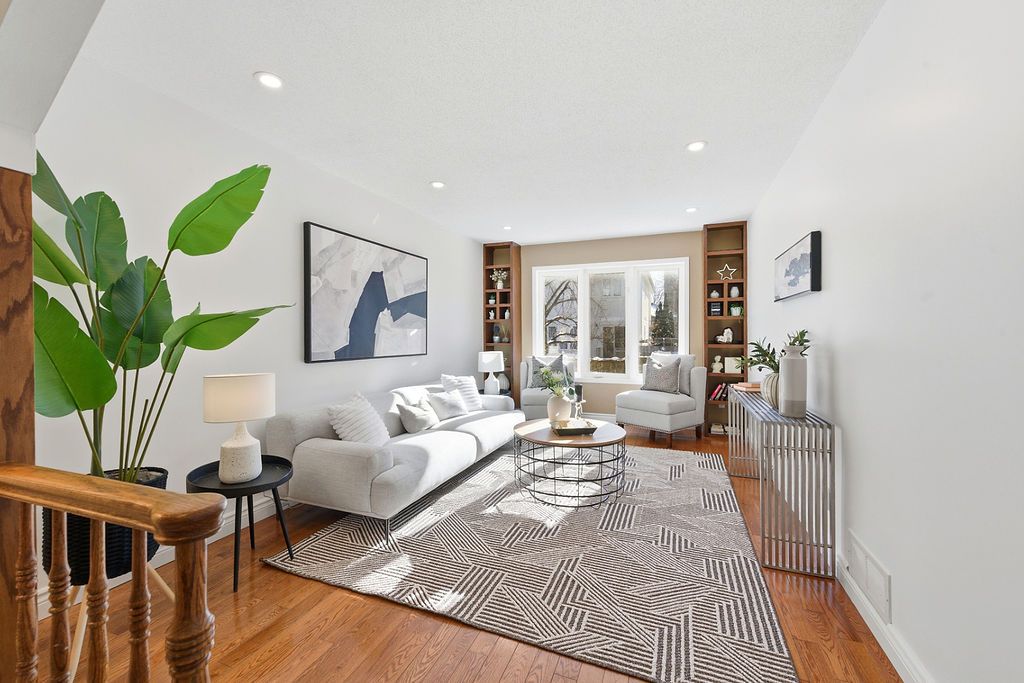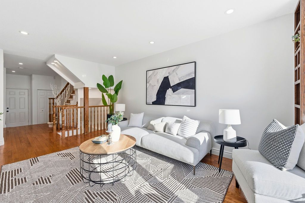 Experience detached-style living in the heart of coveted central park. This meticulously maintained 3 bedroom, 3 bathroom end-unit stands in a class of its own, boasting a rare independent double driveway and a premium lot backing onto single-family homes for ultimate privacy. The south-facing backyard ensures unparalleled natural light, creating a sun-drenched interior across all levels. This home offers a luxe, turnkey lifestyle with a freshly painted designer palette throughout, gleaming hardwood floors on the main level, and brand-new plush carpeting on the upper and lower levels. An expansive living room, anchored by custom built-ins and elegant pot lighting, flows into a formal dining room with a striking new chandelier. The chef-inspired kitchen features timeless granite countertops and a bright breakfast area with serene garden views. Step into a private outdoor sanctuary, the deep, professionally landscaped lot is a tapestry of vibrant perennial gardens, featuring an oversized deck and stone patio perfect for sophisticated alfresco entertaining. The second floor serves as a serene retreat, highlighted by a grand primary suite with elegant bay windows and a spa-inspired ensuite featuring a brand-new vanity. The fully finished lower level offers exceptional versatility as an executive home office, curated play space, or guest suite. Situated in a top-tier school catchment, this residence perfectly balances urban convenience with residential serenity. Just minutes from downtown and steps from ncc bike paths, premium shopping, and transit. A move-in-ready masterpiece for the discerning buyer.