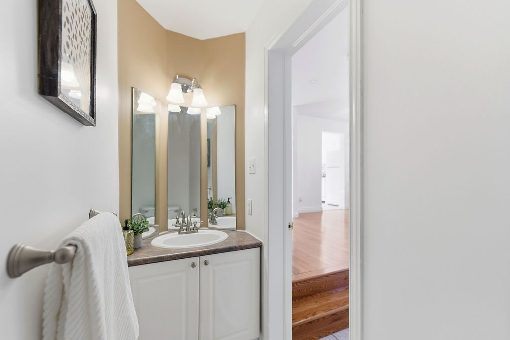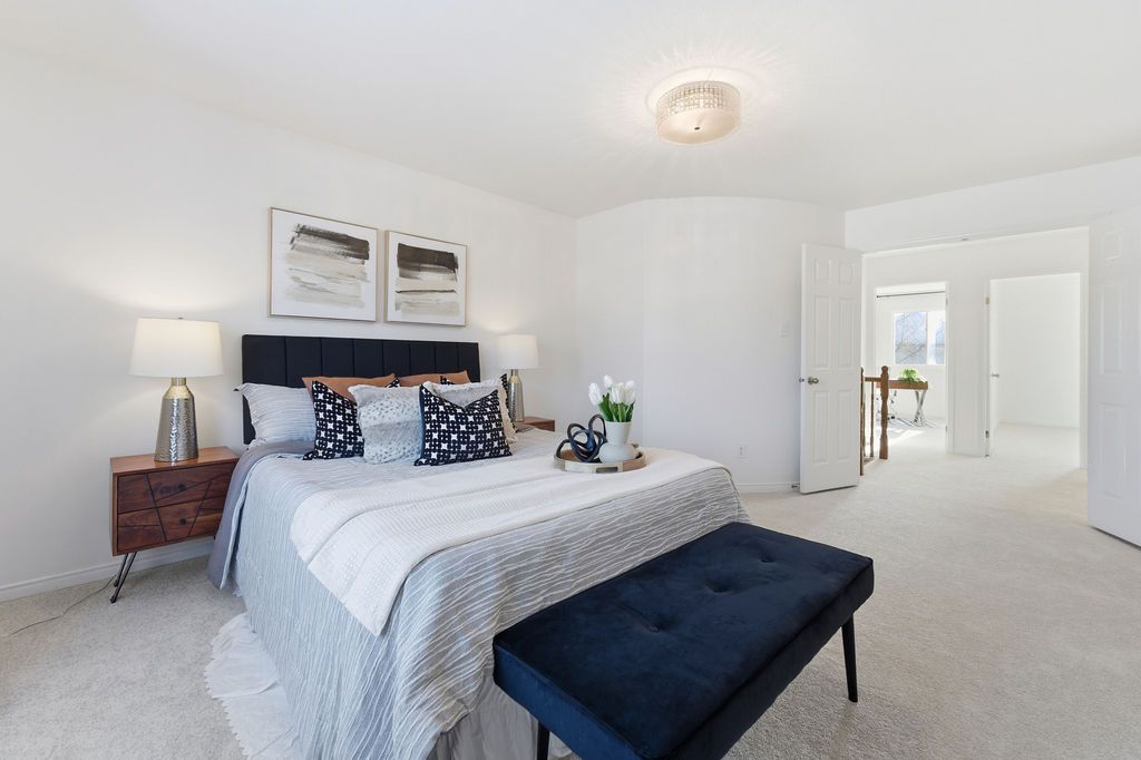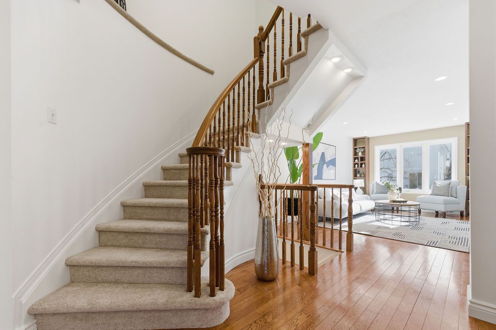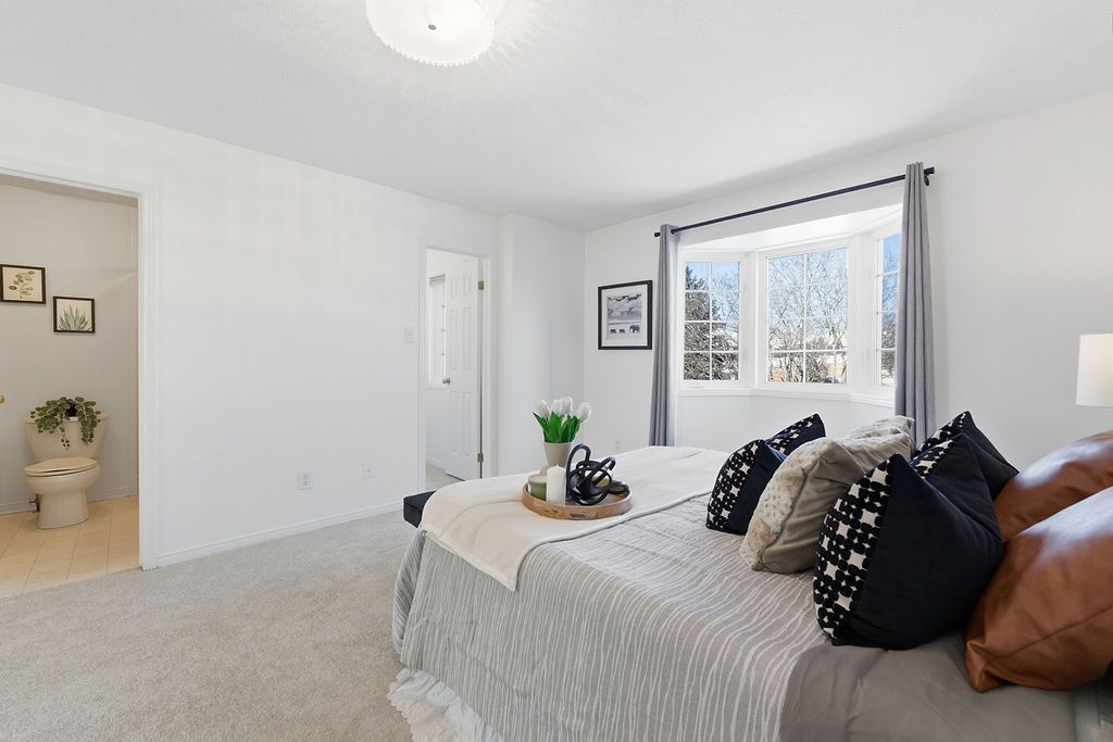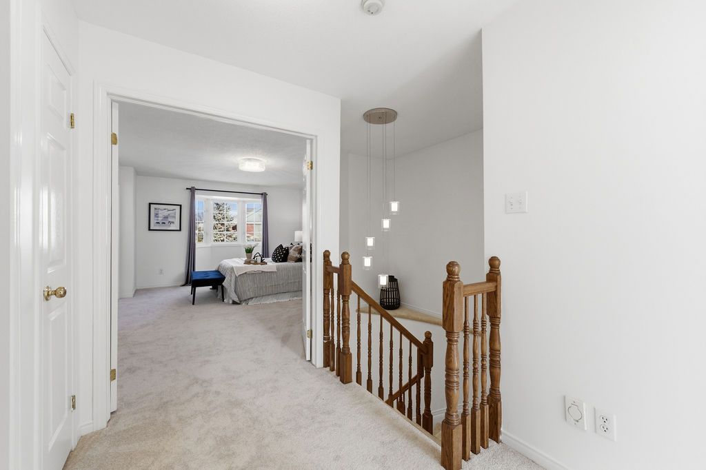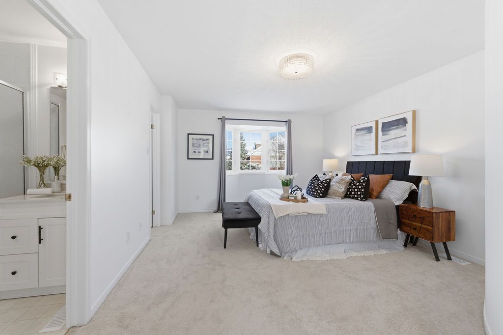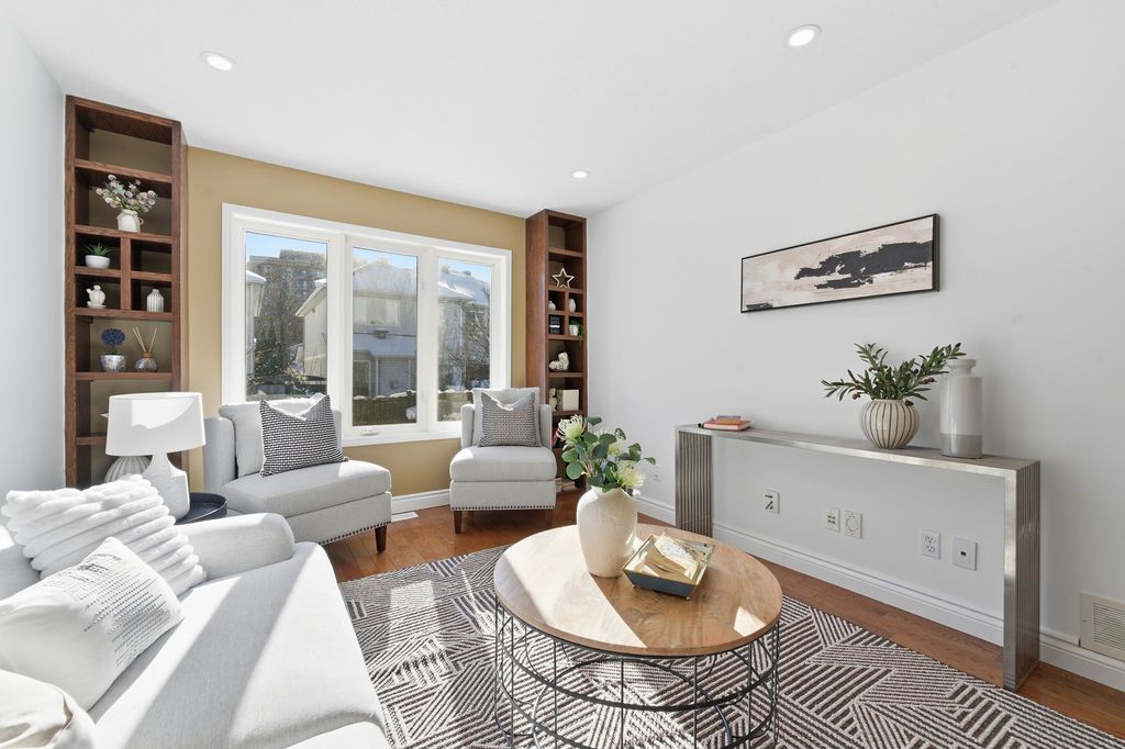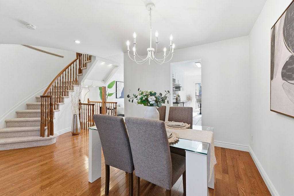 Experience detached-style living in the heart of coveted central park. This meticulously maintained 3 bedroom, 3 bathroom end-unit stands in a class of its own, boasting a rare independent double driveway and a premium lot backing onto single-family homes for ultimate privacy. The south-facing backyard ensures unparalleled natural light, creating a sun-drenched interior across all levels. This home offers a luxe, turnkey lifestyle with a freshly painted designer palette throughout, gleaming hardwood floors on the main level, and brand-new plush carpeting on the upper and lower levels. An expansive living room, anchored by custom built-ins and elegant pot lighting, flows into a formal dining room with a striking new chandelier. The chef-inspired kitchen features timeless granite countertops and a bright breakfast area with serene garden views. Step into a private outdoor sanctuary, the deep, professionally landscaped lot is a tapestry of vibrant perennial gardens, featuring an oversized deck and stone patio perfect for sophisticated alfresco entertaining. The second floor serves as a serene retreat, highlighted by a grand primary suite with elegant bay windows and a spa-inspired ensuite featuring a brand-new vanity. The fully finished lower level offers exceptional versatility as an executive home office, curated play space, or guest suite. Situated in a top-tier school catchment, this residence perfectly balances urban convenience with residential serenity. Just minutes from downtown and steps from ncc bike paths, premium shopping, and transit. A move-in-ready masterpiece for the discerning buyer.