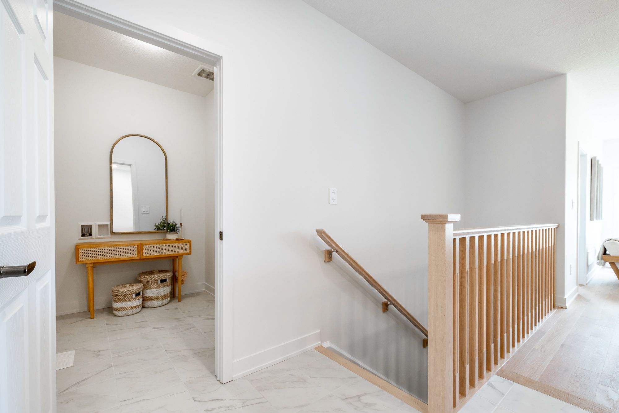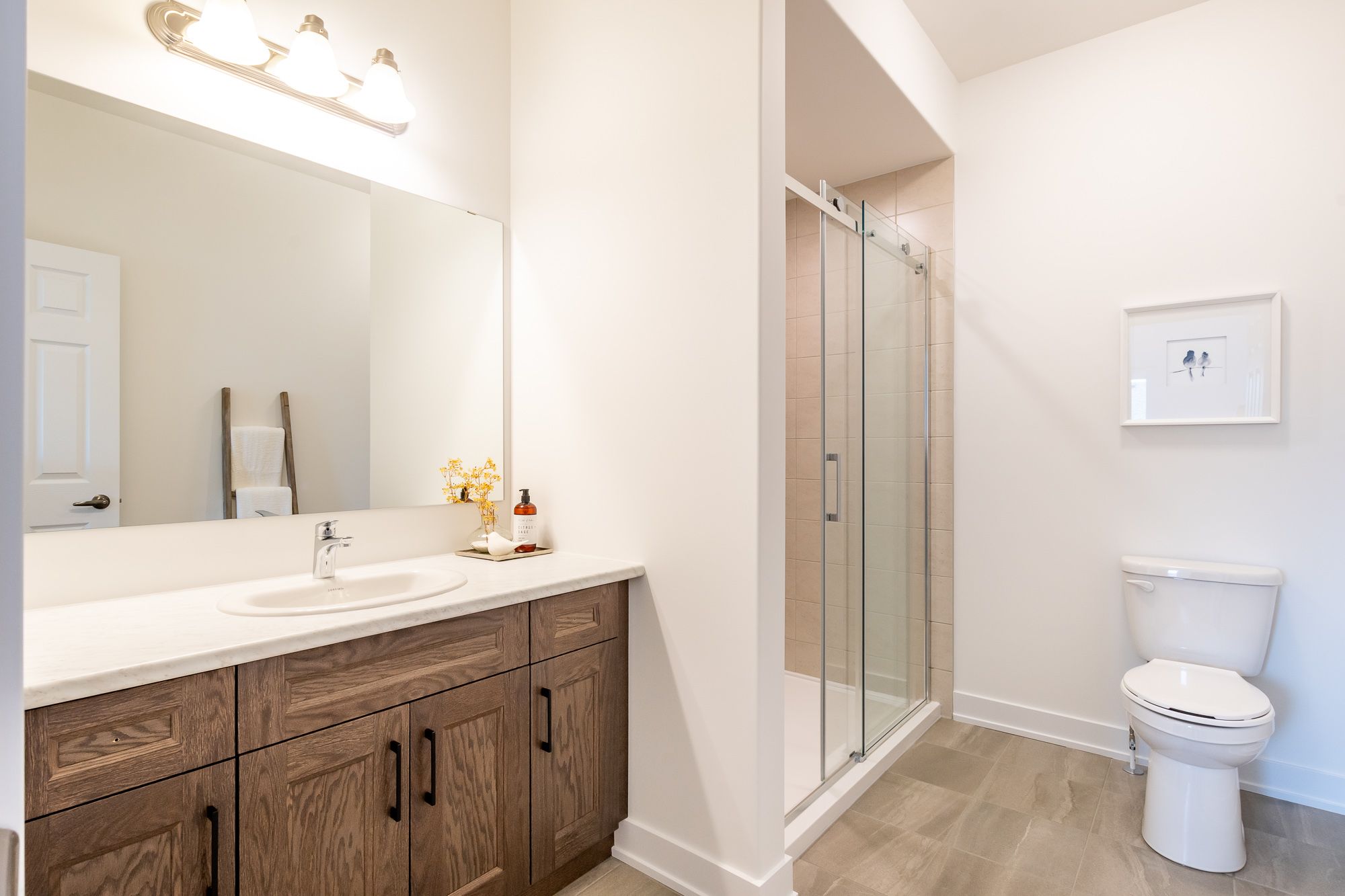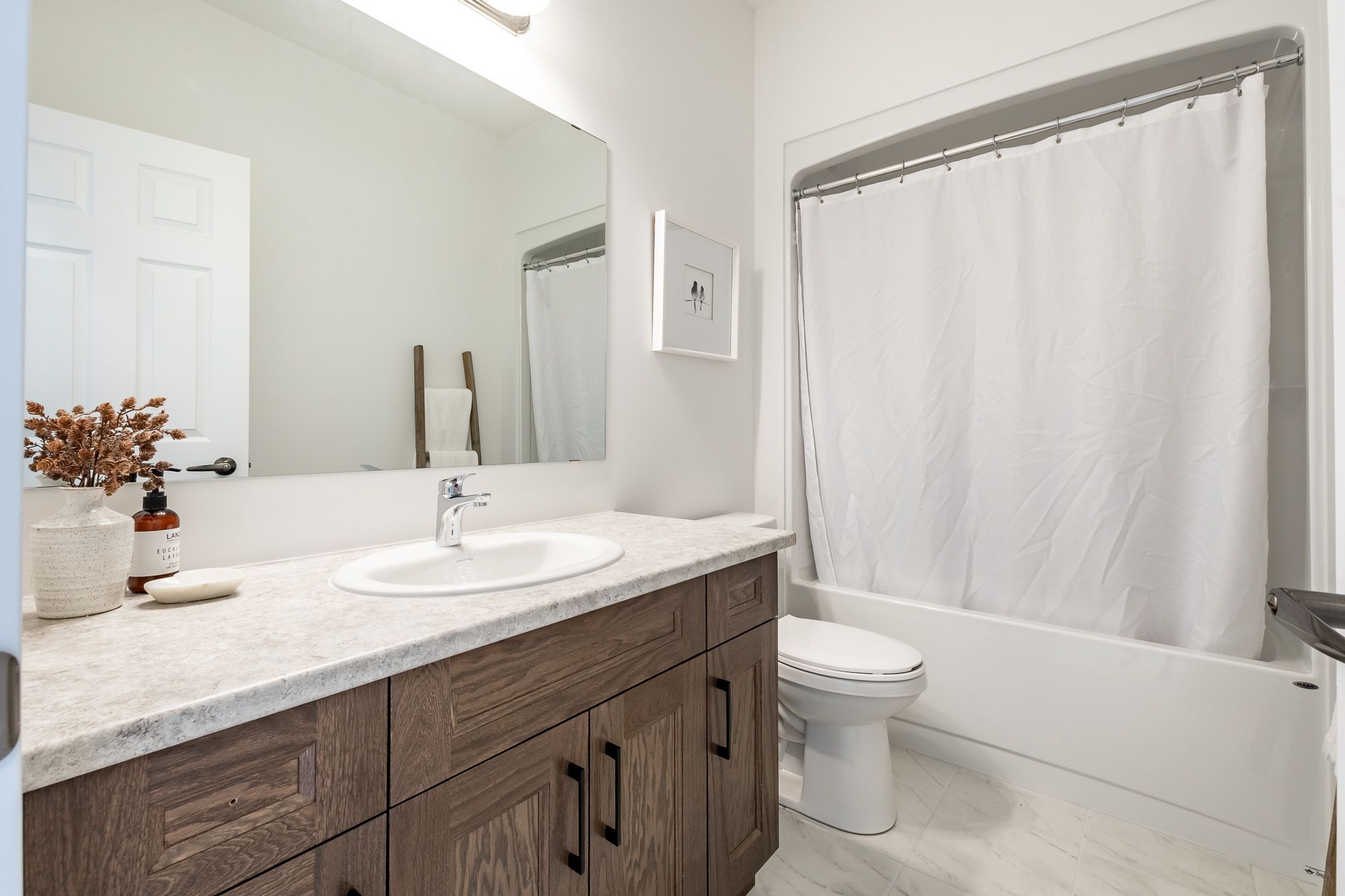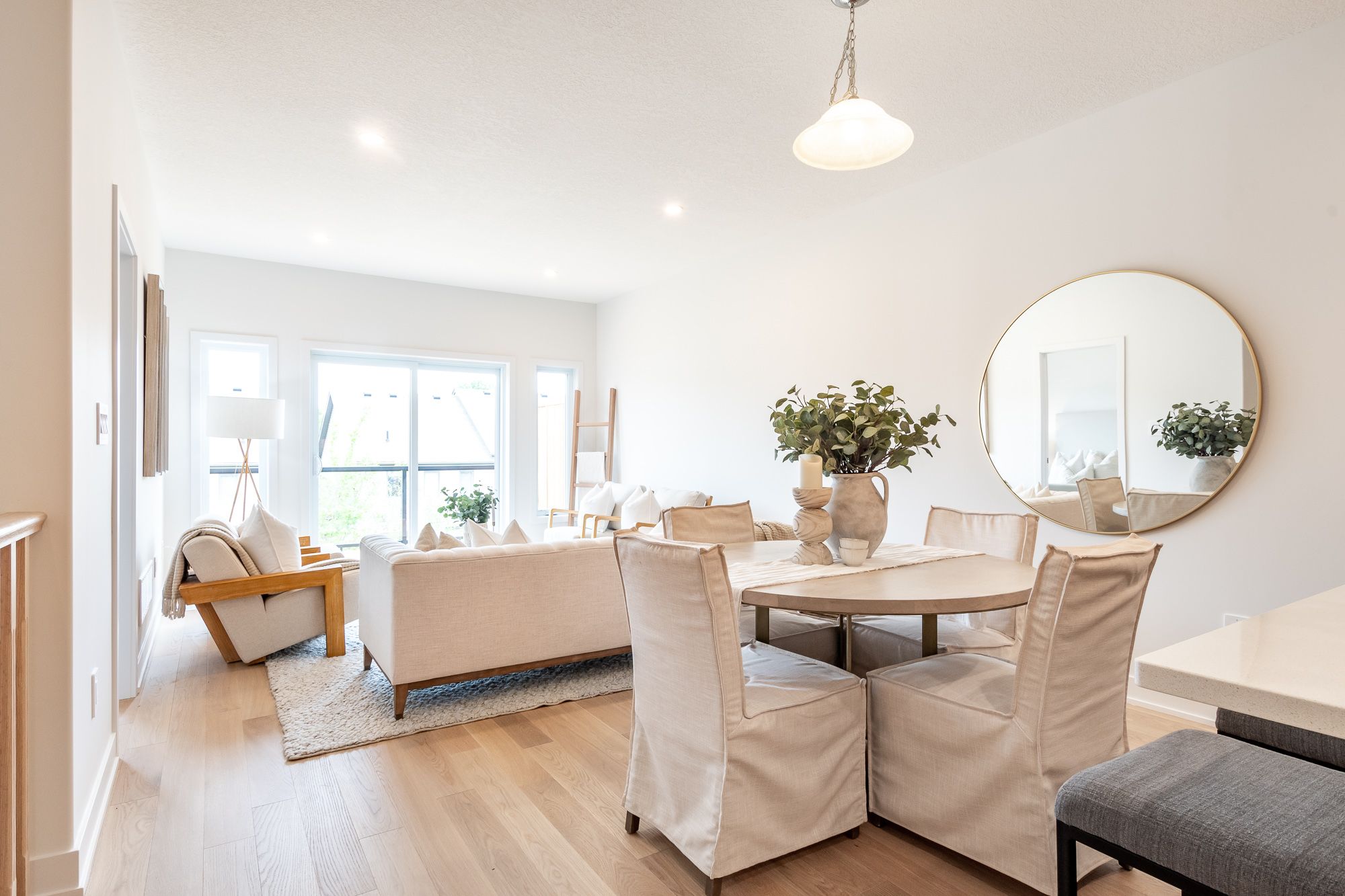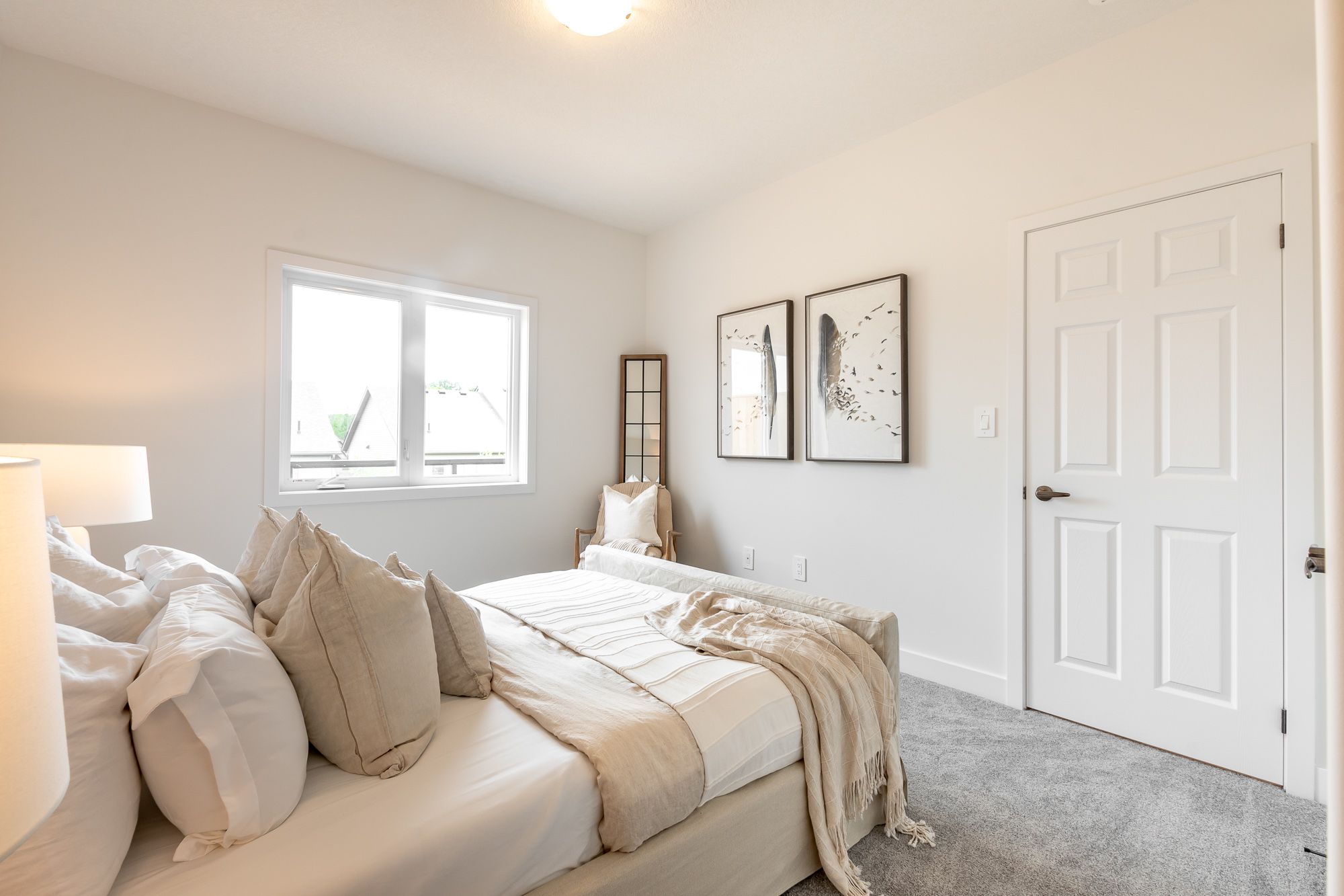 Welcome to the sought-after woodstream community, where devonleigh homes presents a new bungalow townhouse that perfectly blends comfort, style, and convenience, with no condo fees to worry about. Wrapped in a neutral exterior palette with a welcoming covered porch entry, this home offers immediate occupancy and a thoughtfully designed layout. Inside, the main floor opens to a bright and airy open-concept living, kitchen, and dining area, creating the perfect space for everyday living or entertaining. At the rear of the home, the primary suite provides a peaceful retreat with a 3-piece ensuite, while a second bedroom at the front of the home and a 4-piece guest bathroom accommodate family or visitors with ease. Enjoy the practicality of inside entry from the single car garage and a separate main-floor laundry room for added convenience. The living rooms sliding doors lead to a beautifully constructed deck with glass railings, ideal for relaxing or taking in the view. The lower level, with its unfinished walkout and 3-piece rough-in for a bathroom, offers endless possibilities for future living space. Thoughtfully upgraded throughout, this home includes builder-selected finishes such as a 60" ensuite shower with upgraded faucet system, stylish interior door hardware, flatstock trim, an enhanced kitchen layout with taller cabinetry, under-cabinet valence and lighting, elegant quartz countertops with tile backsplash, and upgraded cabinetry in both bathrooms. Hardwood flooring flows through the living and dining areas, complemented by upgraded railings and stain, and well-placed potlights for a polished, modern feel. With all these details already included in the price, this home offers a rare opportunity to move right in and enjoy a brand-new devonleigh build tailored for today's lifestyle.