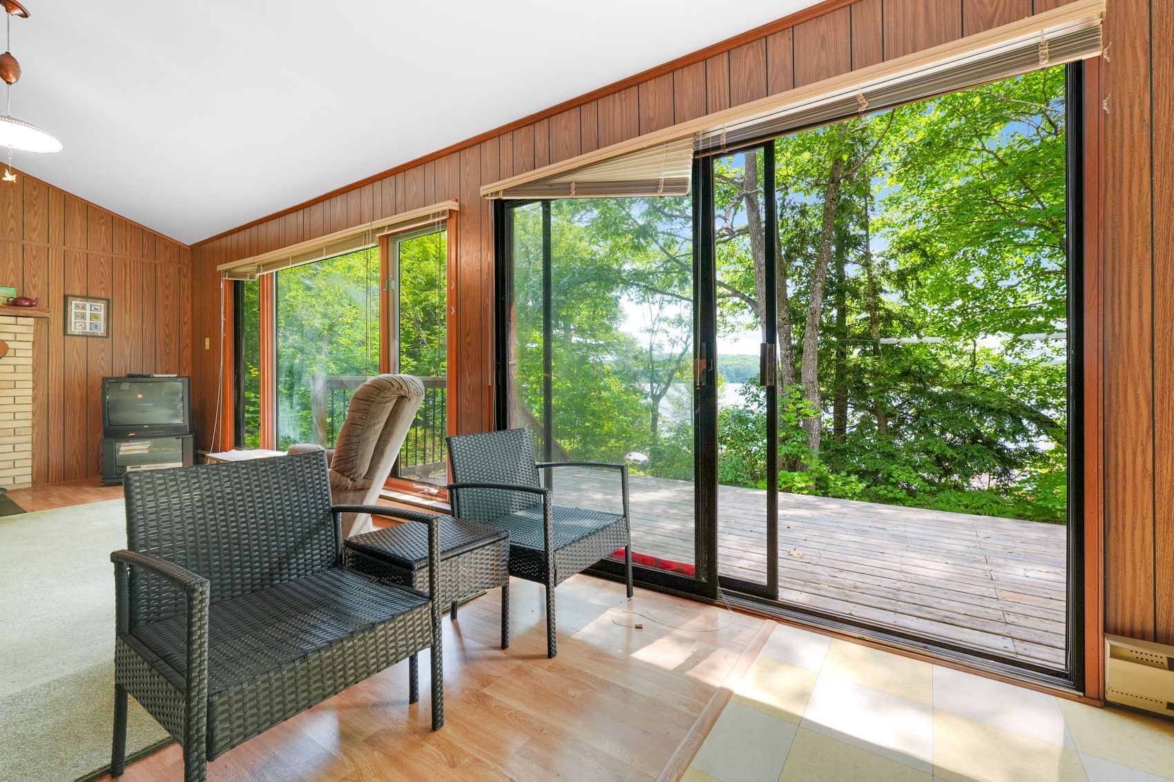 • Three-bedroom home on the quiet shores of Sugar Lake.