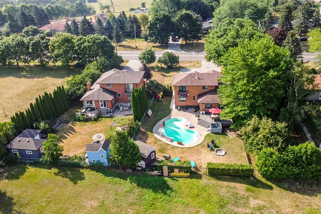 One of the most beautiful private backyard views. Walk out the back and in minutes explore a tree fort, library which is fantastic for families (splash pad, pickleball, hockey rink, exercise trails, dog walk, year round social events as well as the curling club. Outdoor living space allows for lazy pool days (heated inground), great bbqs on o/s deck-parties and sitting around the camp fire at night. Hot tub. Gas bbq hookup. This home is the ultimate entertainers house or for families needing 5-6 bedrooms. Close proximity to 400 makes commuting to the gta or cottage country super easy. Main floor living room, family room with wood burning fireplace & dining area. Office was built for stock trading, reinforced wall allows for easy installation of multiple monitors (counted as a 3rd- main floor bedroom). Bonus sun room makes an excellent buffet/bar station when entertaining. Chefs kitchen equipped with viking 6 burner gas range with commercial stainless hood, viking warming oven which makes entertaining a breeze (never serve luke warm food again), pot filler and lots of counter space, plus the view when washing dishes is fantastic. Master has luxurious top of line walk in shower with rain shower nozzle, 6 additional shower jets plus shower wand for the ultimate immersive experience, (2) large walk in closets, gas fireplace & balcony off bedroom is a great spot to enjoy the views while having your morning coffee. 2nd bdrm & 4pc on upper floor. Tons of storage, big deep closets, basement tool room can be easily converted to wine cellar, entire vault room for prized possessions, safe room?. 3 bdrms & 4pc in basement (newly finishing flooring & paint). Large coldroom. Lots of outlets everywhere (even in closets). Garage with high doors use as a shop or garage (gas heater) with tons of storage and work space. Big long driveway makes parking campers, rv's and trailers a breeze. New front concrete walkway and to side yards. Quick closing available.