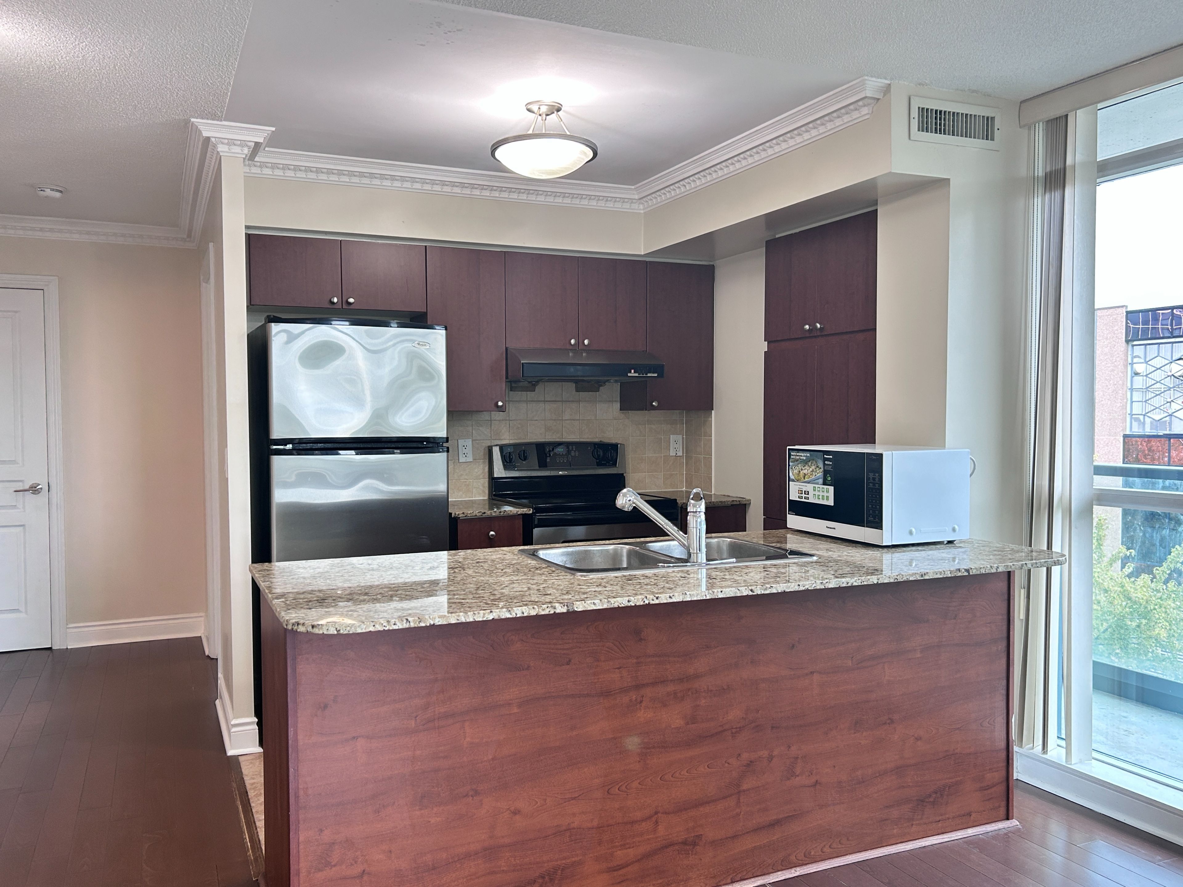 • Balcony and spacious layout offering 909 sq ft of living space.
