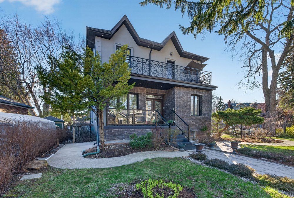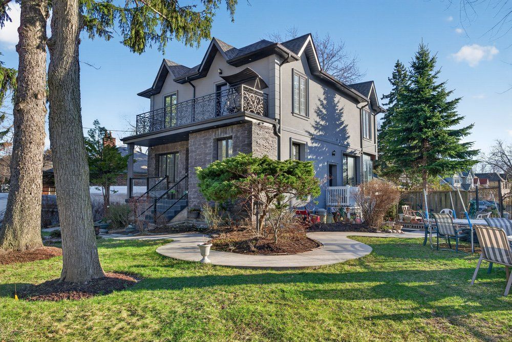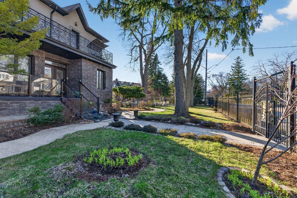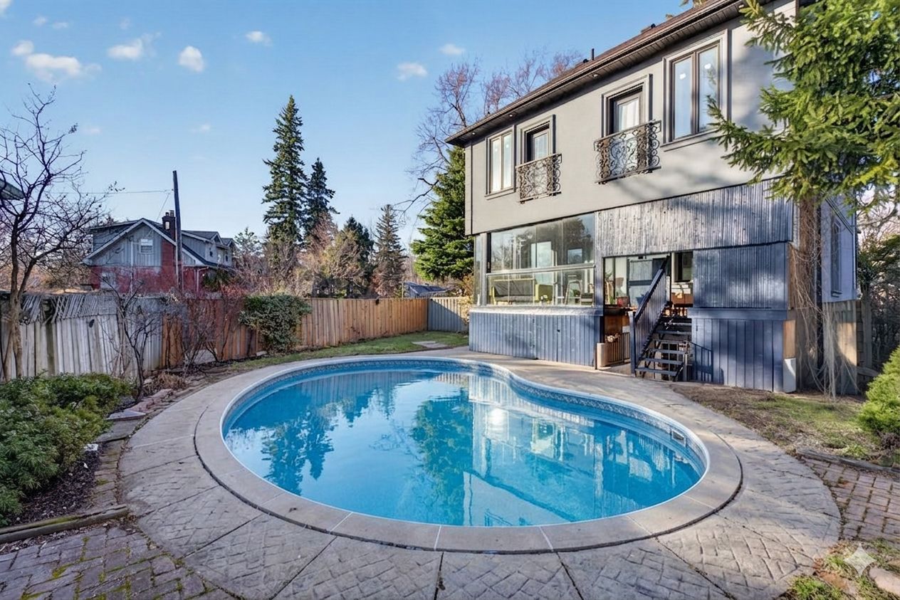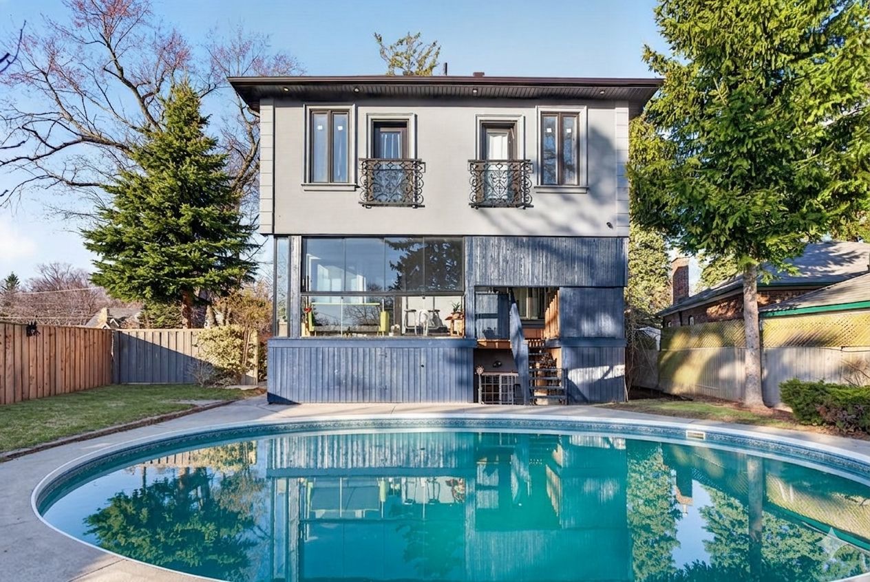 Wow on cliffcrest! Situated on a rare, massive corner lot, this custom-built estate masterfully blends architectural scale with chic, modern refinement. The meticulously landscaped grounds frame the property from every angle, offering a lush sanctuary for garden enthusiasts and an expansive outdoor arena designed for high-end entertaining. The main level unfolds with an airy, open-concept living and dining floor plan, anchored by rich hardwood floors and oversized windows that invite a steady flow of natural light. The glamourous chef's kitchen serves as a stylistic focal point, featuring granite countertops, a custom backsplash, and premium stainless steel appliances, including a wall oven and gas cooktop. Enveloped by floor-to-ceiling glass, the kitchen leads directly to a fully enclosed sunroom-a tranquil space for morning coffee. A dedicated main-floor office provides a sophisticated environment for professional pursuits. Ascend to the second floor, where soaring ceilings and a central skylight create an airy, voluminous atmosphere. The primary suite is a true retreat, offering a private balcony, a walk-in closet, and a 4-piece ensuite. Three additional well-appointed bedrooms feature generous windows and ample closet space, providing elevated comfort for the entire family. The versatile basement extends the living space significantly, featuring a secondary kitchen, a large recreation area, and two additional bedrooms-perfect for multi-generational living, guest accommodations or income potential outside, the fully fenced yard offers total privacy and a resort-style experience with an inground pool. Complete with a detached double garage and a private driveway, this property is a rare find that combines premium renovations and exceptional scale in a prime location.