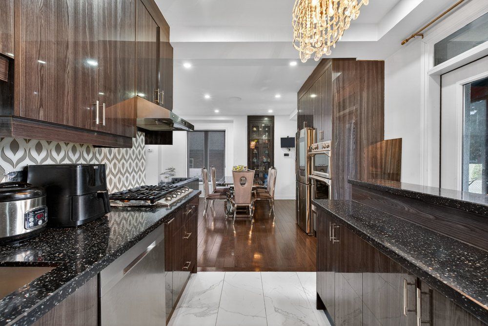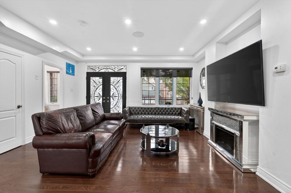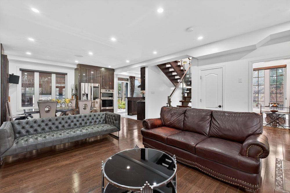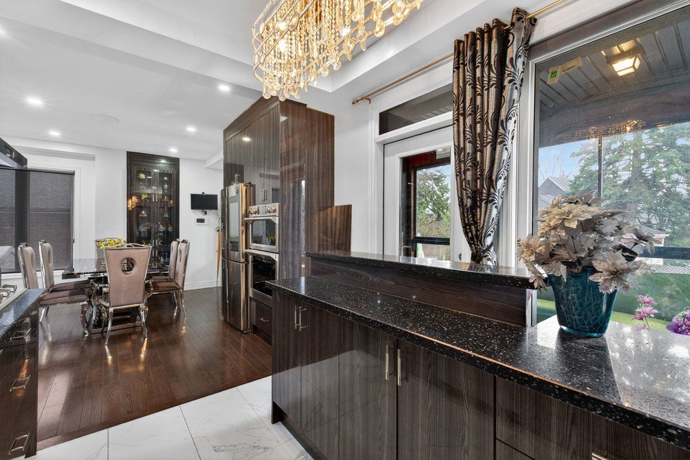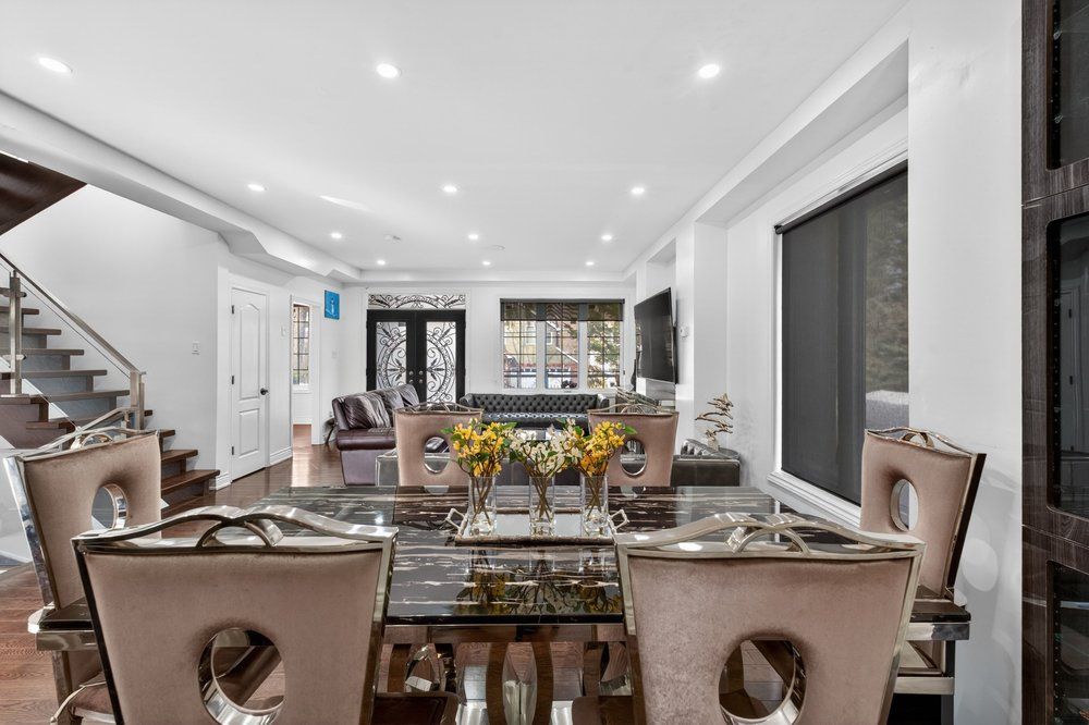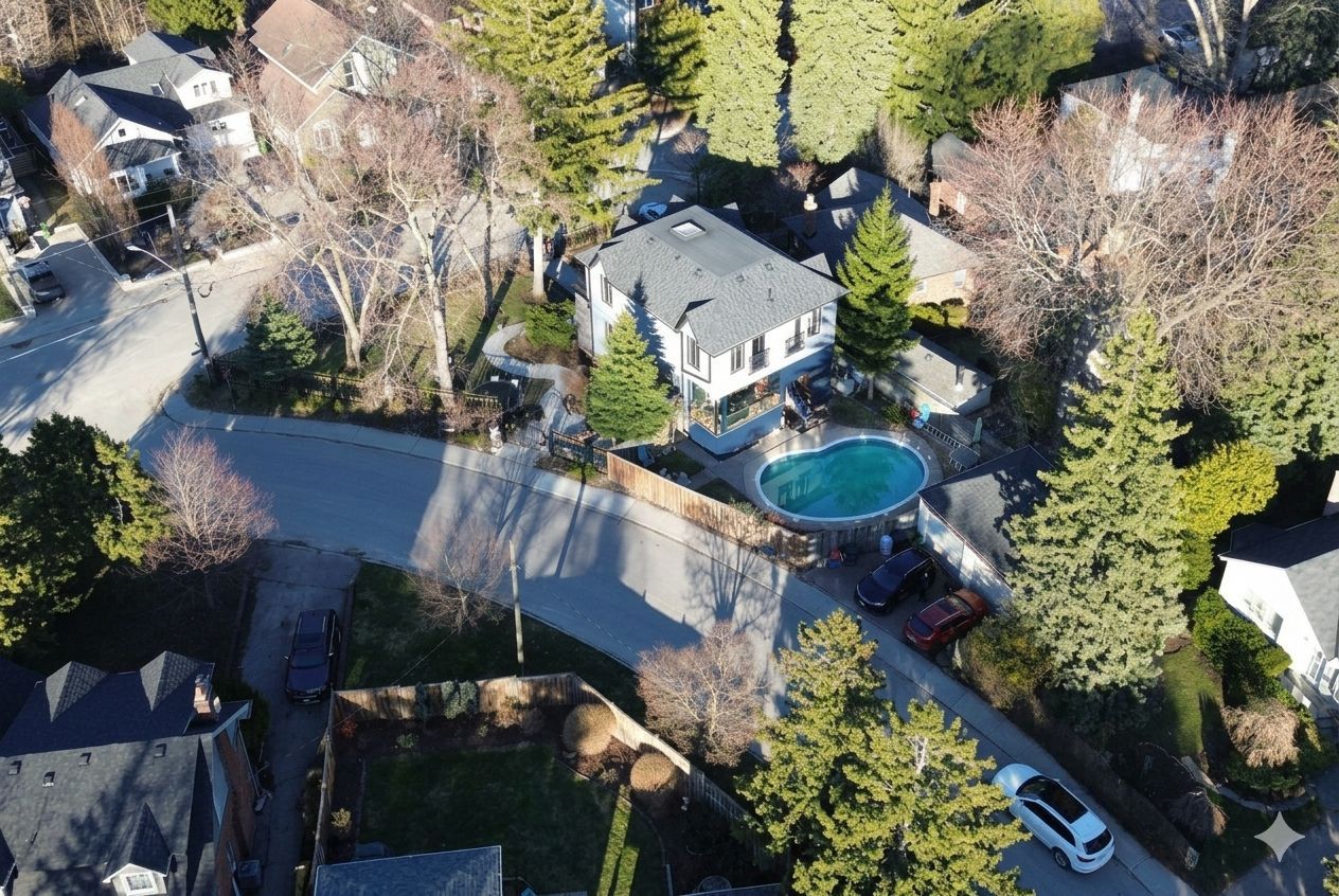 Wow on cliffcrest! Situated on a rare, massive corner lot, this custom-built estate masterfully blends architectural scale with chic, modern refinement. The meticulously landscaped grounds frame the property from every angle, offering a lush sanctuary for garden enthusiasts and an expansive outdoor arena designed for high-end entertaining. The main level unfolds with an airy, open-concept living and dining floor plan, anchored by rich hardwood floors and oversized windows that invite a steady flow of natural light. The glamourous chef's kitchen serves as a stylistic focal point, featuring granite countertops, a custom backsplash, and premium stainless steel appliances, including a wall oven and gas cooktop. Enveloped by floor-to-ceiling glass, the kitchen leads directly to a fully enclosed sunroom-a tranquil space for morning coffee. A dedicated main-floor office provides a sophisticated environment for professional pursuits. Ascend to the second floor, where soaring ceilings and a central skylight create an airy, voluminous atmosphere. The primary suite is a true retreat, offering a private balcony, a walk-in closet, and a 4-piece ensuite. Three additional well-appointed bedrooms feature generous windows and ample closet space, providing elevated comfort for the entire family. The versatile basement extends the living space significantly, featuring a secondary kitchen, a large recreation area, and two additional bedrooms-perfect for multi-generational living, guest accommodations or income potential outside, the fully fenced yard offers total privacy and a resort-style experience with an inground pool. Complete with a detached double garage and a private driveway, this property is a rare find that combines premium renovations and exceptional scale in a prime location.