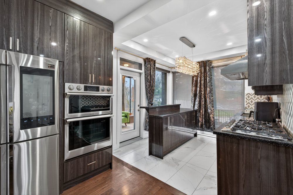 • Gourmet kitchen featuring granite countertops and premium stainless steel appliances.